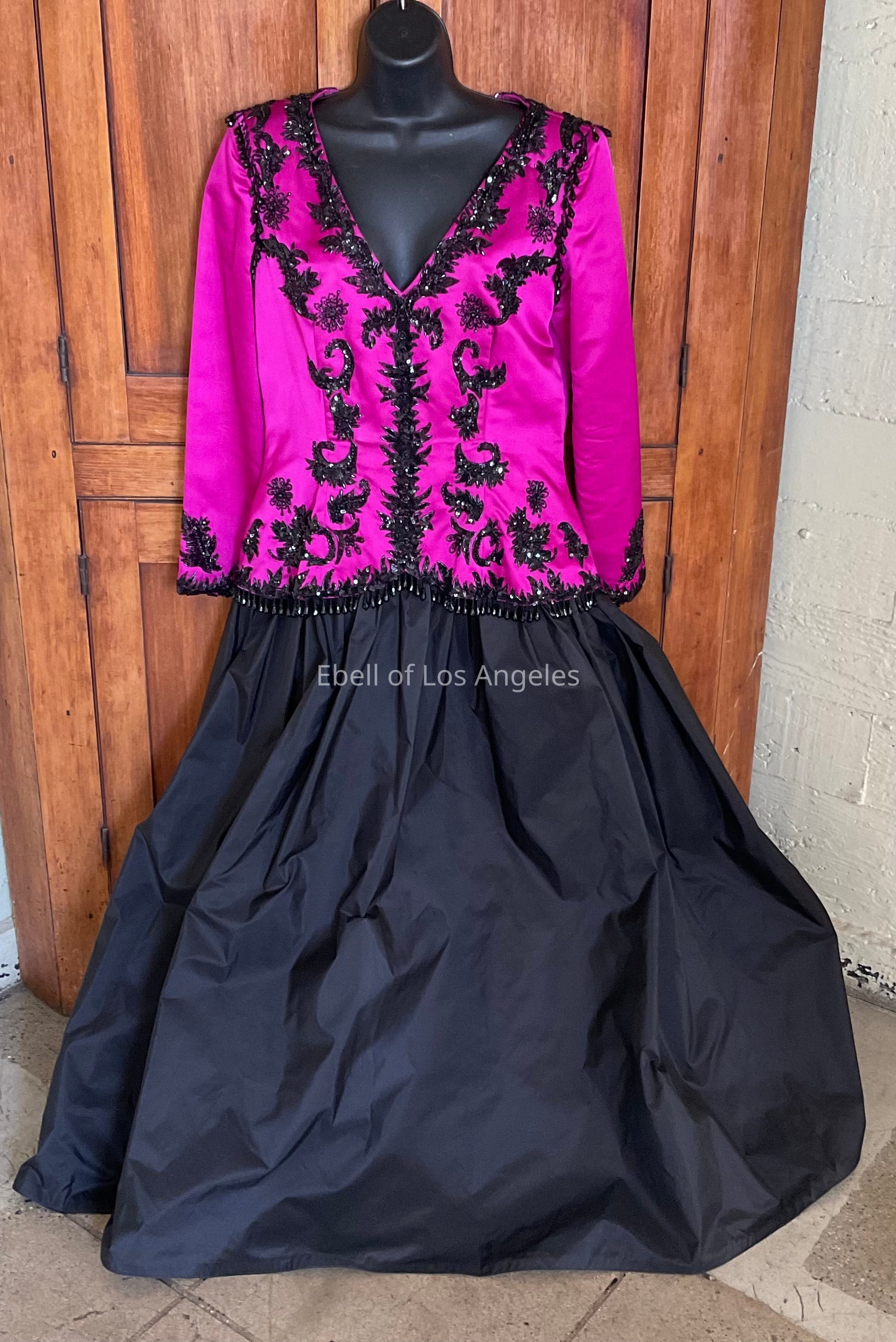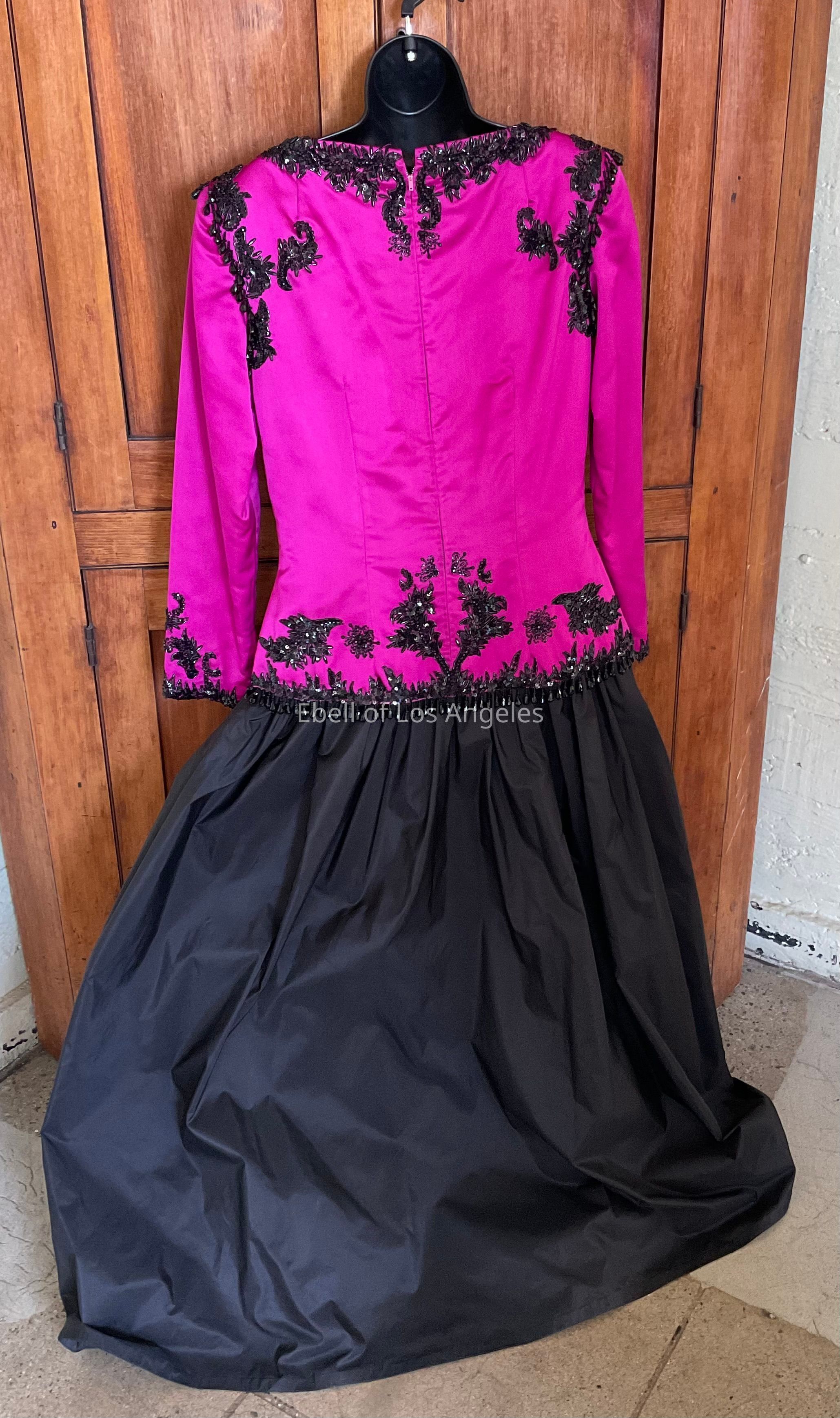 Taffeta ballgown with fuschia black beaded bodice and black full skirtCollection