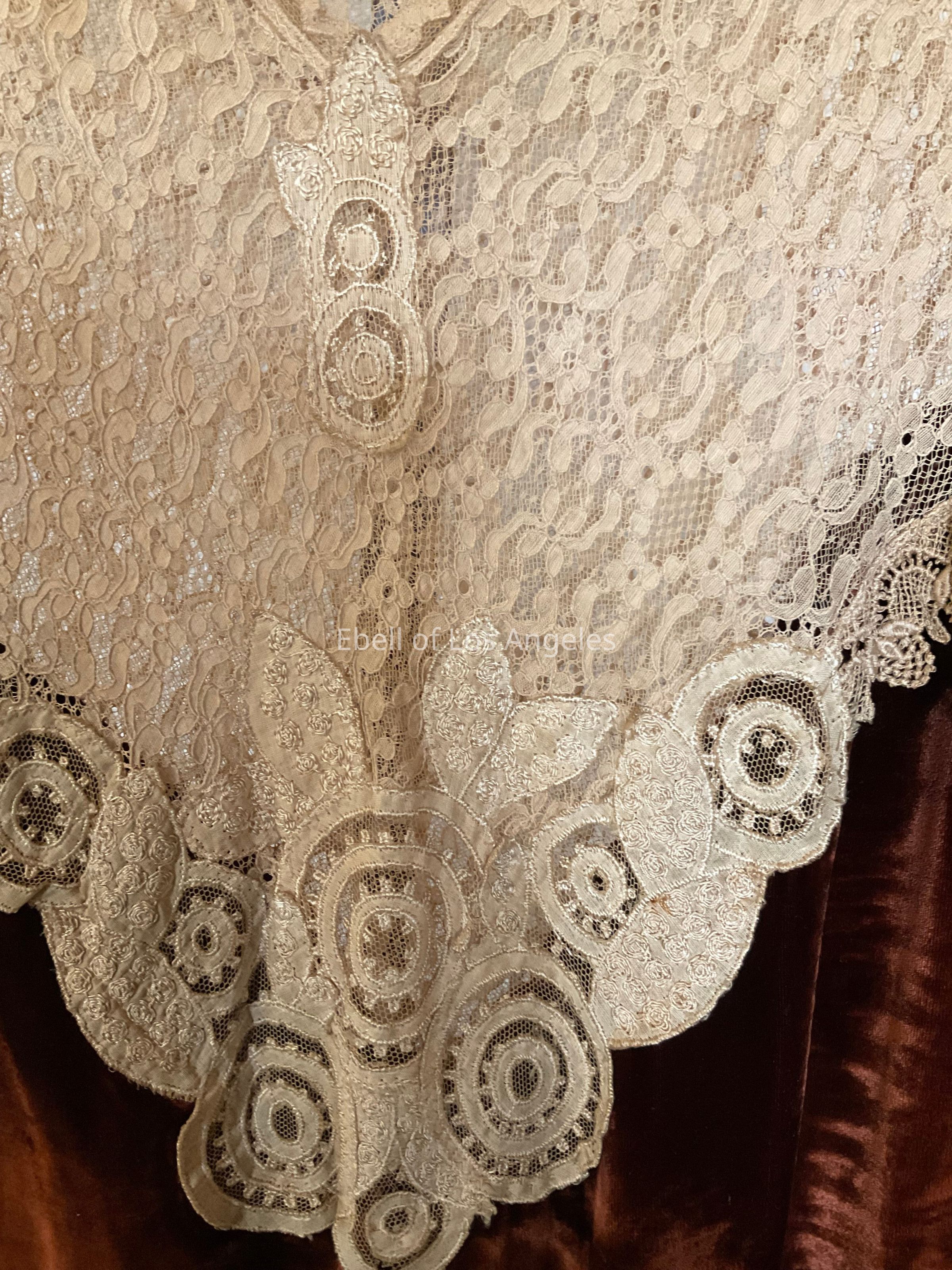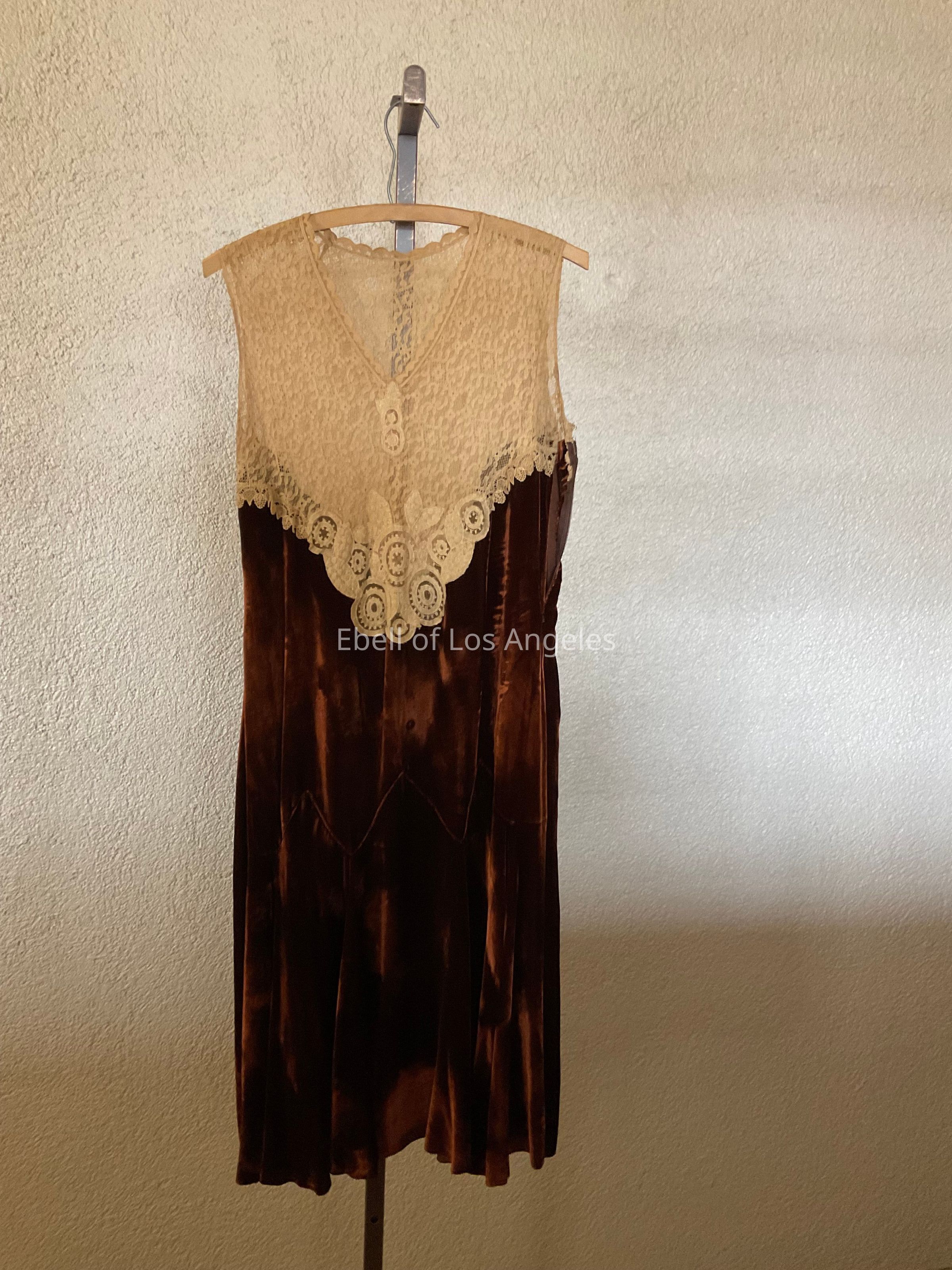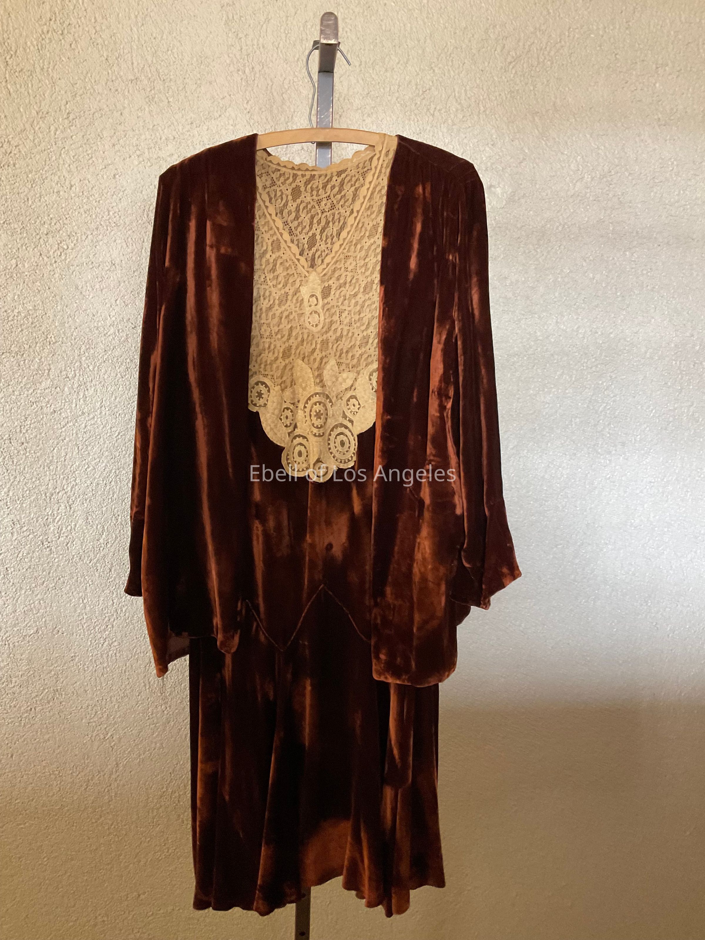 Silk velvet v-neck dress with lace bodice and matching velvet jacket