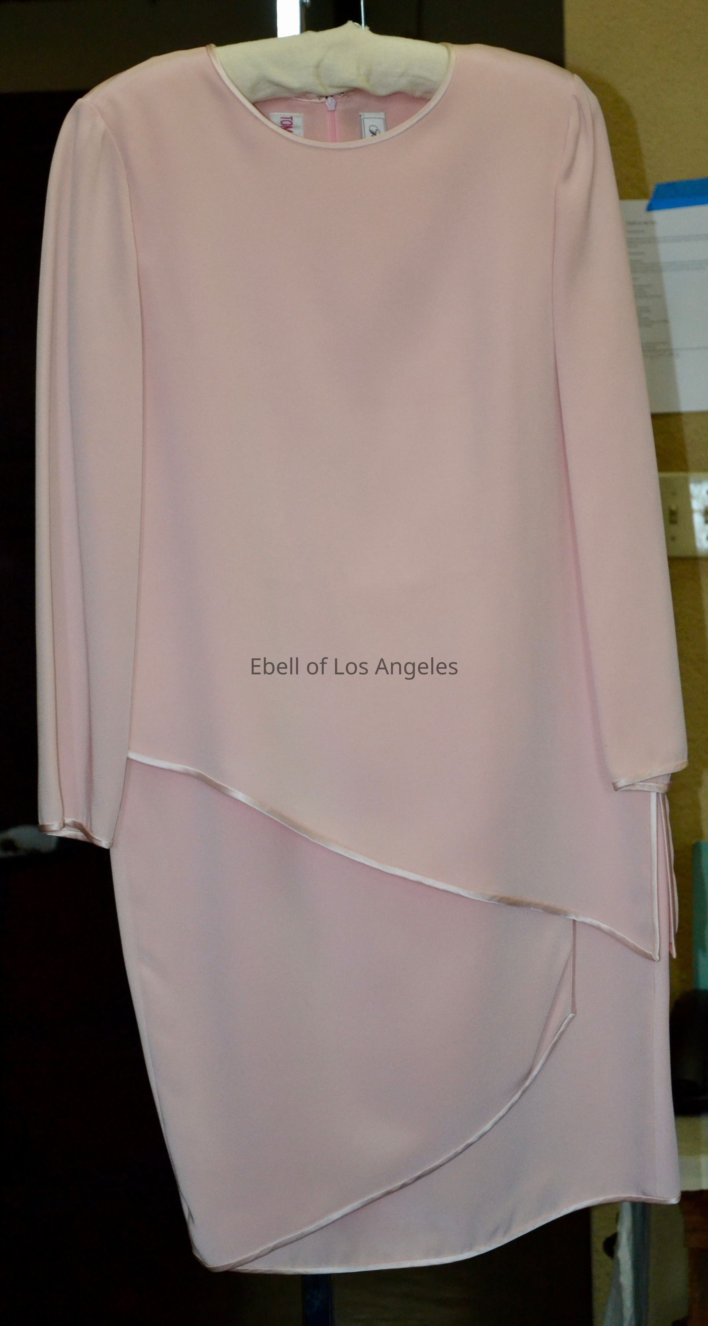 Tiered shift with satin trim and long sleeves