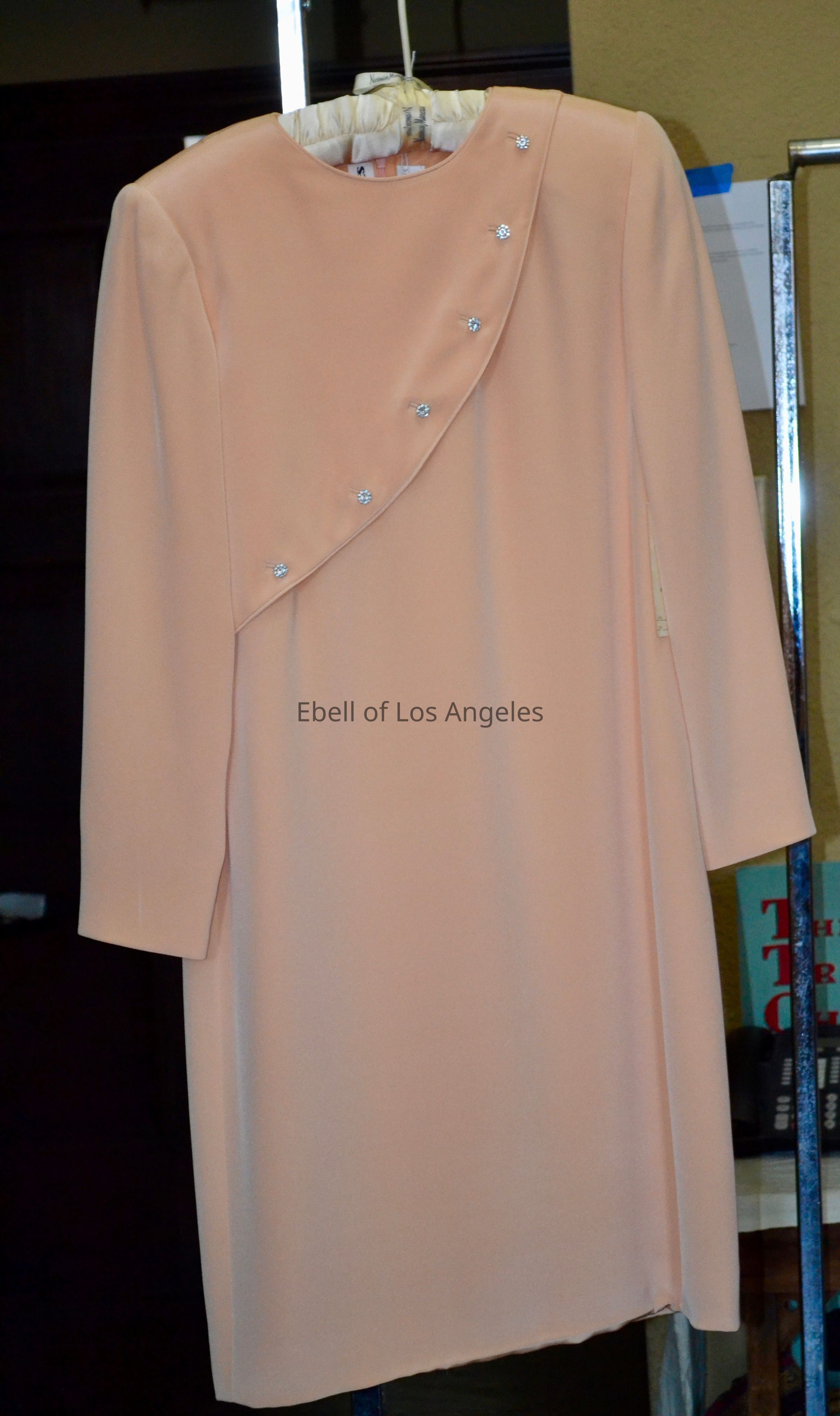 Shift with diagonal bodice panel with rhinestone buttons and long padded sleevesEntry/Object ID