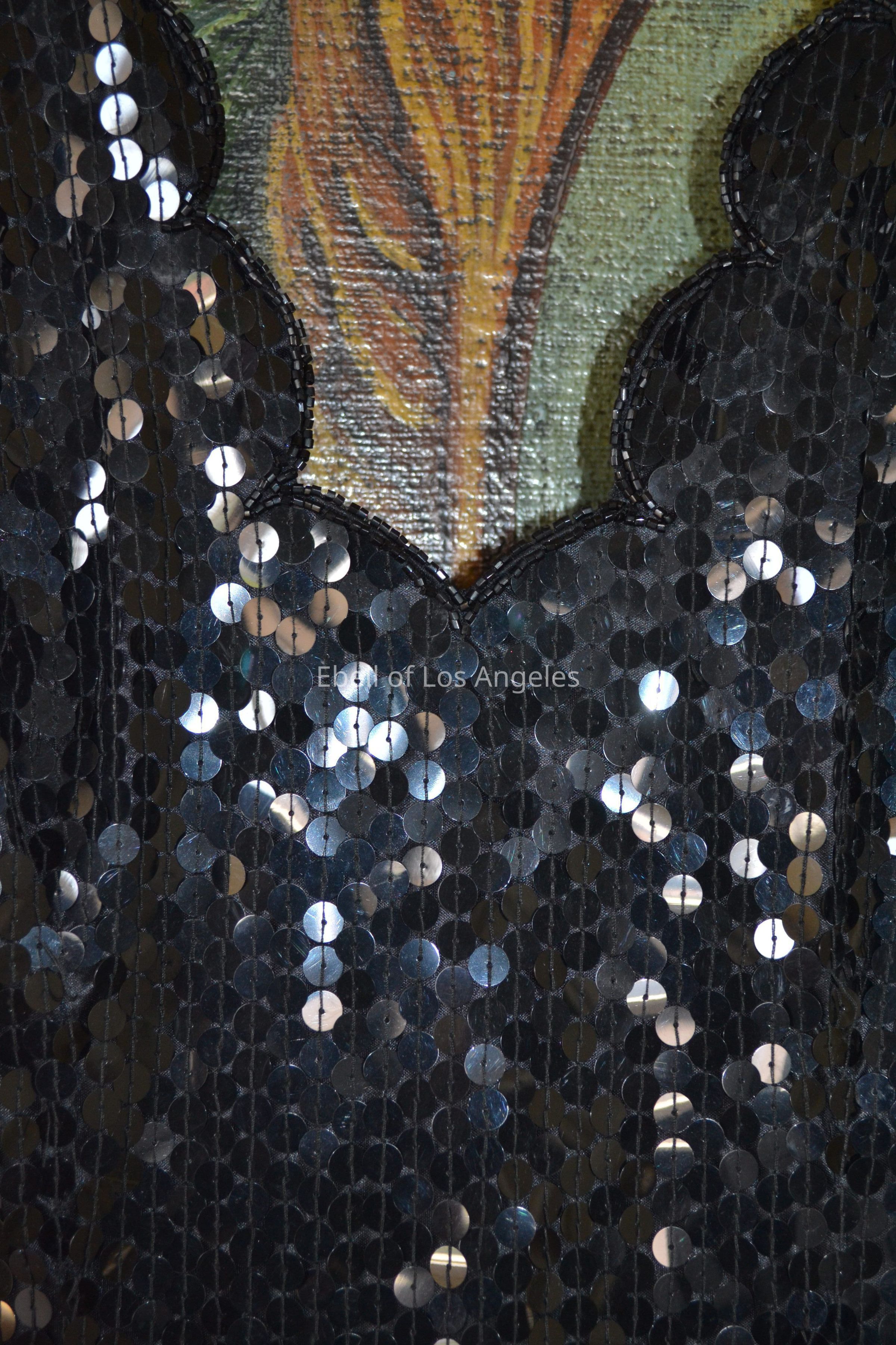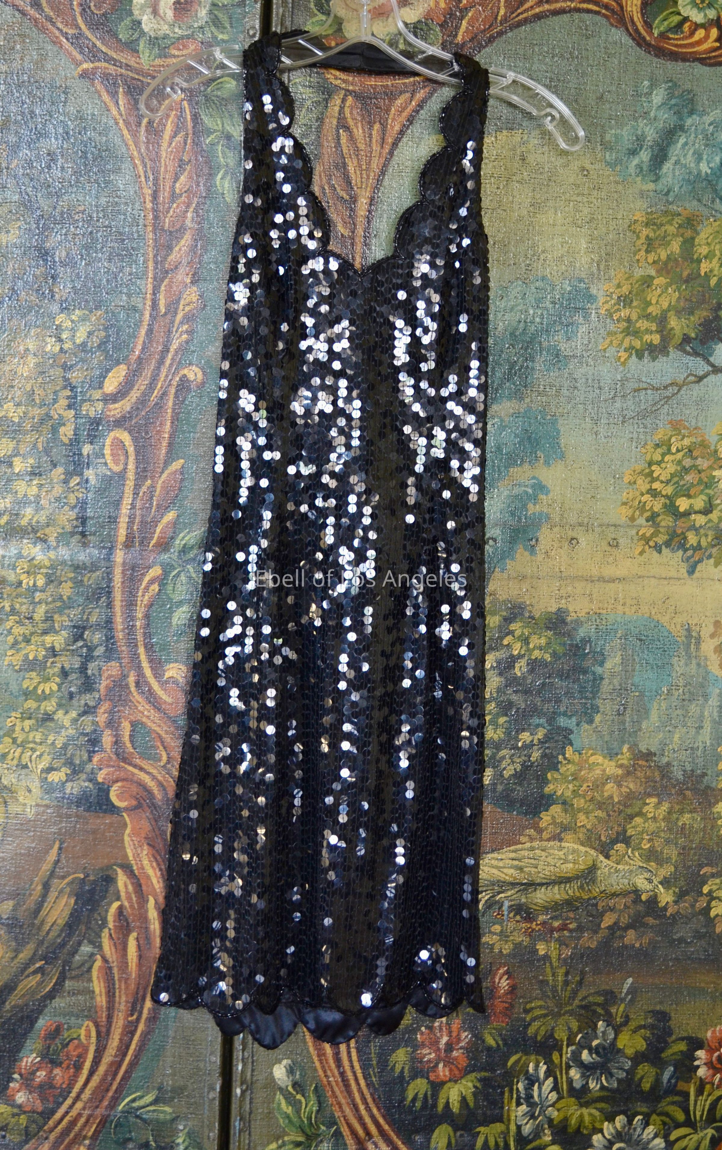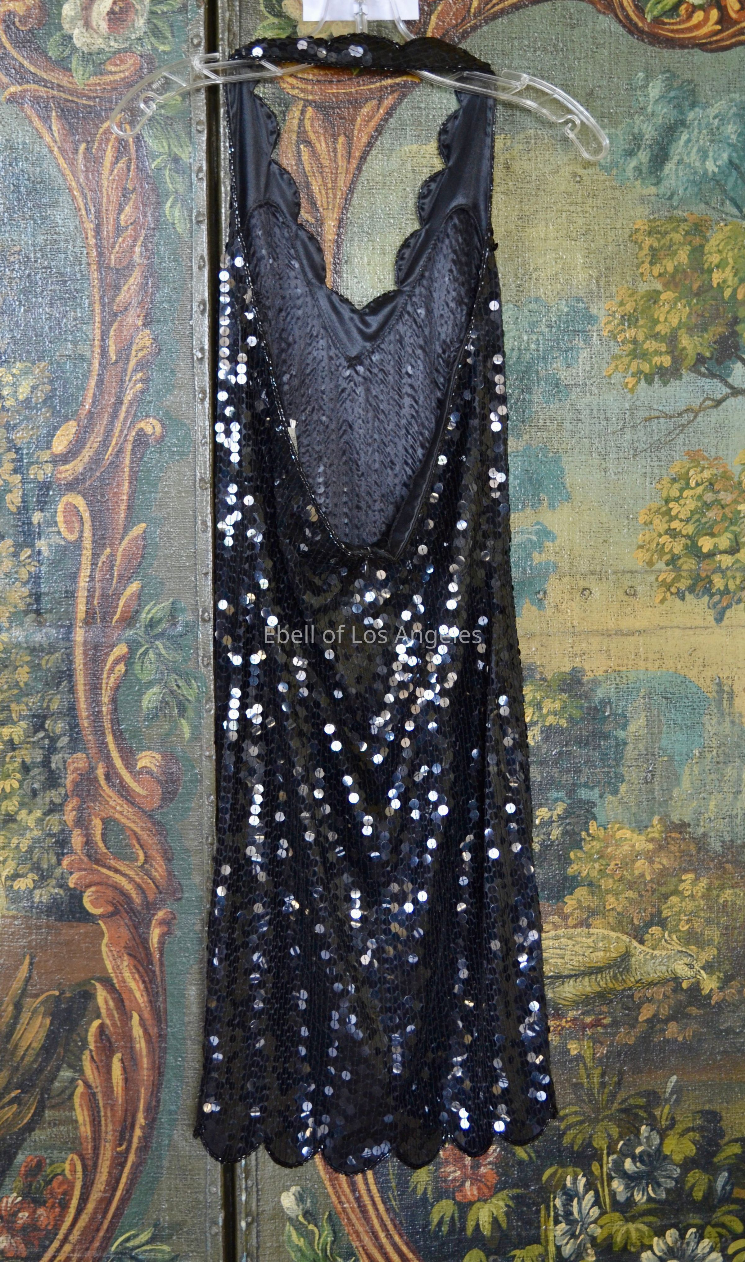 Black sequined halter dress with scalloped hem and neckEntry/Object ID
