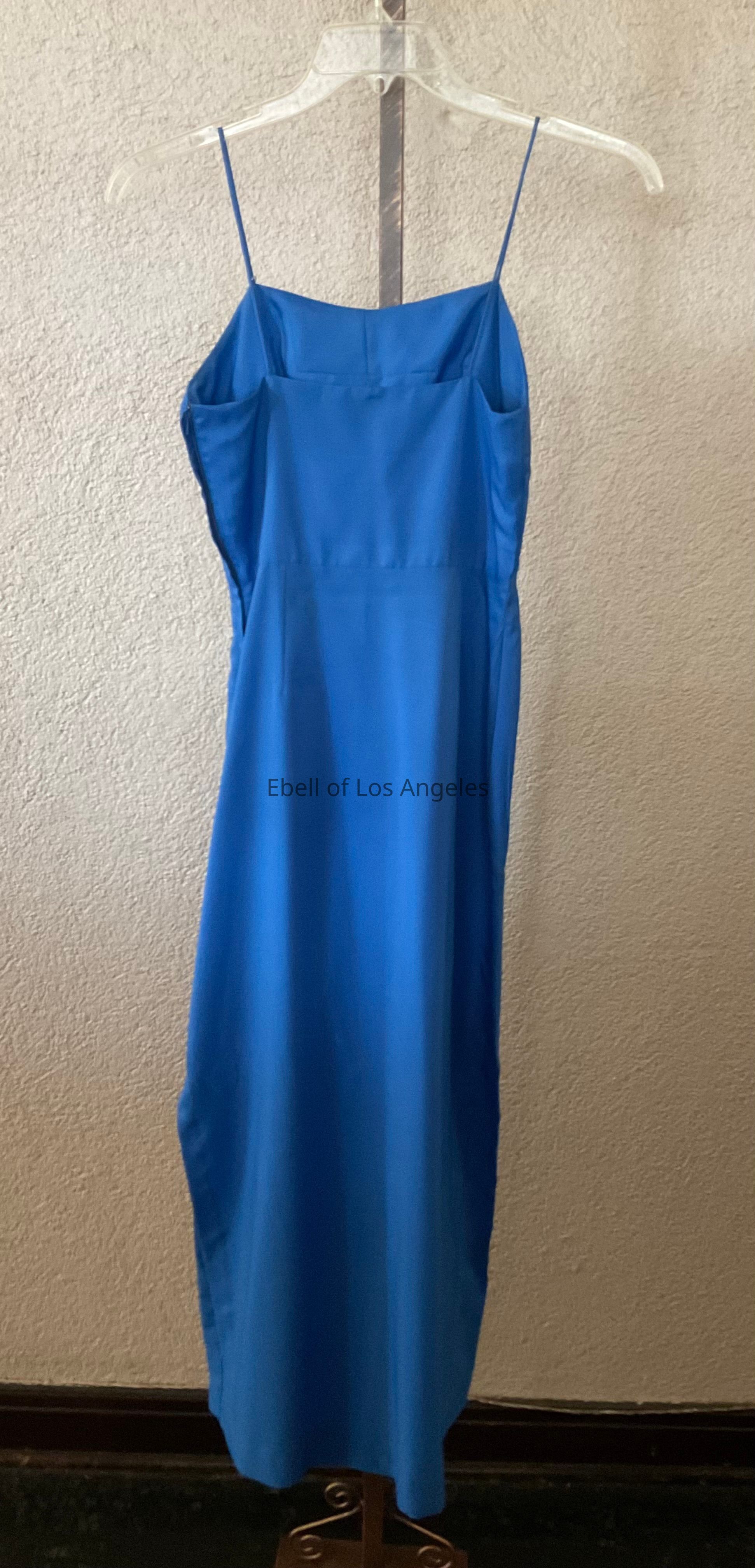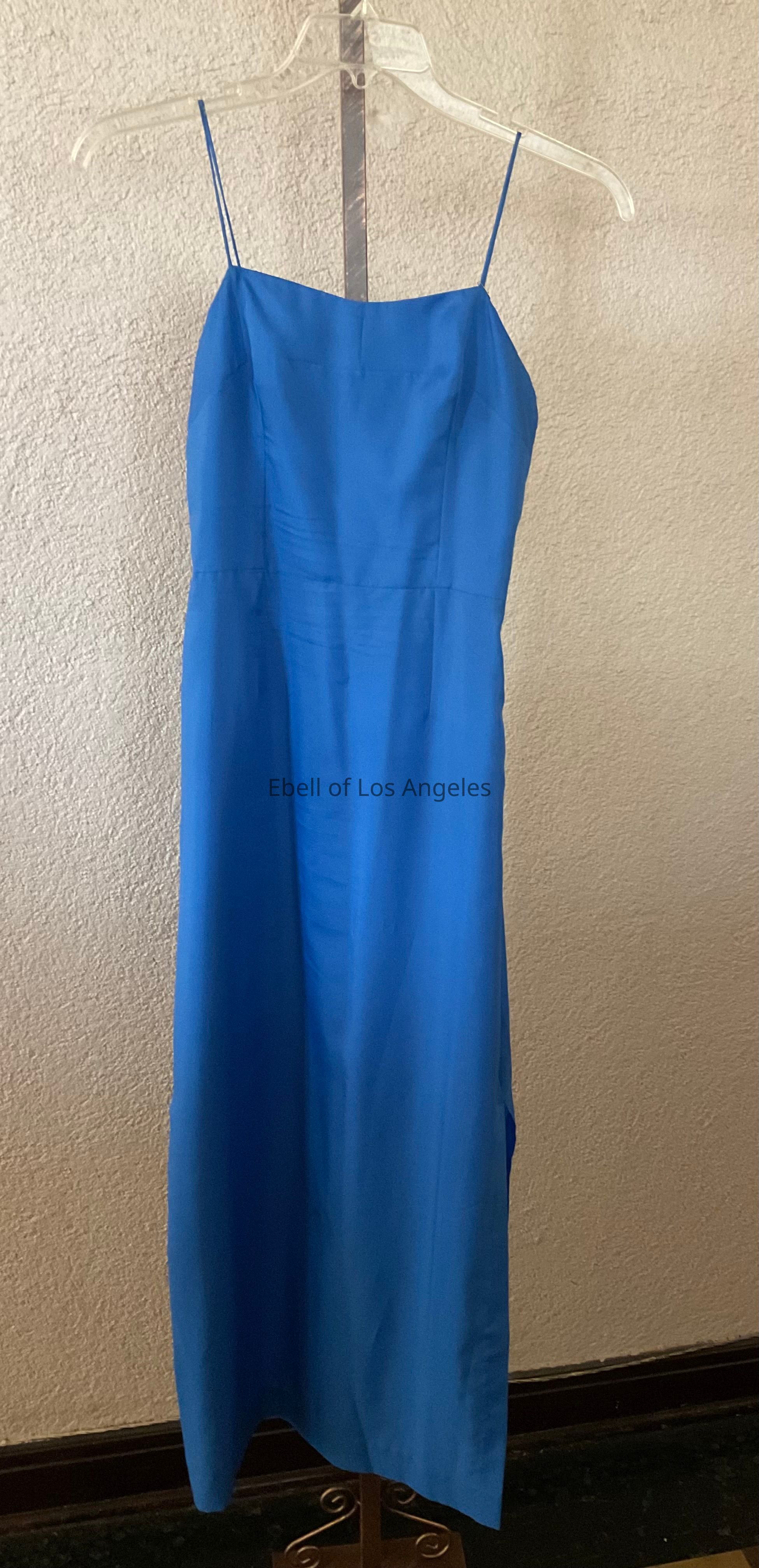 Slip dress with fitted bodice, side zip, spaghetti straps, left front side slit