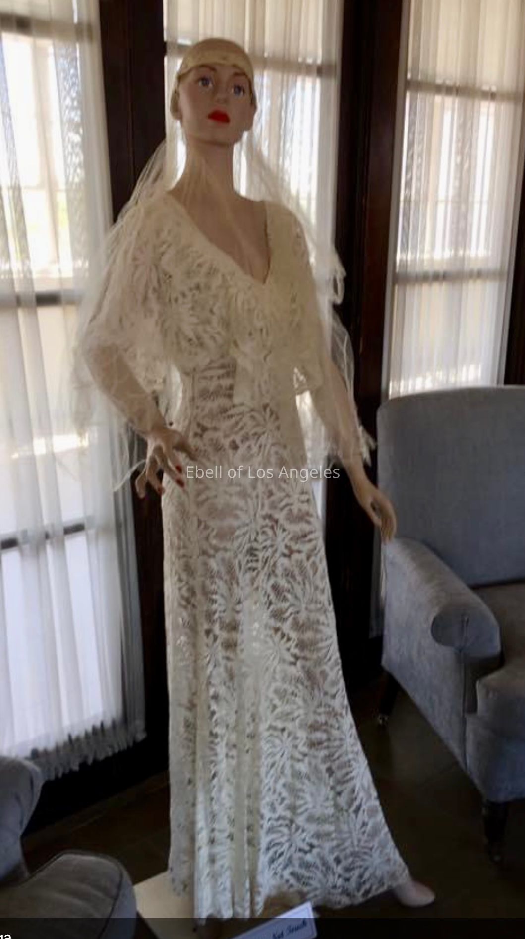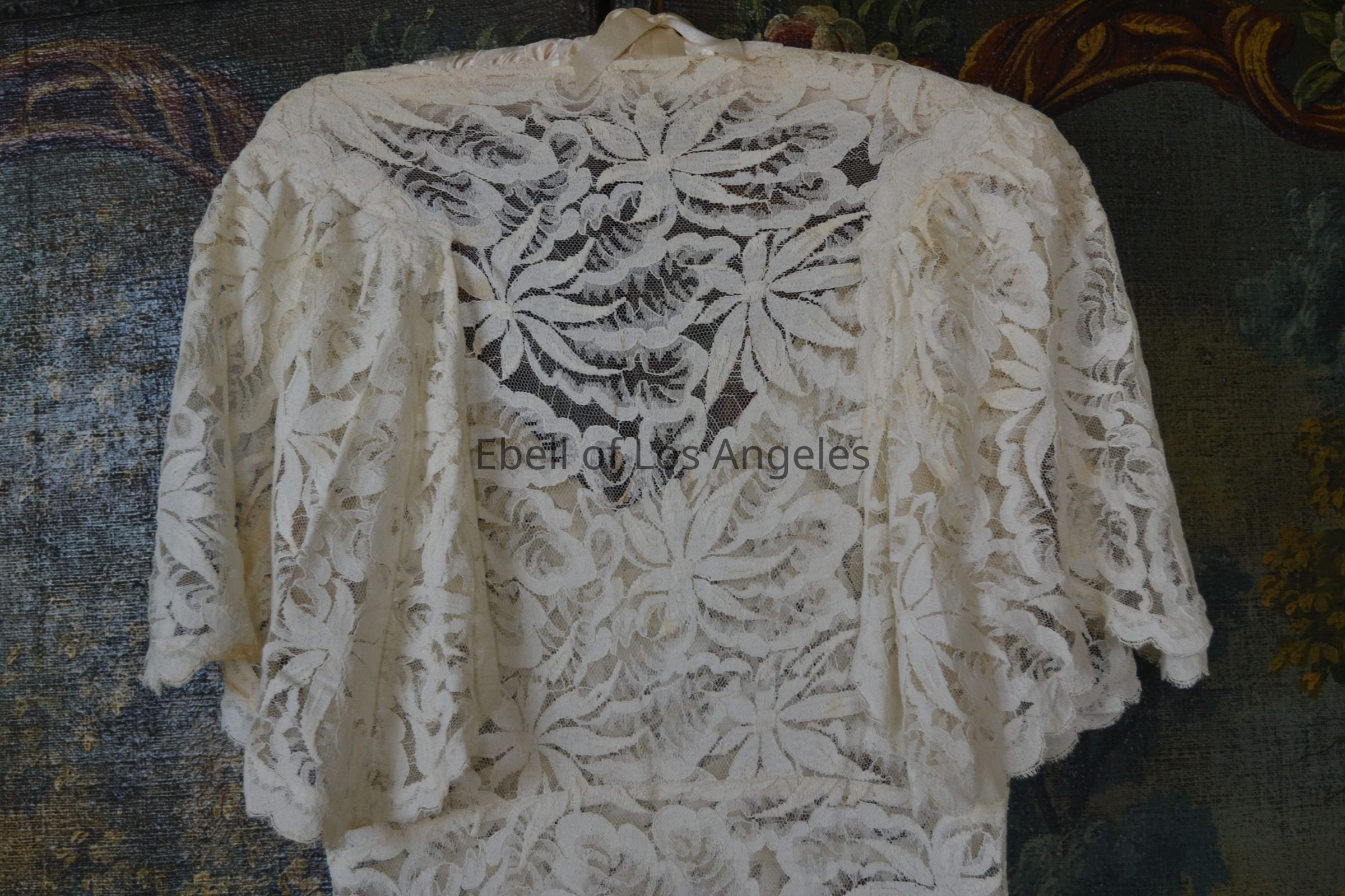 Machine lace wedding dress with V neck, shawl collar, detachable sleeves and veilEntry/Object ID