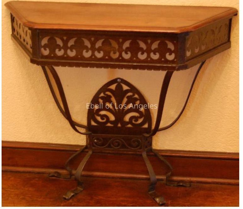 Baroque style wrought iron console table with walnut top. The iron apron showcases a fleur de lis pattern which also appears on the back of the iron base plate.Collection
