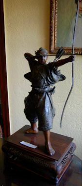 Bronze samurai archer holding bow