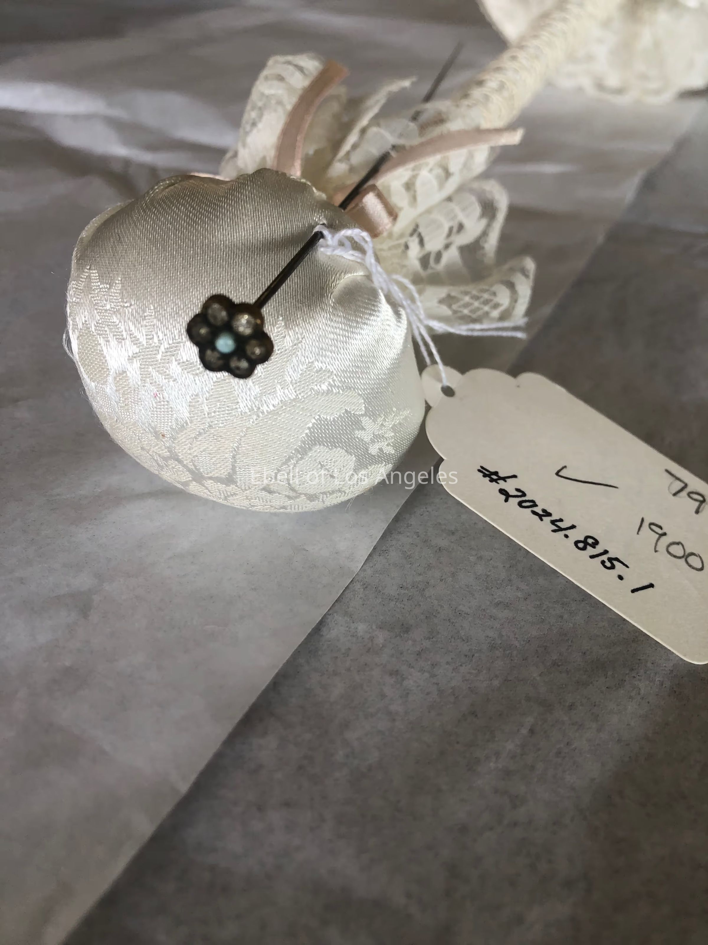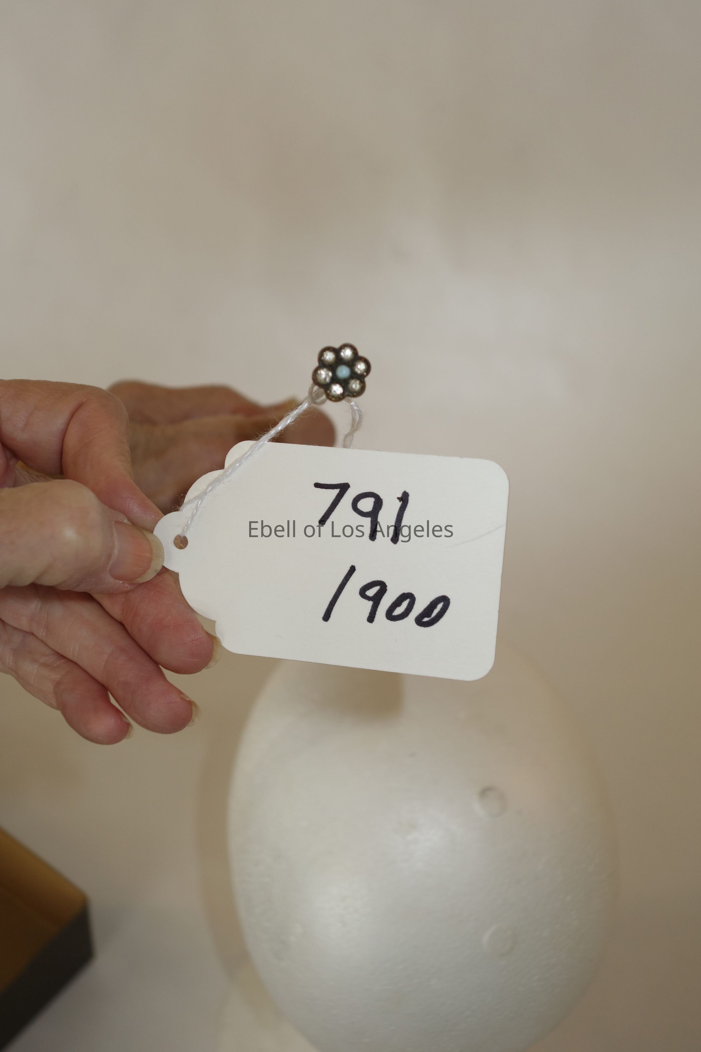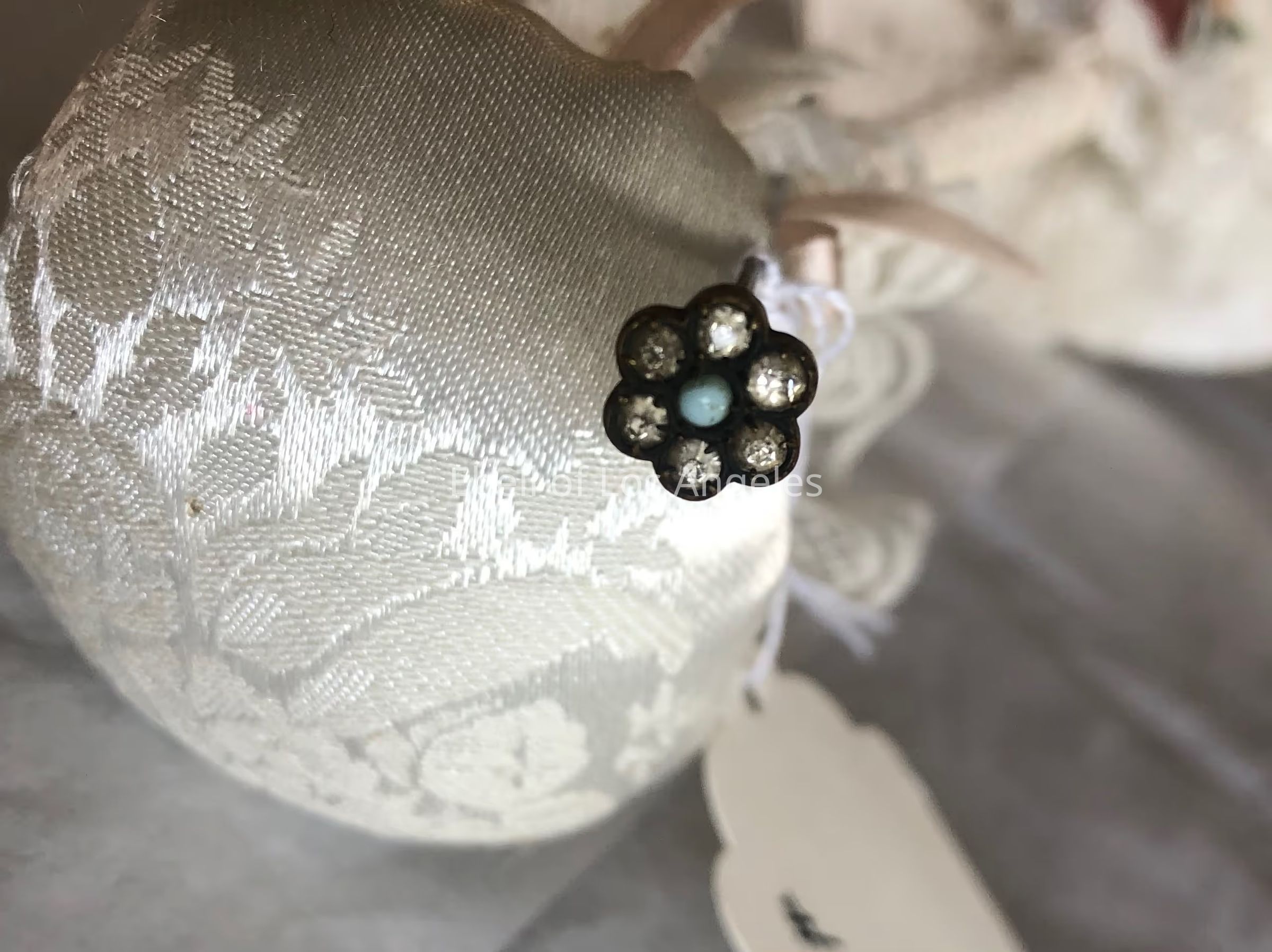 Hat Pin, Daisy made from Six Clear Beads surrounding One Blue Bead