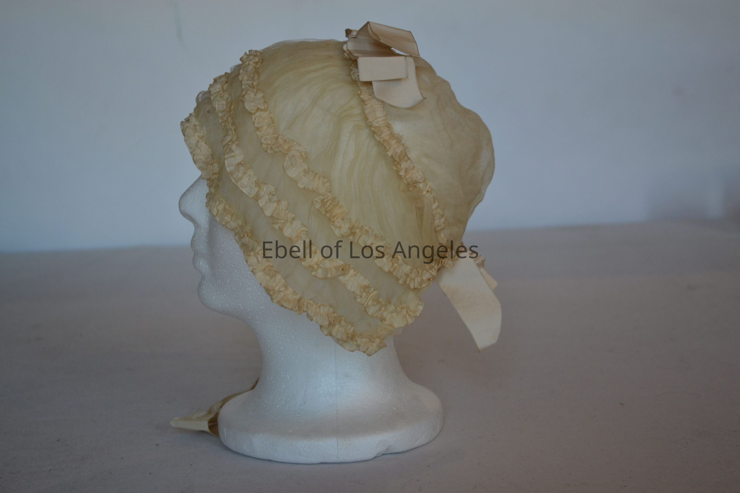 Hat - Ruffled, Gathered Bonnet with one Tie and Bow at back and top