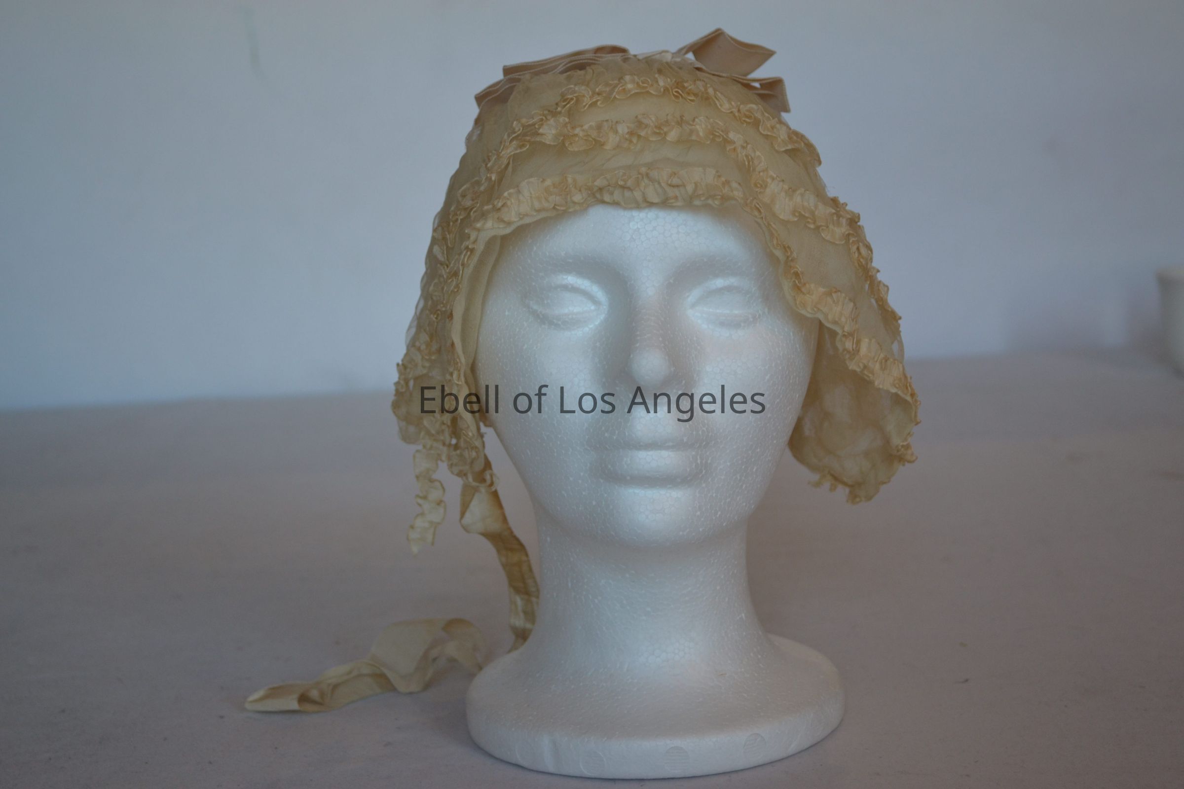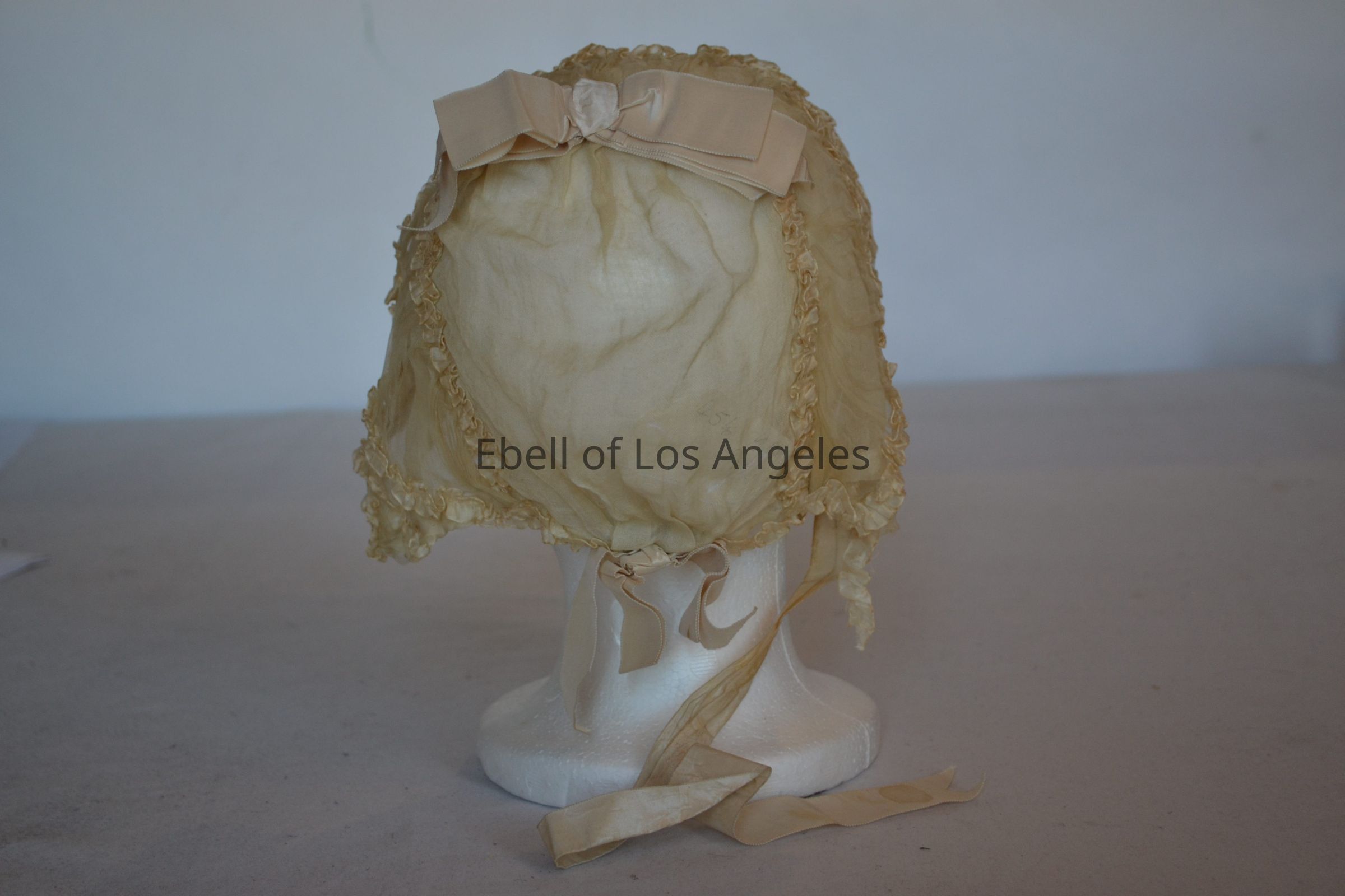 Ruffled, Gathered Bonnet with one Tie and Bow at back and top
