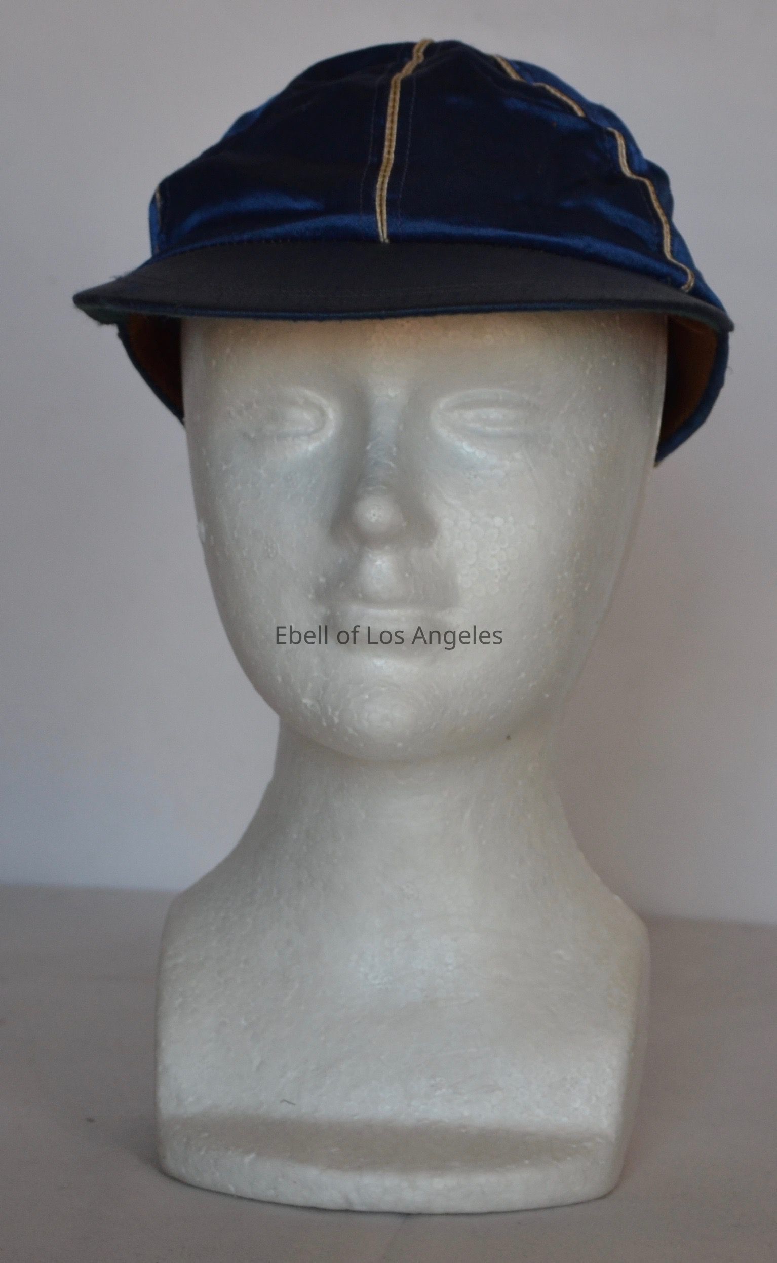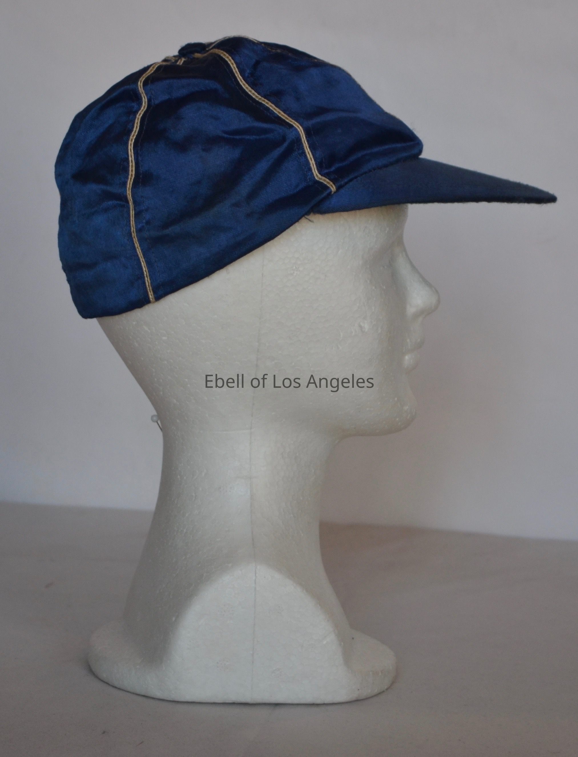 Satin Baseball Cap with Visible Cream Stitching on Crown - Blue