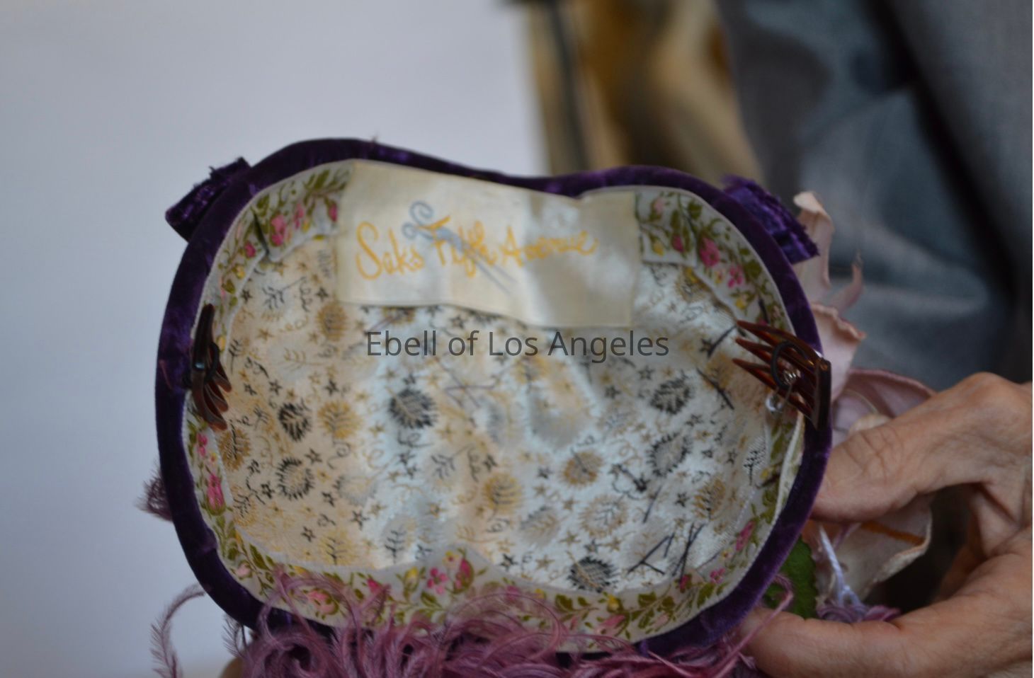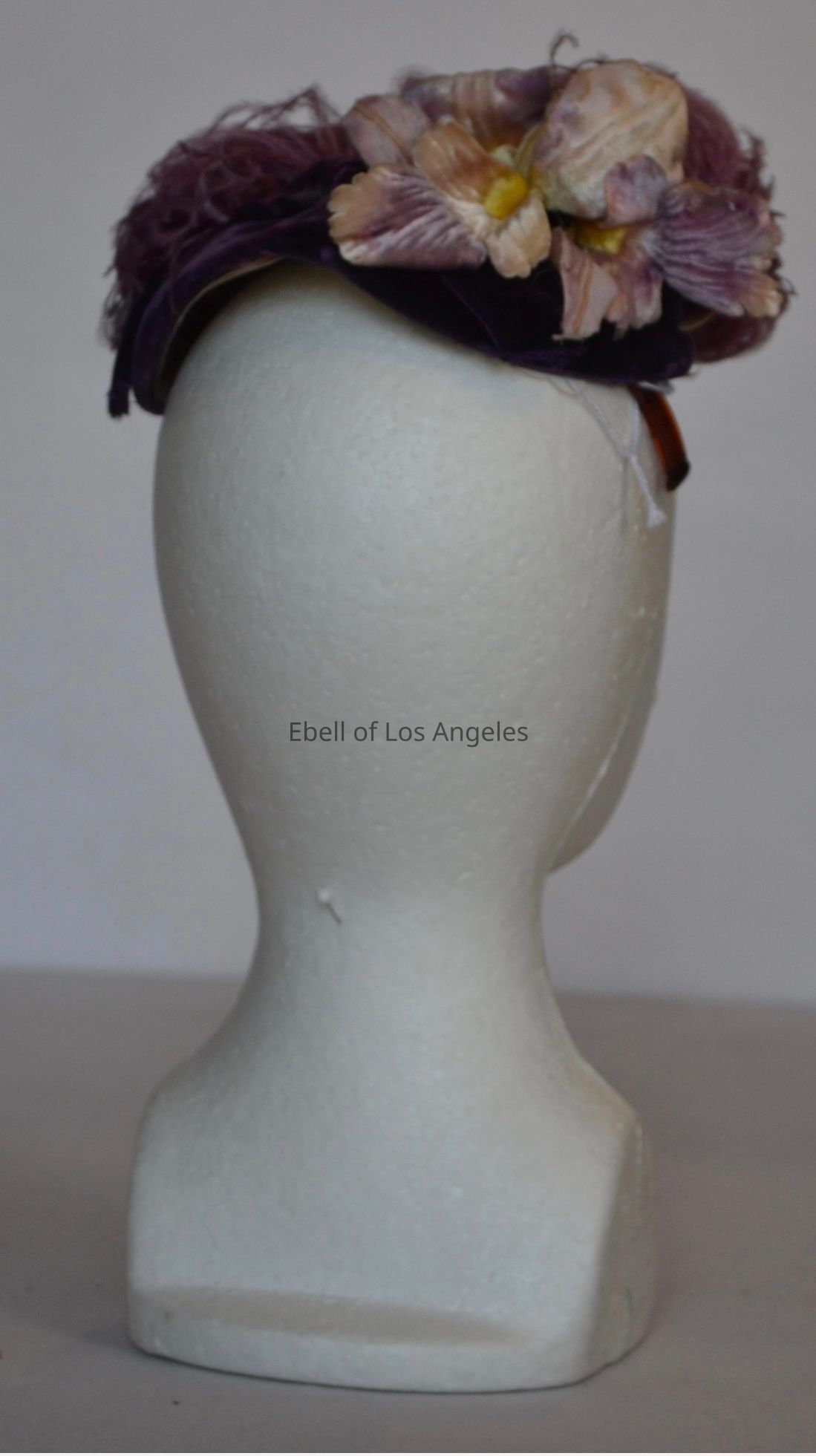 Velvet calot with plumes at front and velvet flowers embellishmentCollection