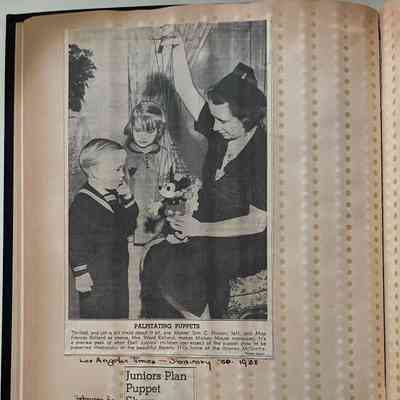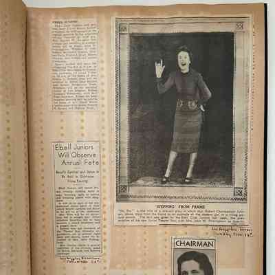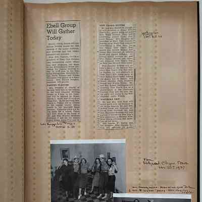 The Ebell Juniors Scrapbook from 1937 to 1938. Includes newpaper clippings and five black and white photographs.Collection