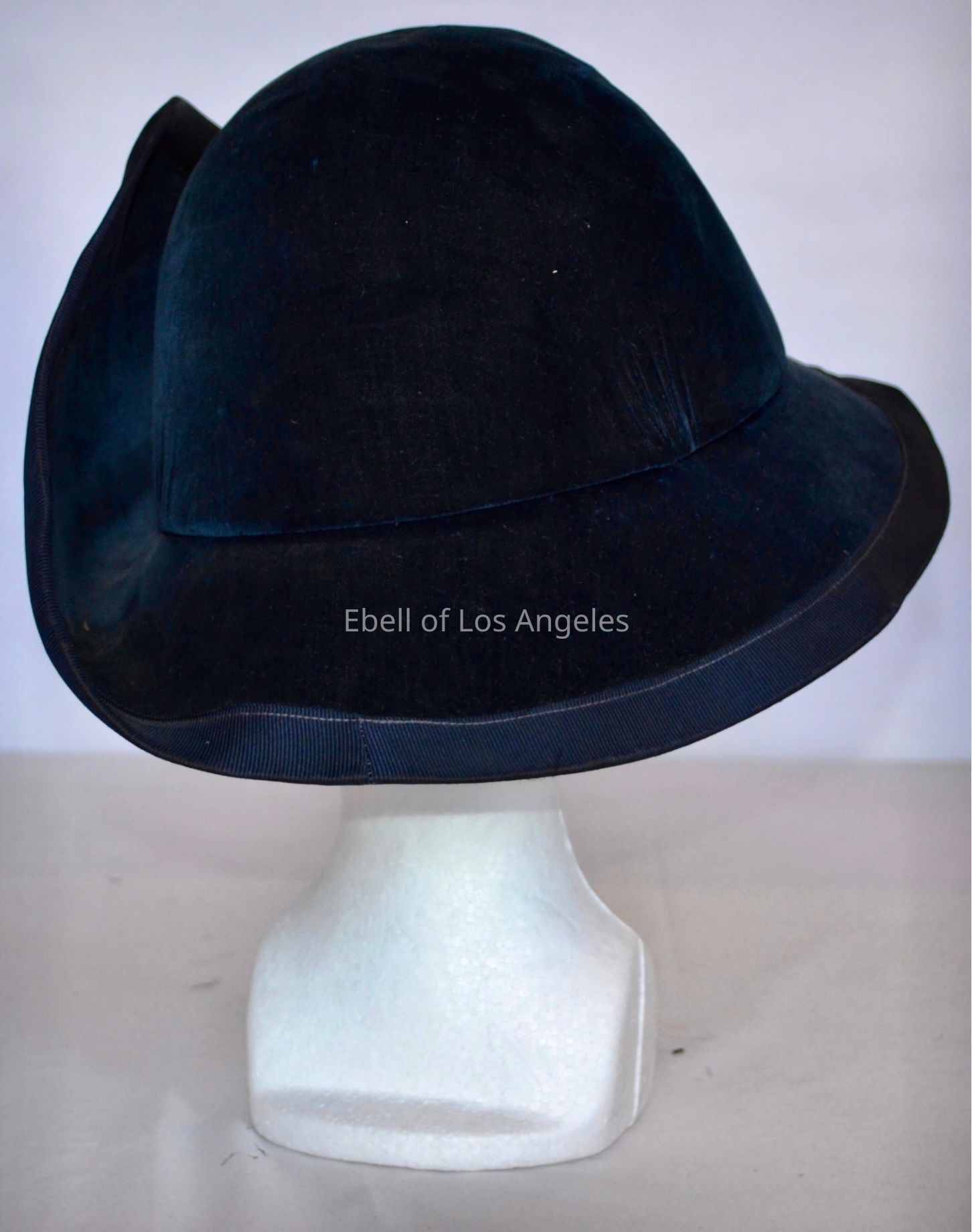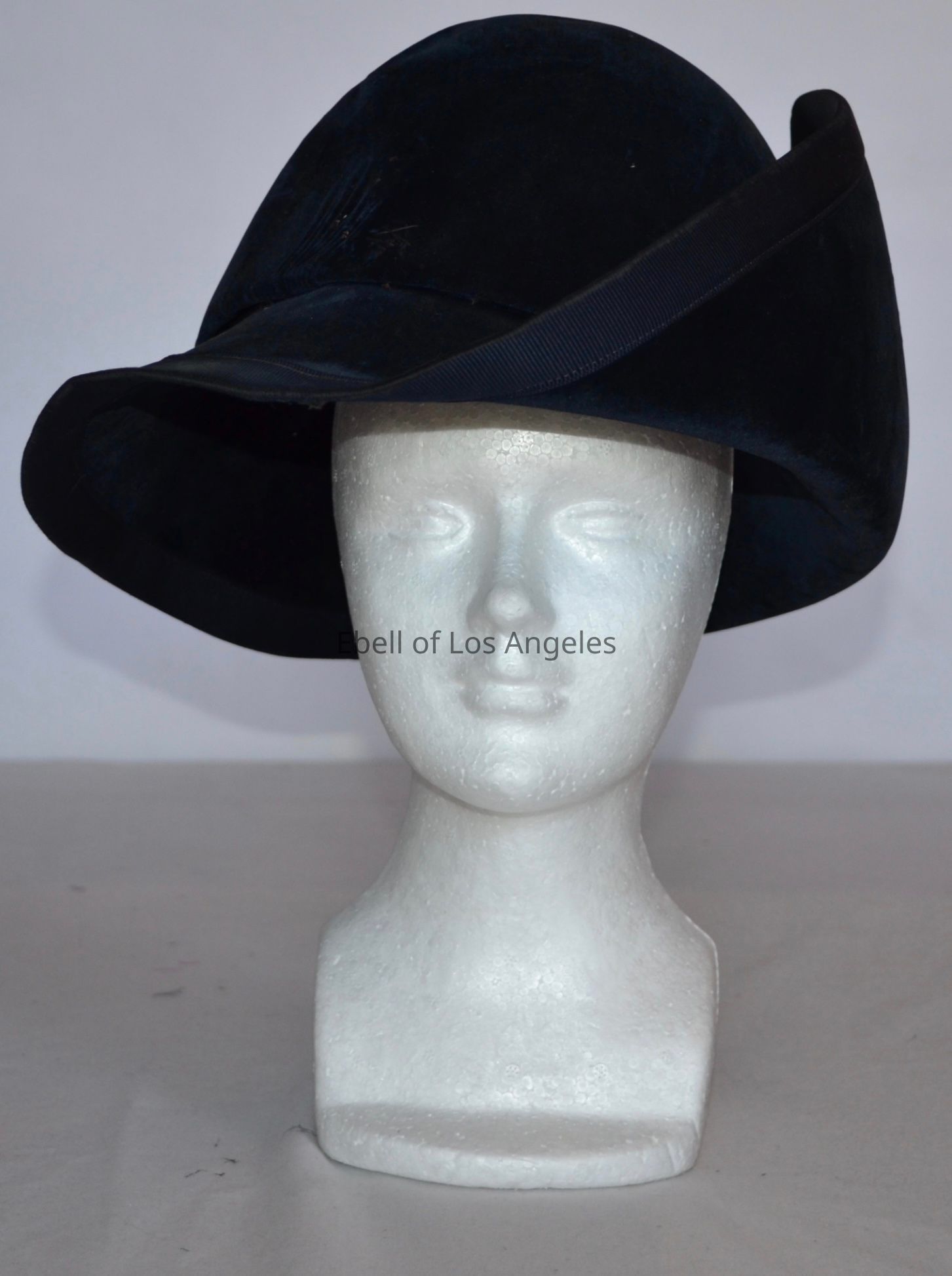 Velvet brimmed hat with grosgrain trim, high crown and brim flipped up on sideEntry/Object ID