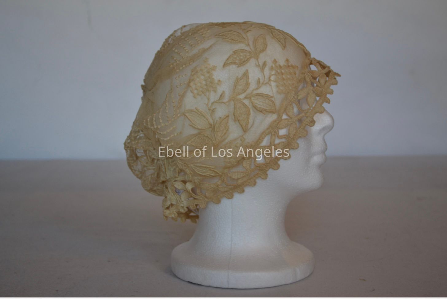 Embroidered lace boudoir cap