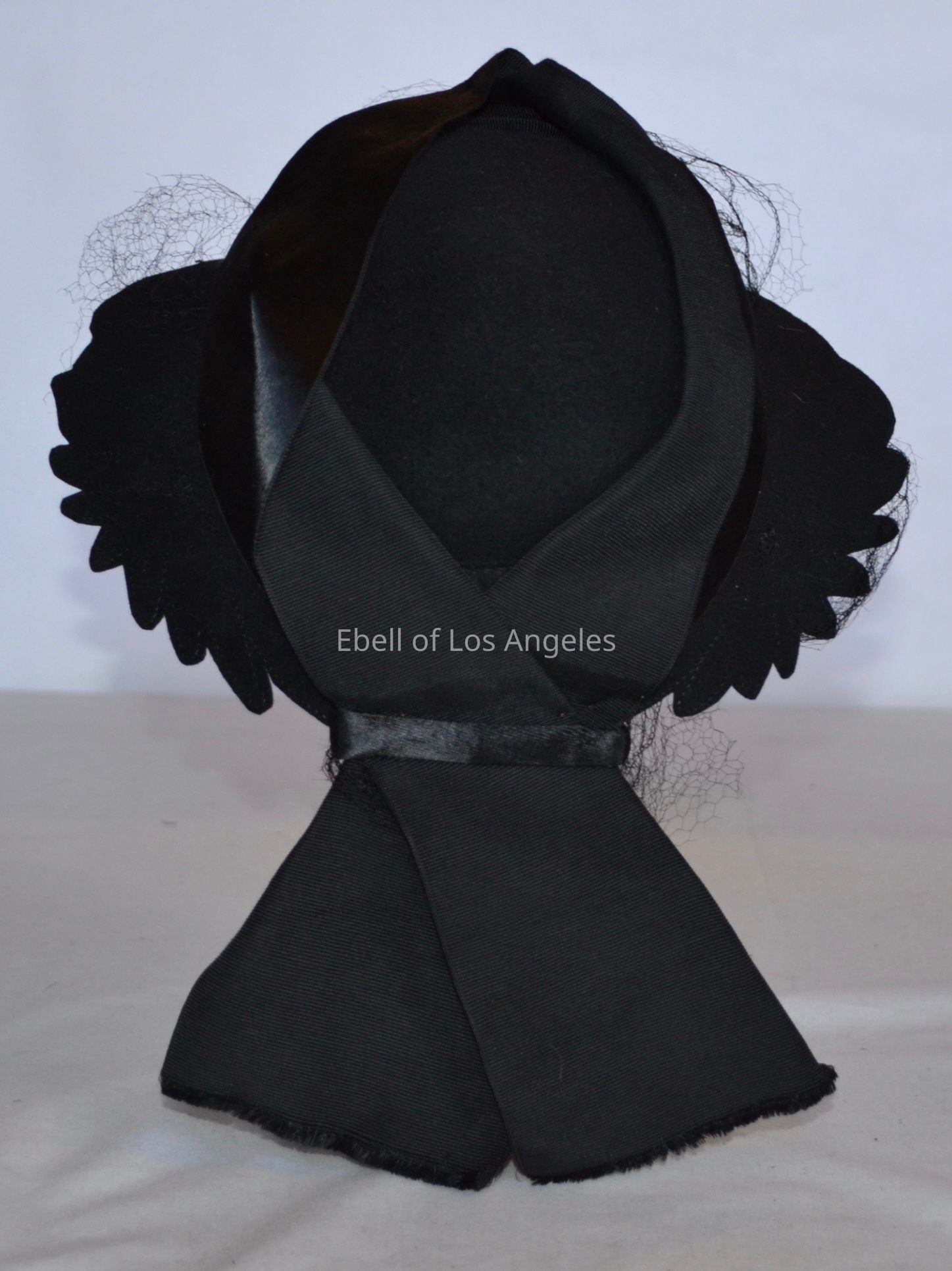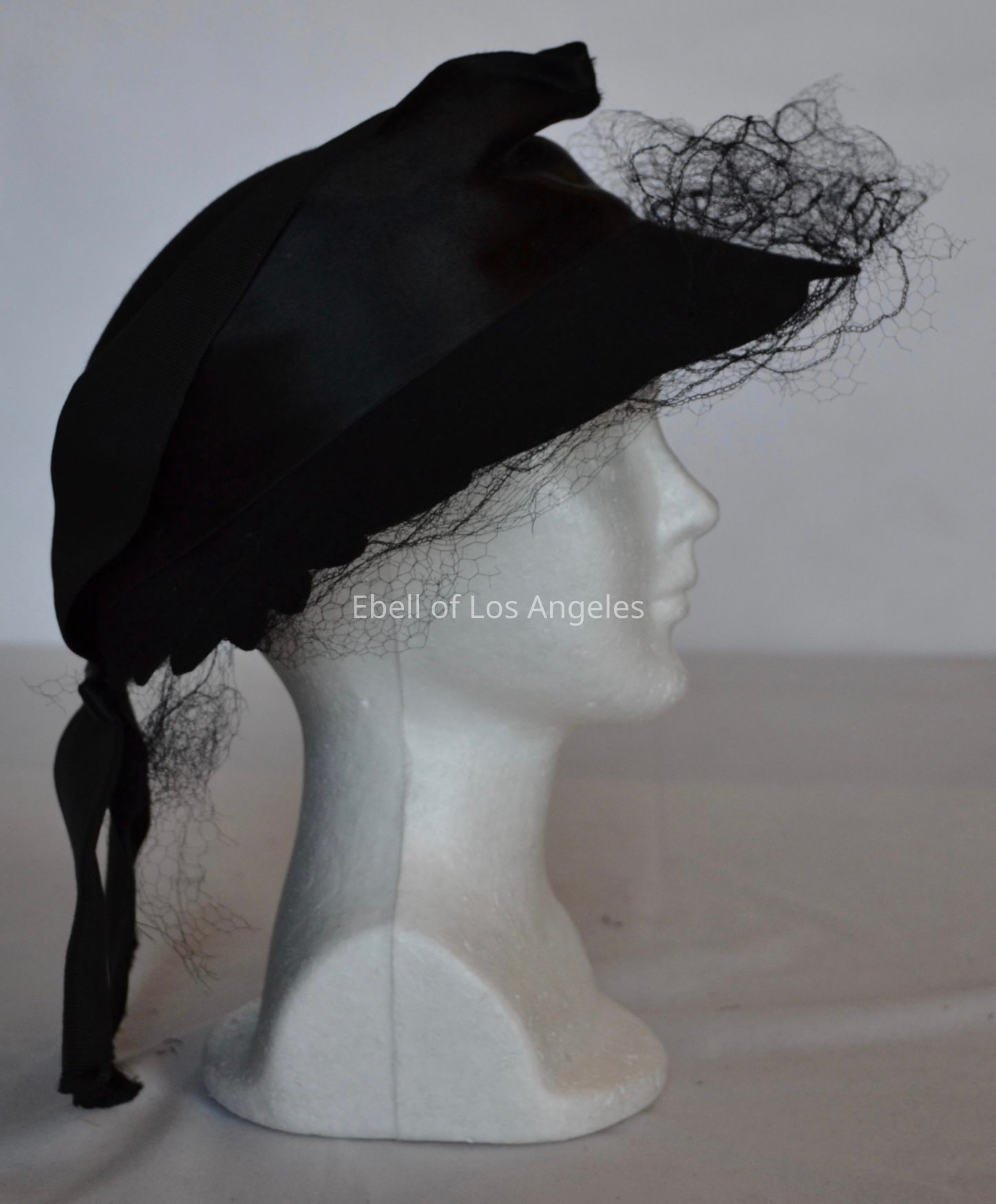 Felt hat with scallop edge brim and wide satin ribbon and netting