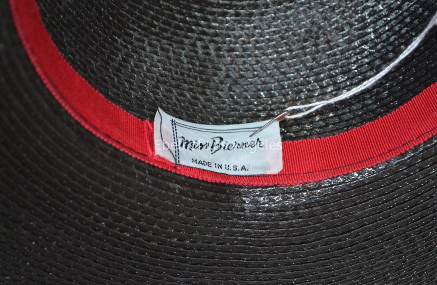 Straw wide brimmed hat with netting around brim and rhinestone pinEntry/Object ID