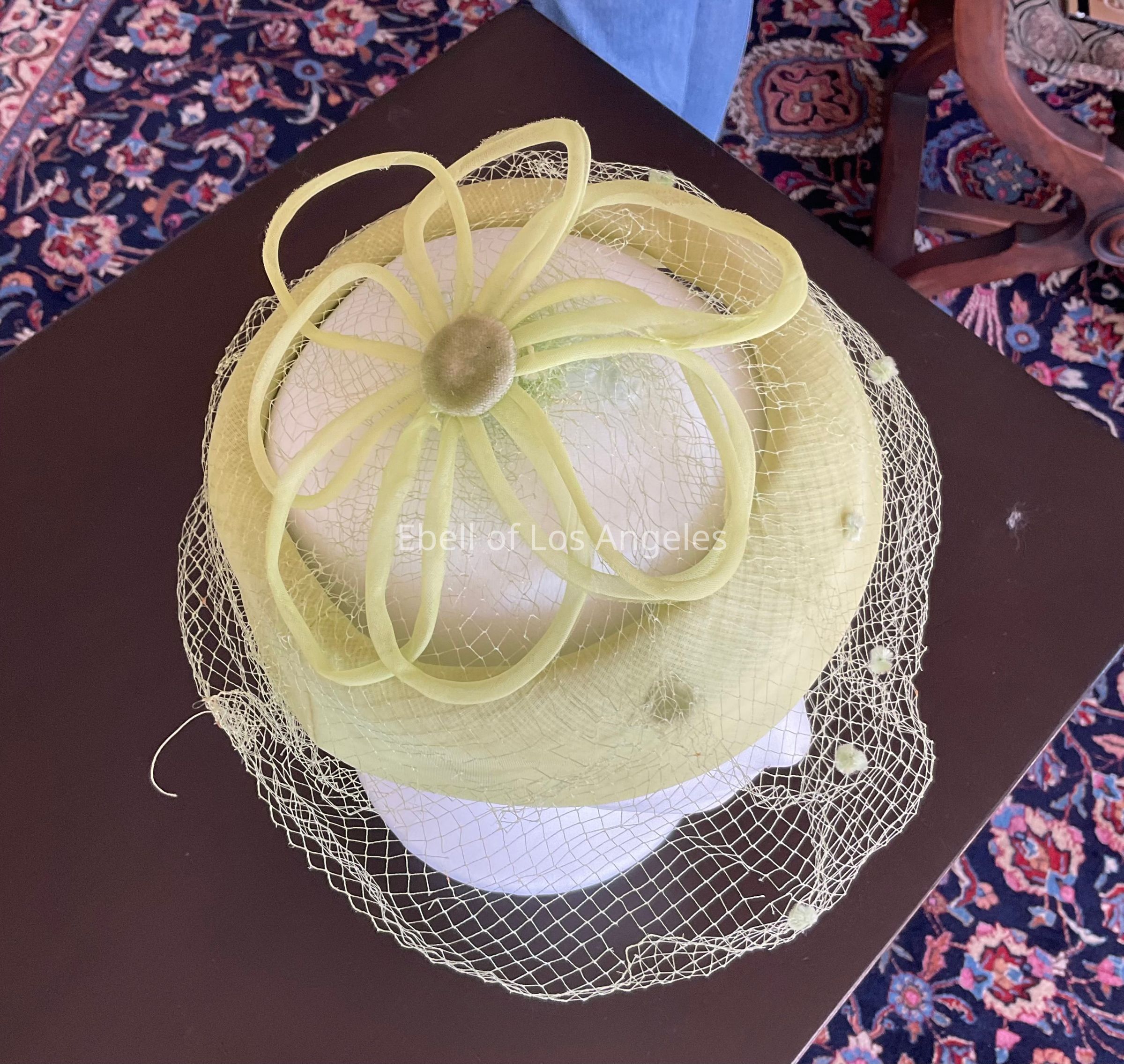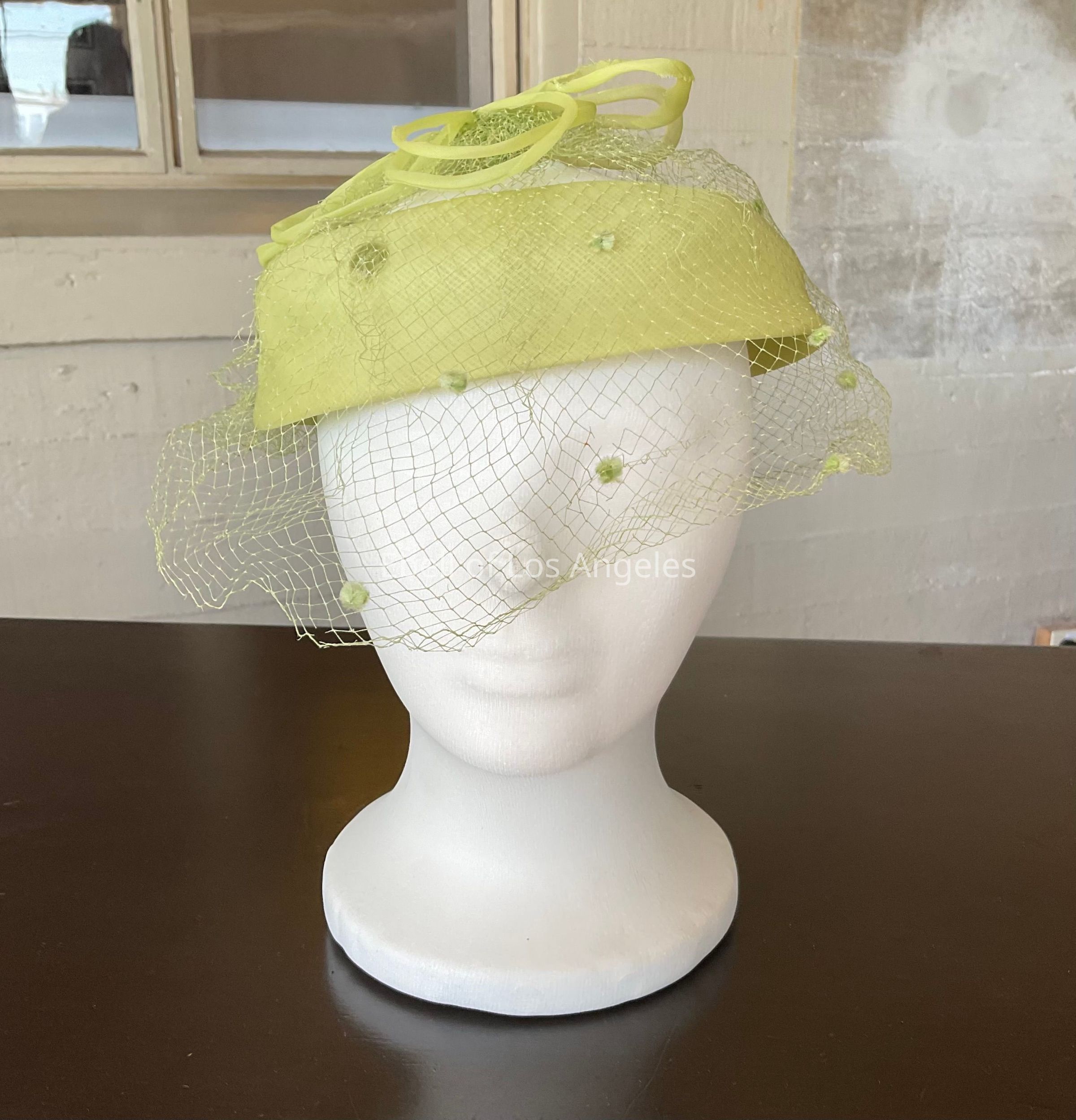 Lime green cocktail hat with flocked veiling and self corded bowEntry/Object ID