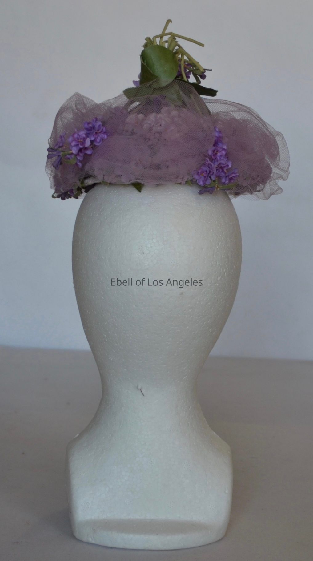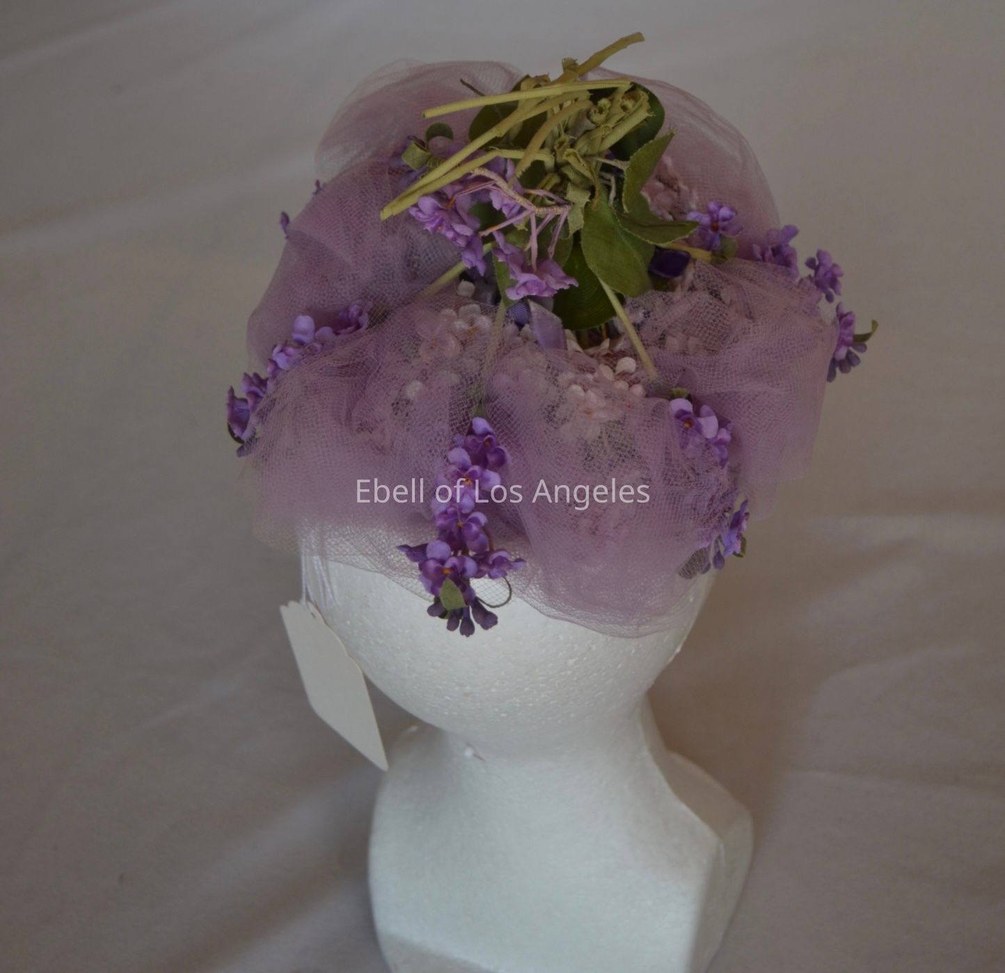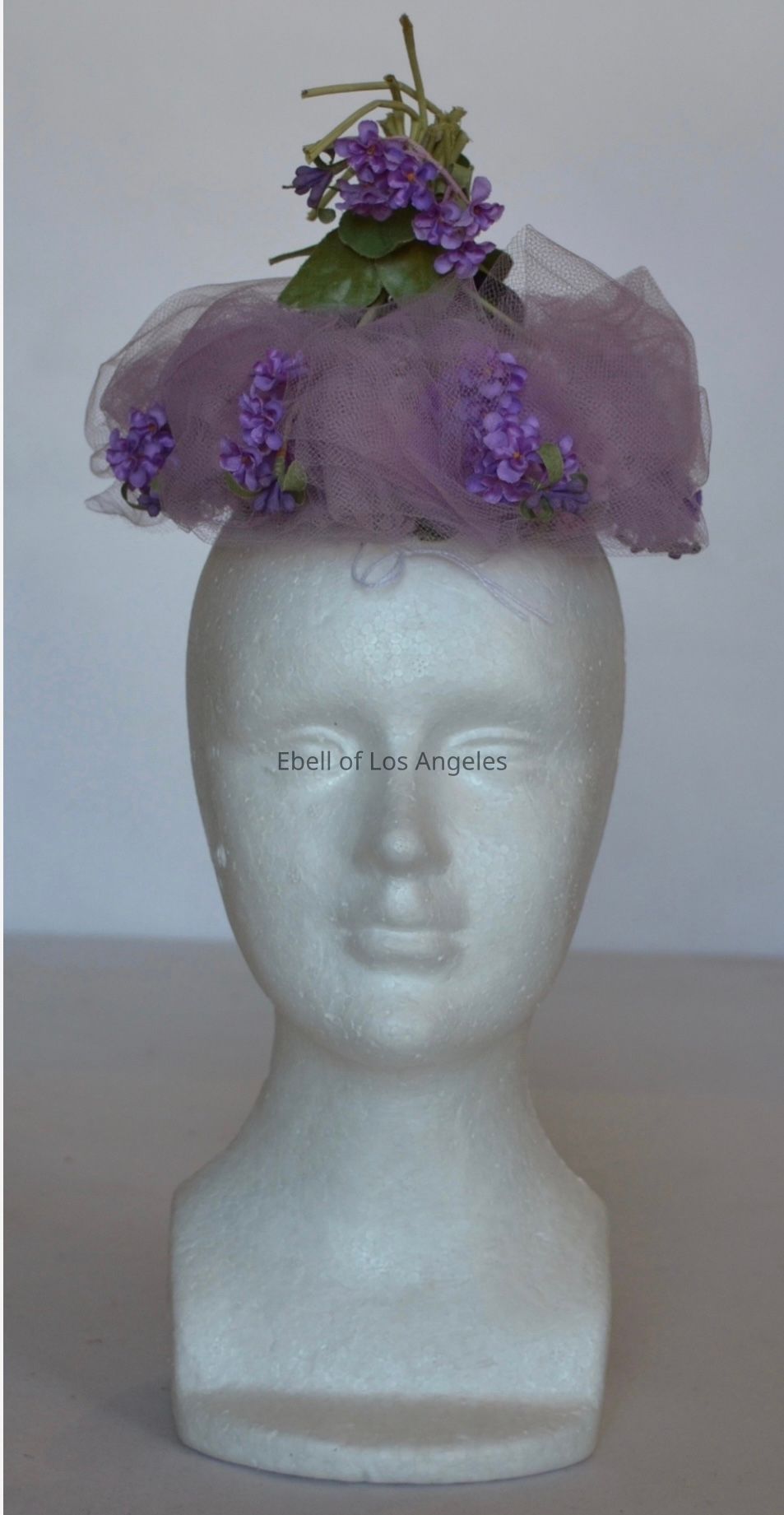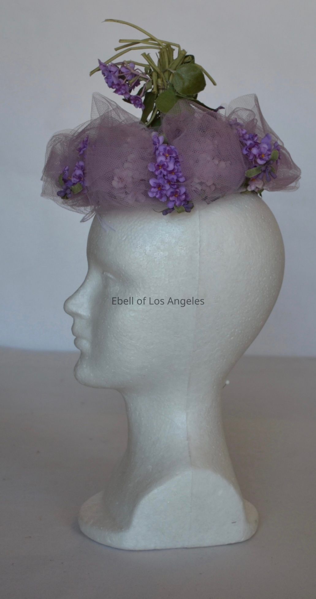 Calot of a bouquet of faux hyacinths with stems at top, surrounded by tulle