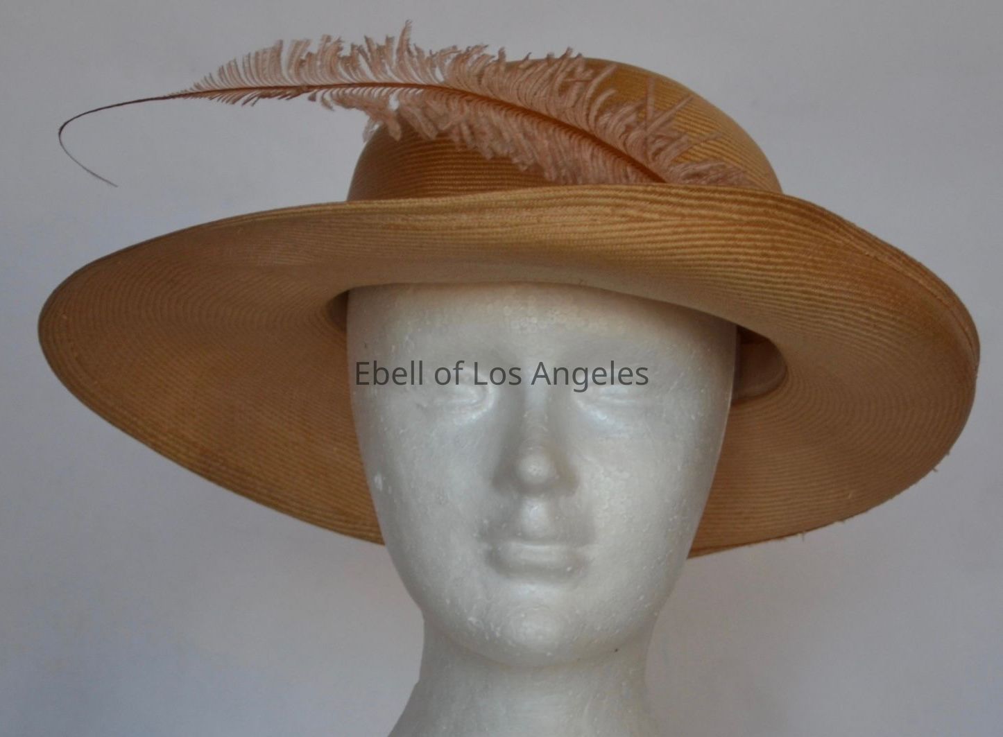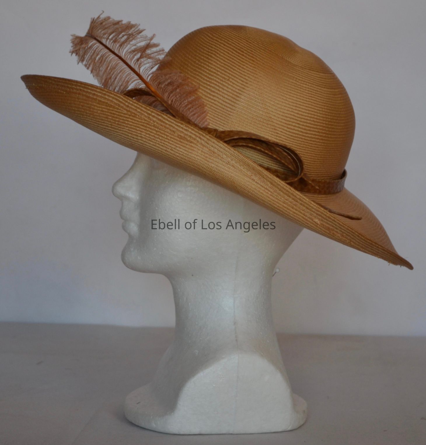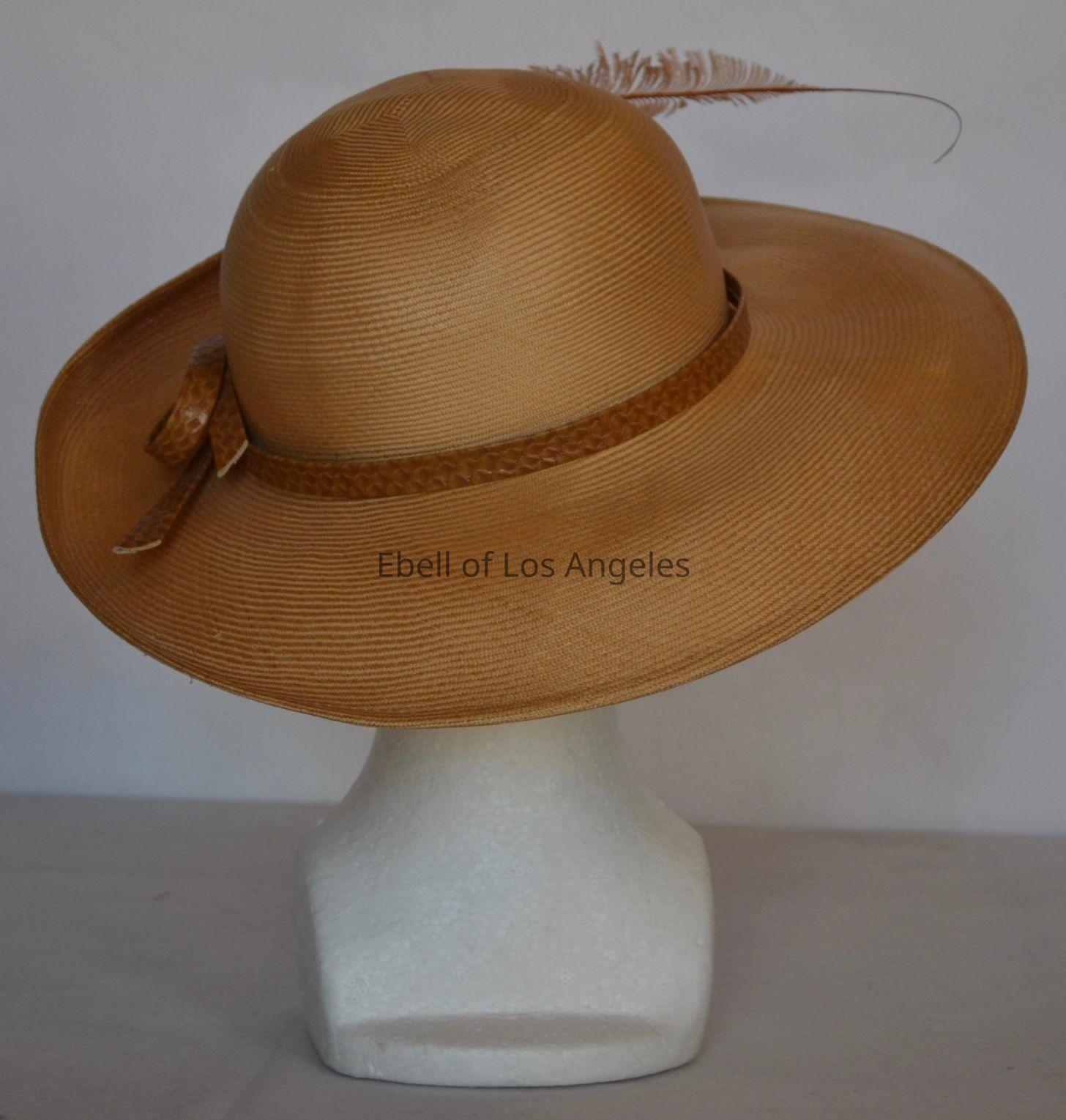 Straw wide brimmed hat with pink feather and snakeskin bandCollection