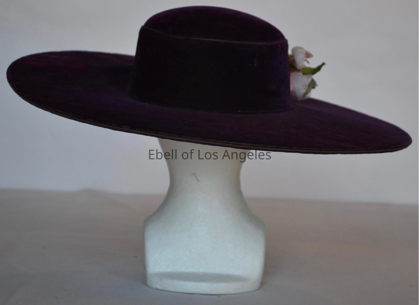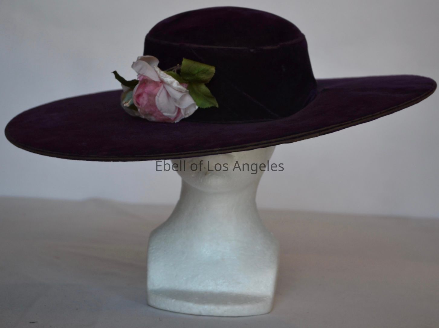 Velvet wide brim hat with faux flowersEntry/Object ID