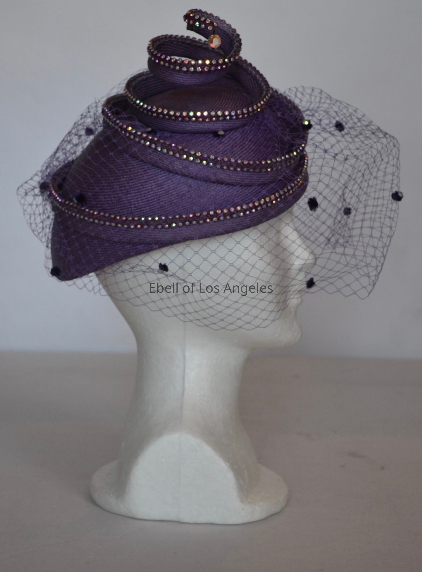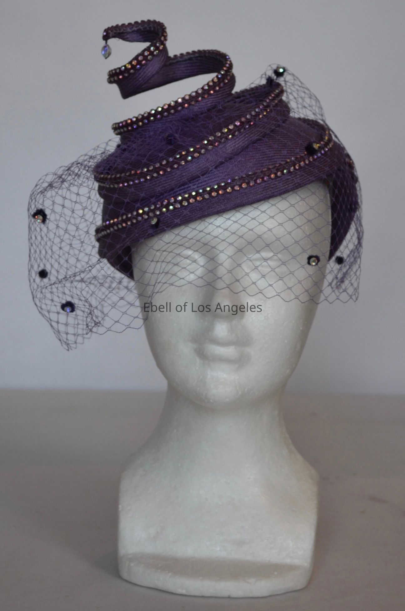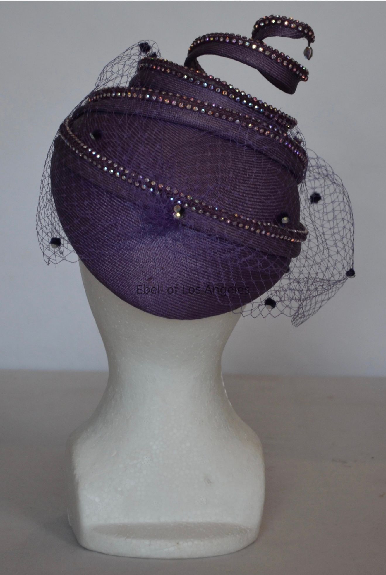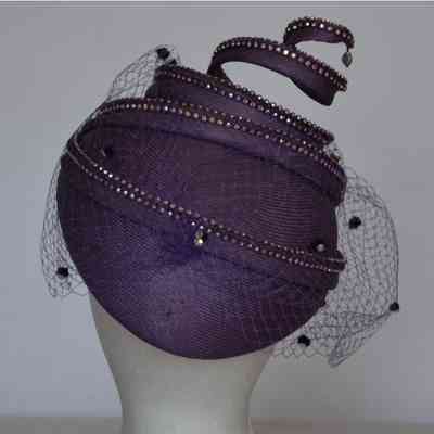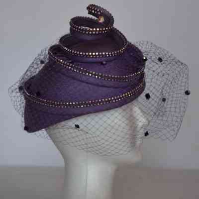 Straw cocktail hat with crystal embellished corkscrew element and crystal dotted nettingEntry/Object ID