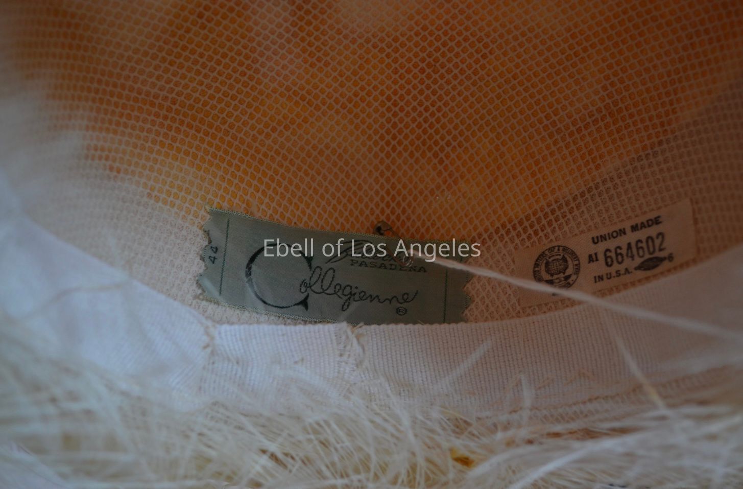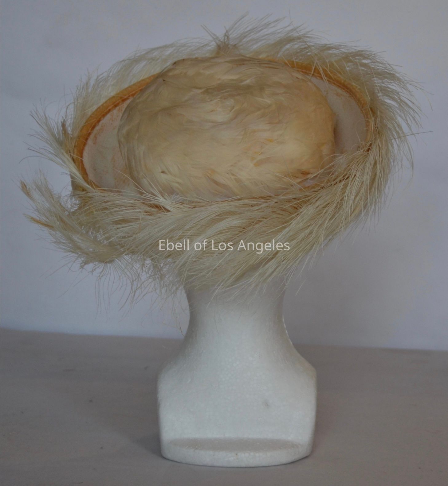 Hat with crown and turned up brim both covered in feathersCollection