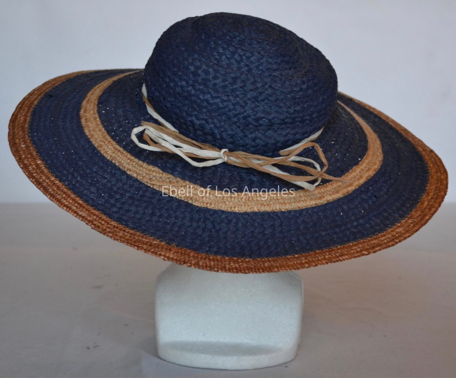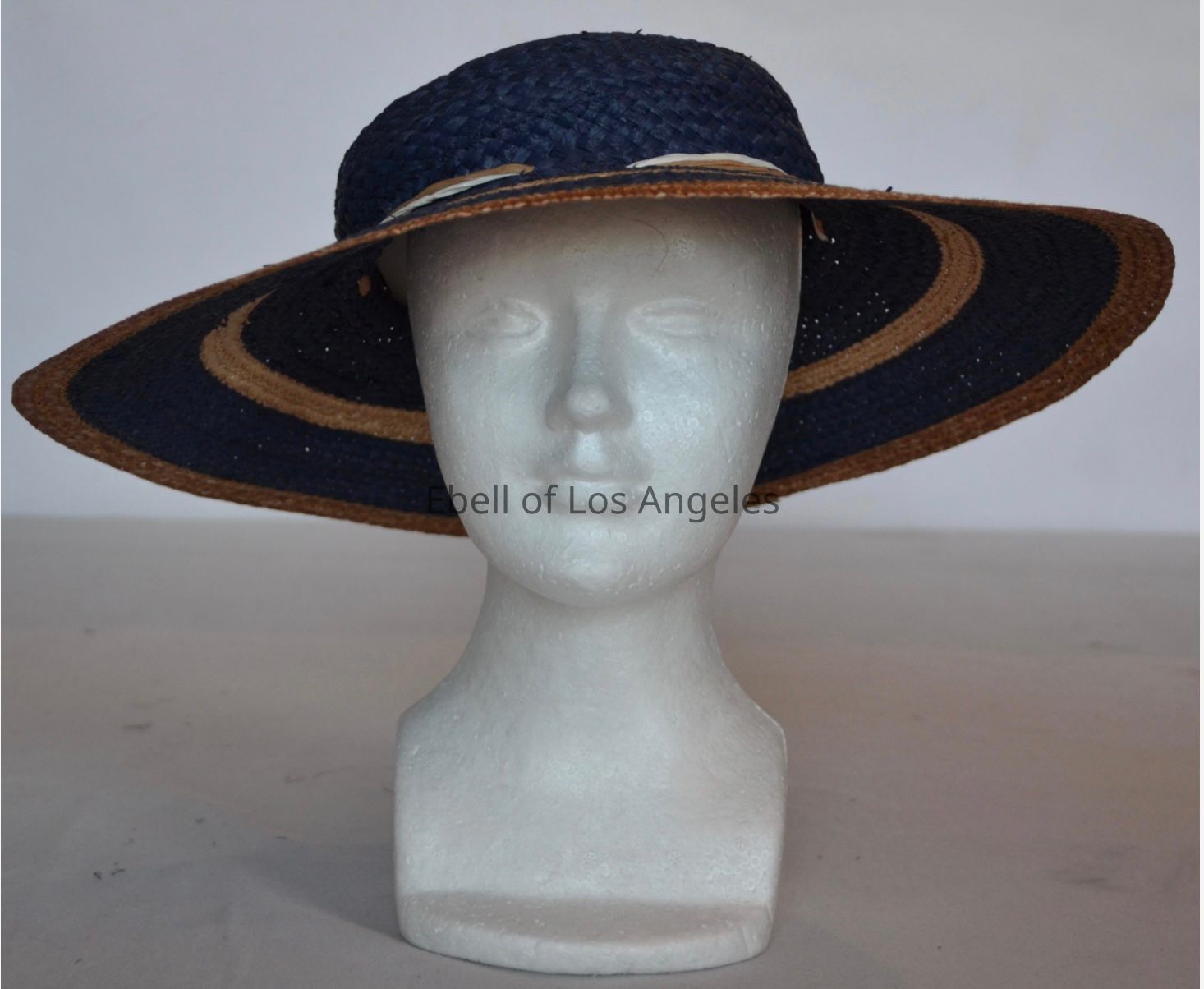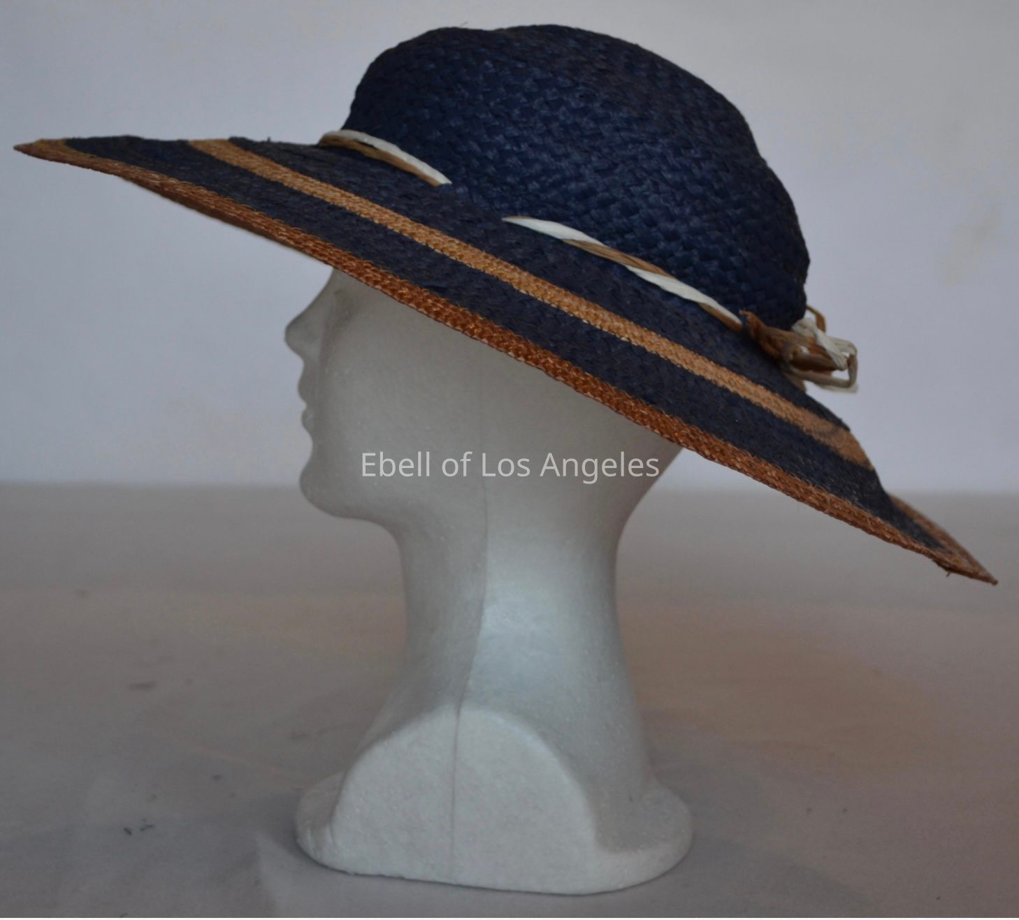 Straw wide brim hat with short crown and contrast woven bands in brim, straw bandEntry/Object ID