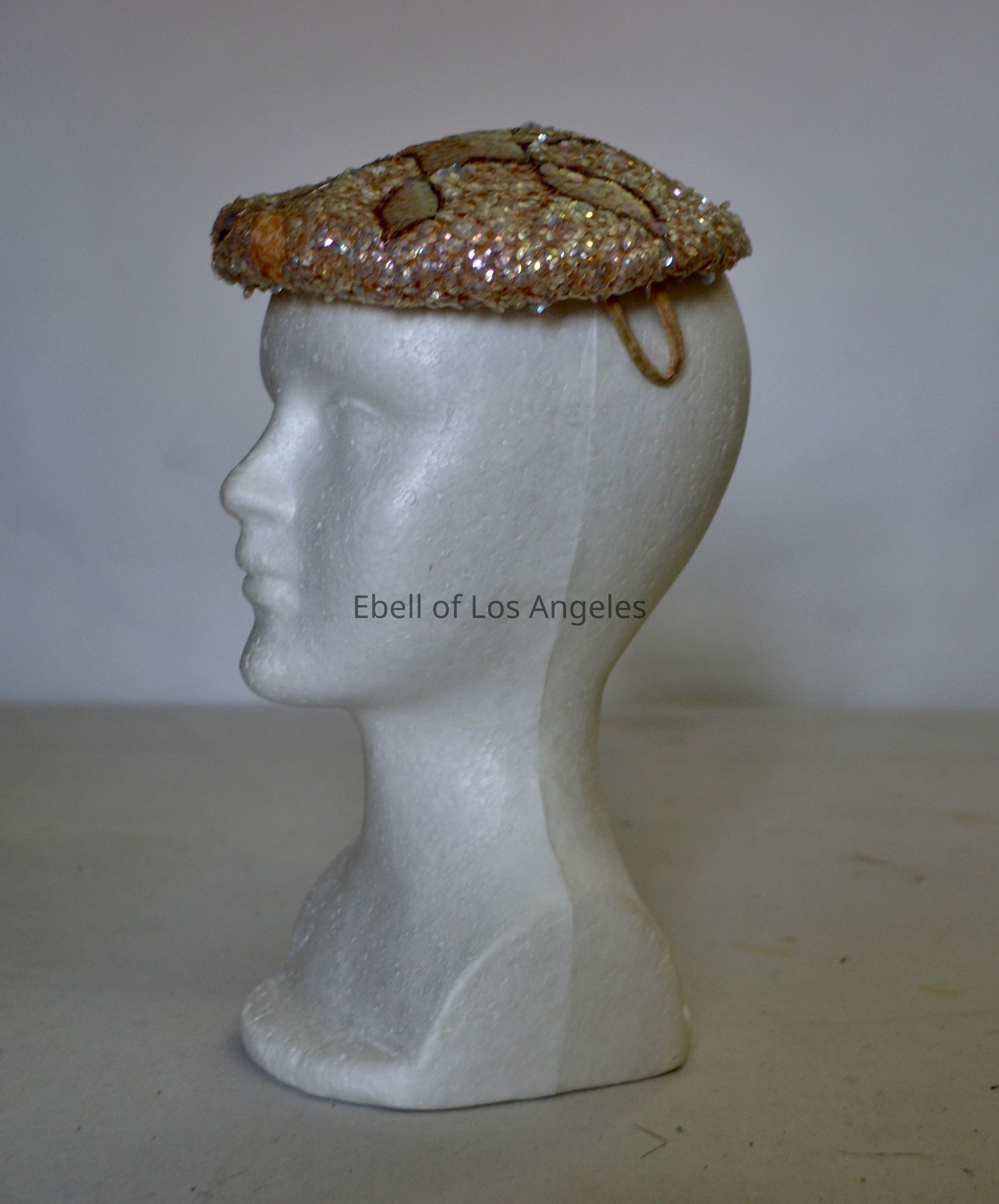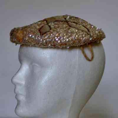 Sequined cocktail hat with star and leaf pattern in large paillettes on crownEntry/Object ID