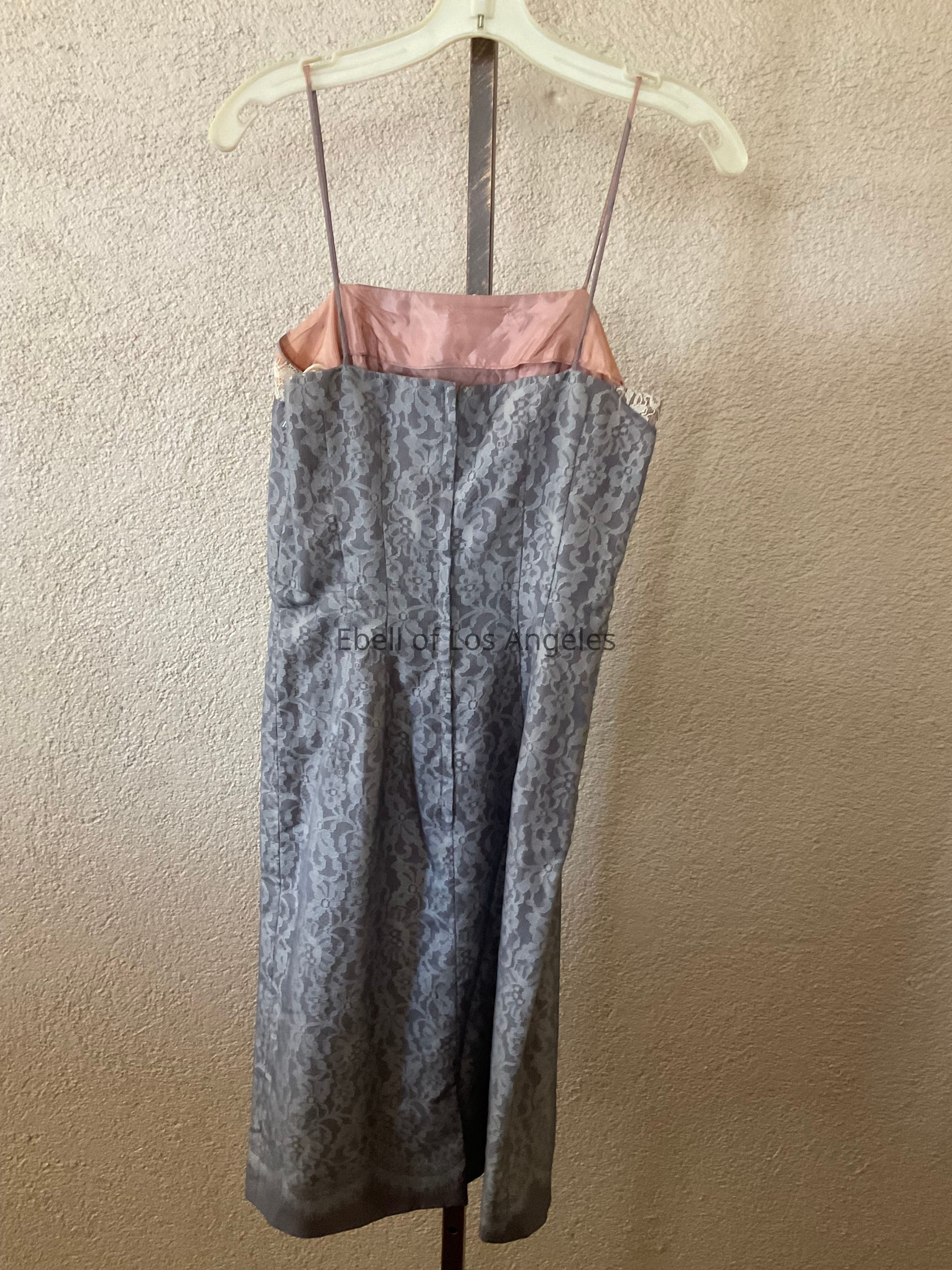 Slip dress with spaghetti strap, contrast lace panel at bodice, chiffon and lace body
