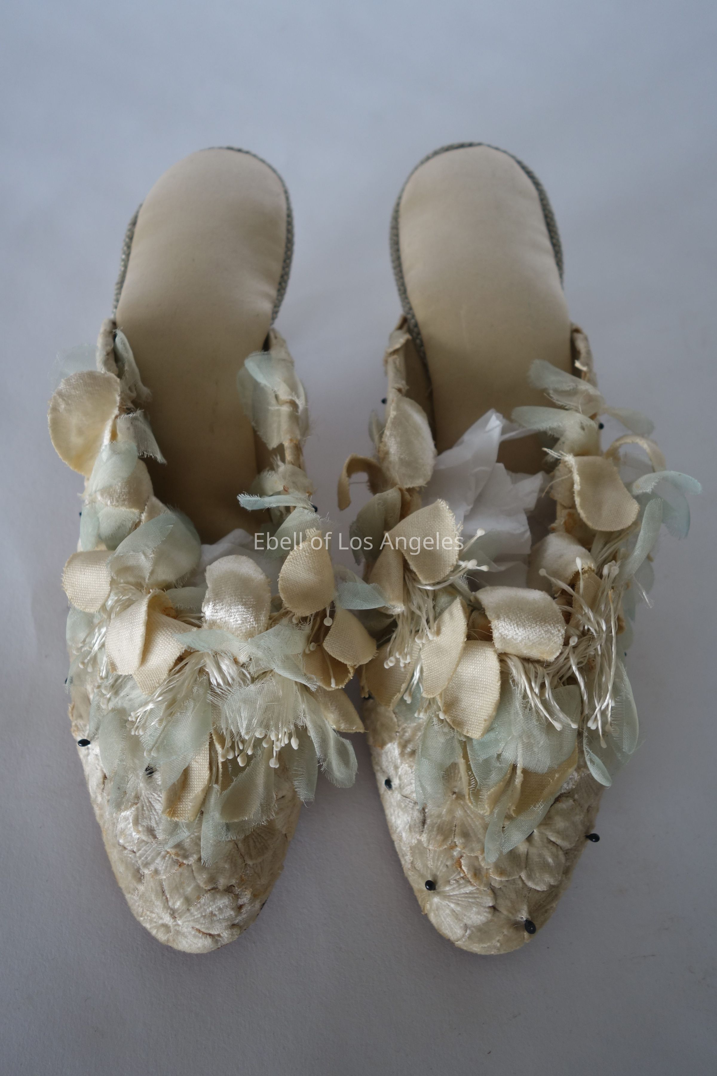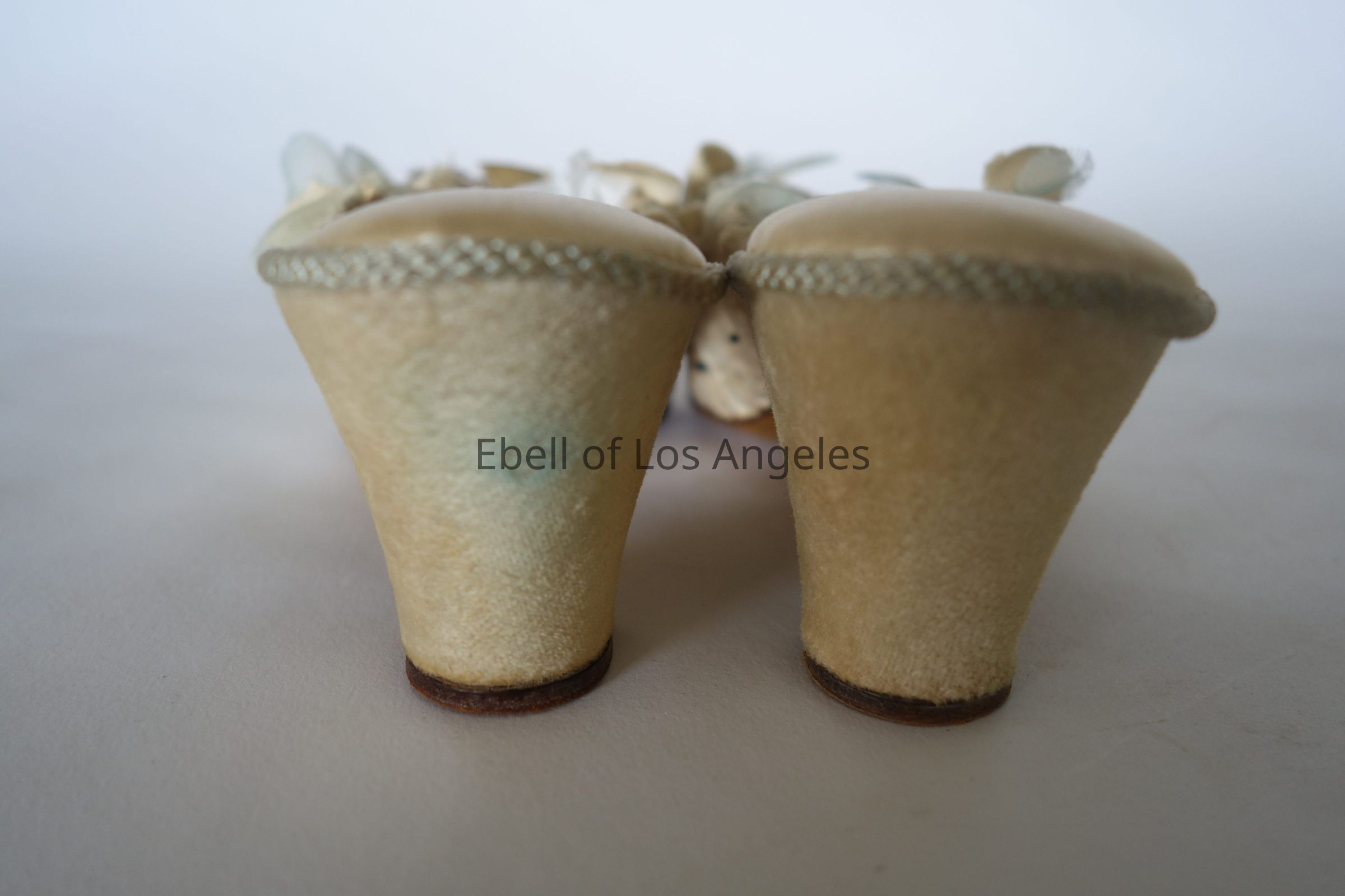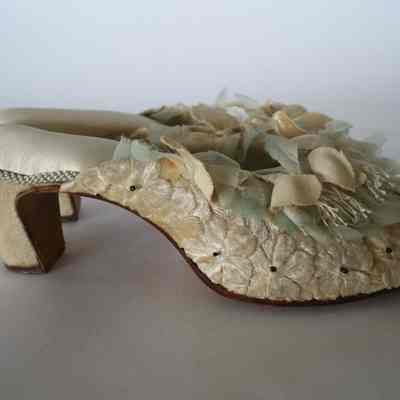 Mule Shoe Covered in Applique Flowers:Cream colored