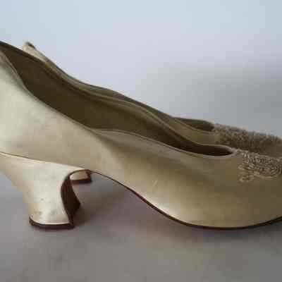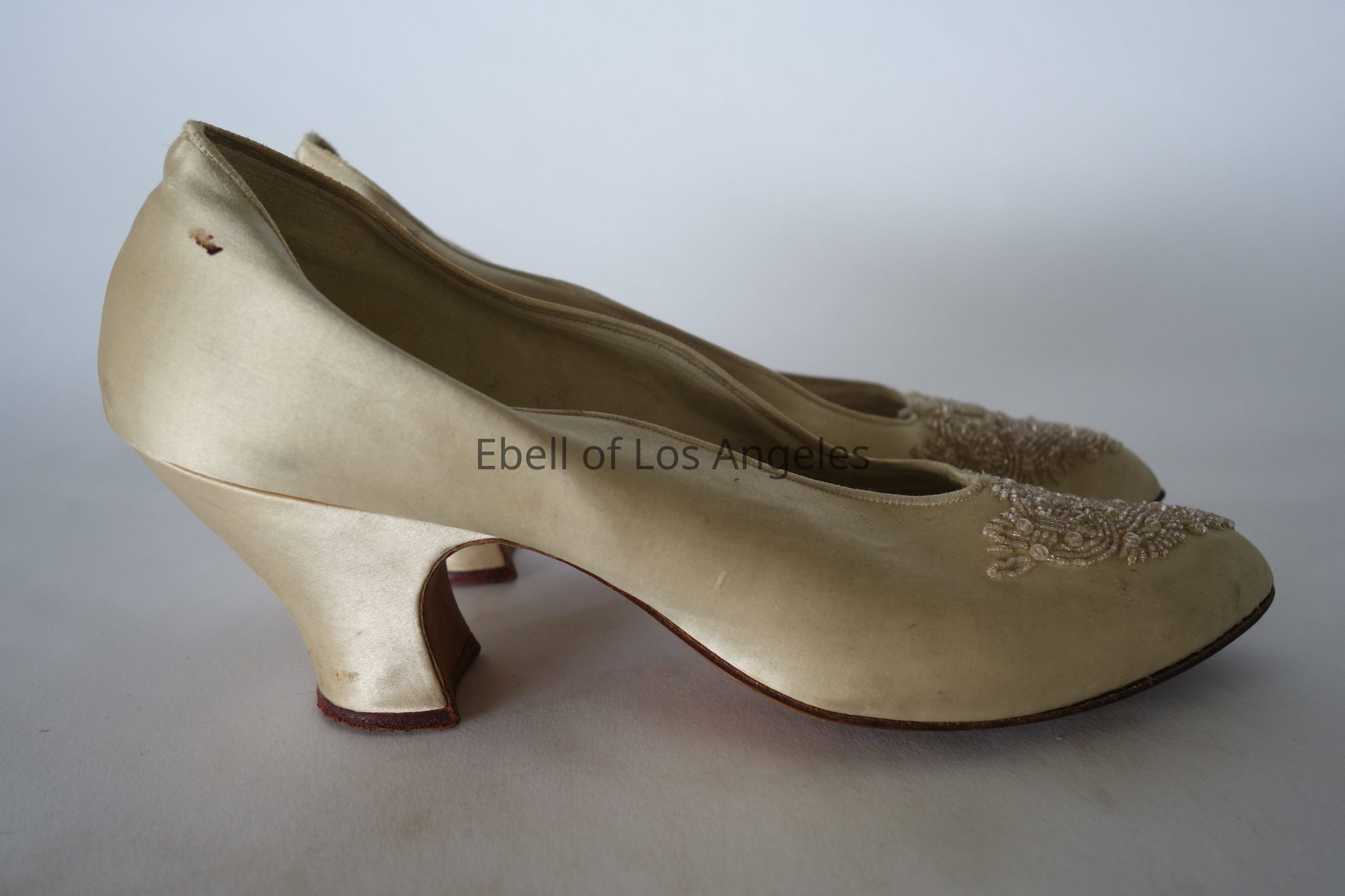 Satin Ivory Pump Heel with Beading on Toe