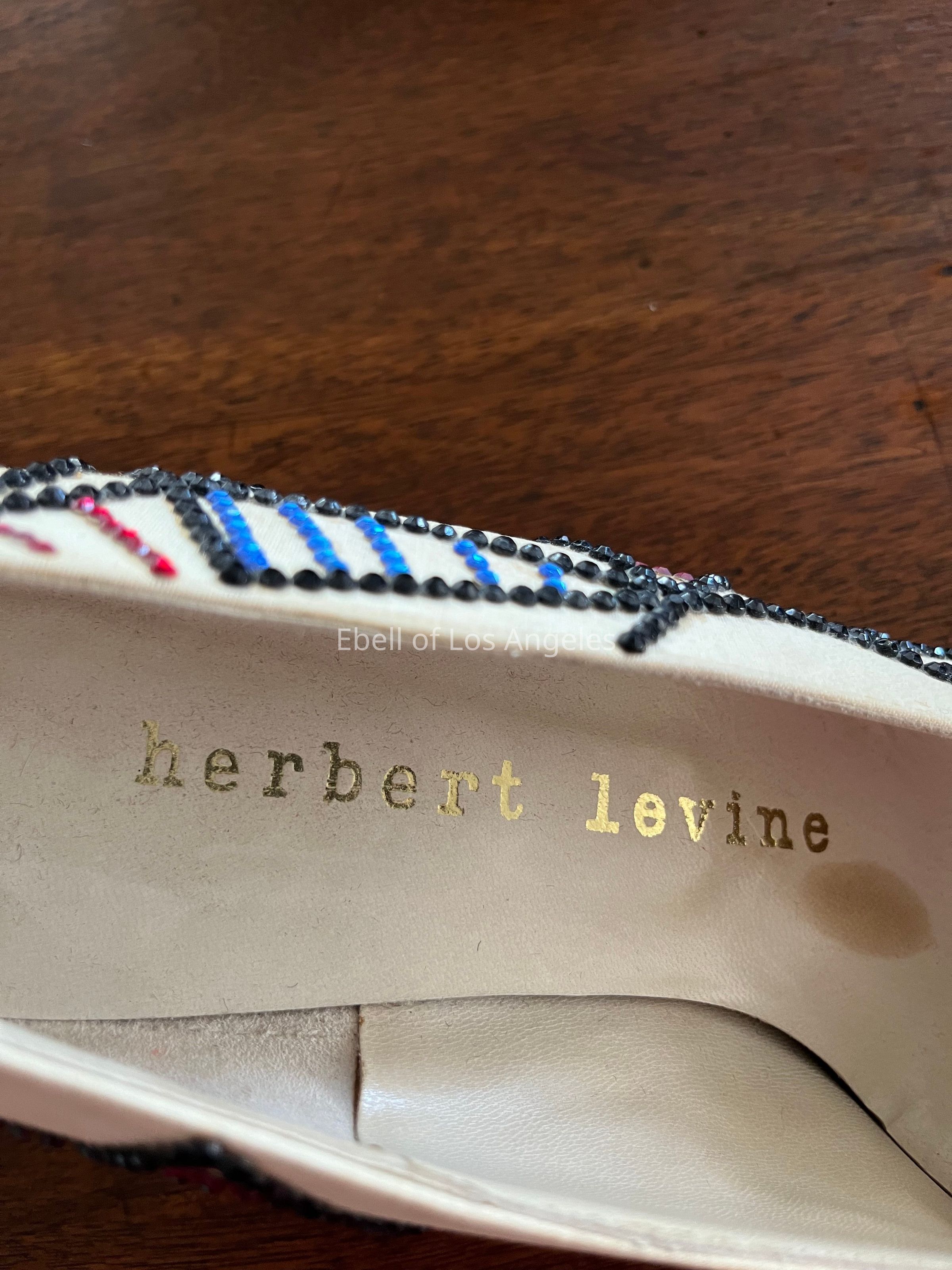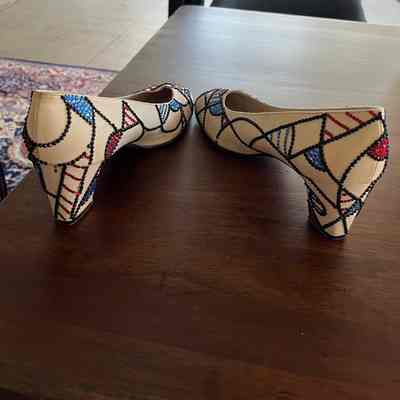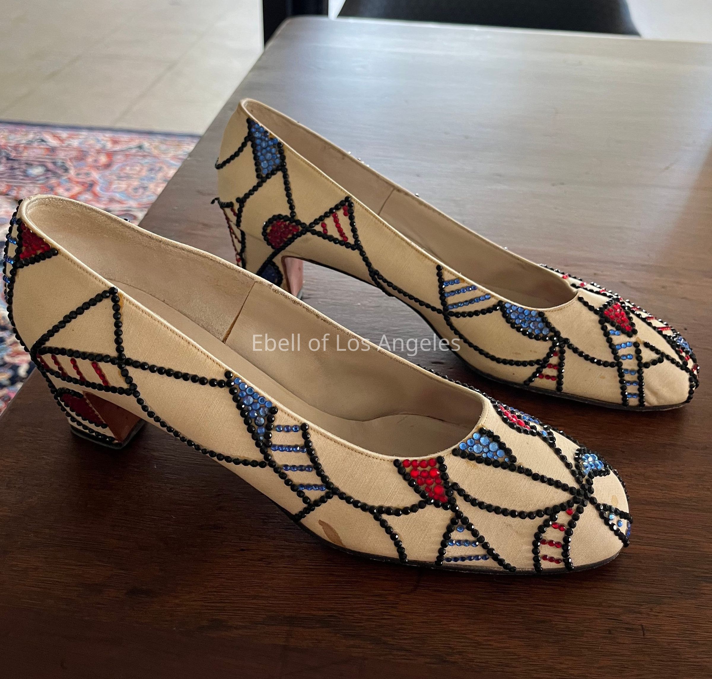 White Silk Pumps with Red, Black + Blue Rhinestones/CrystalsEntry/Object ID