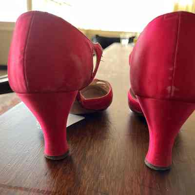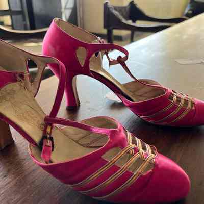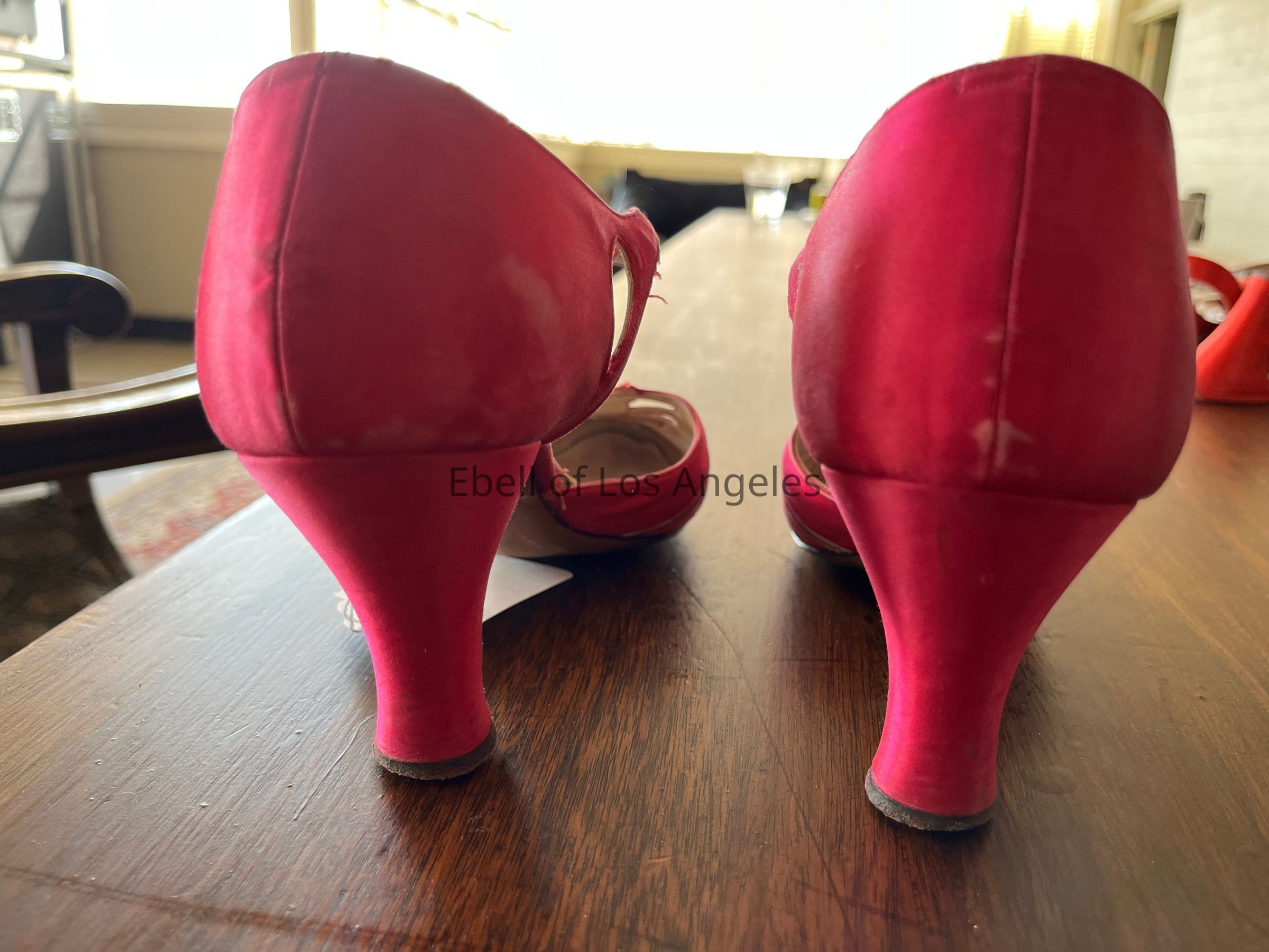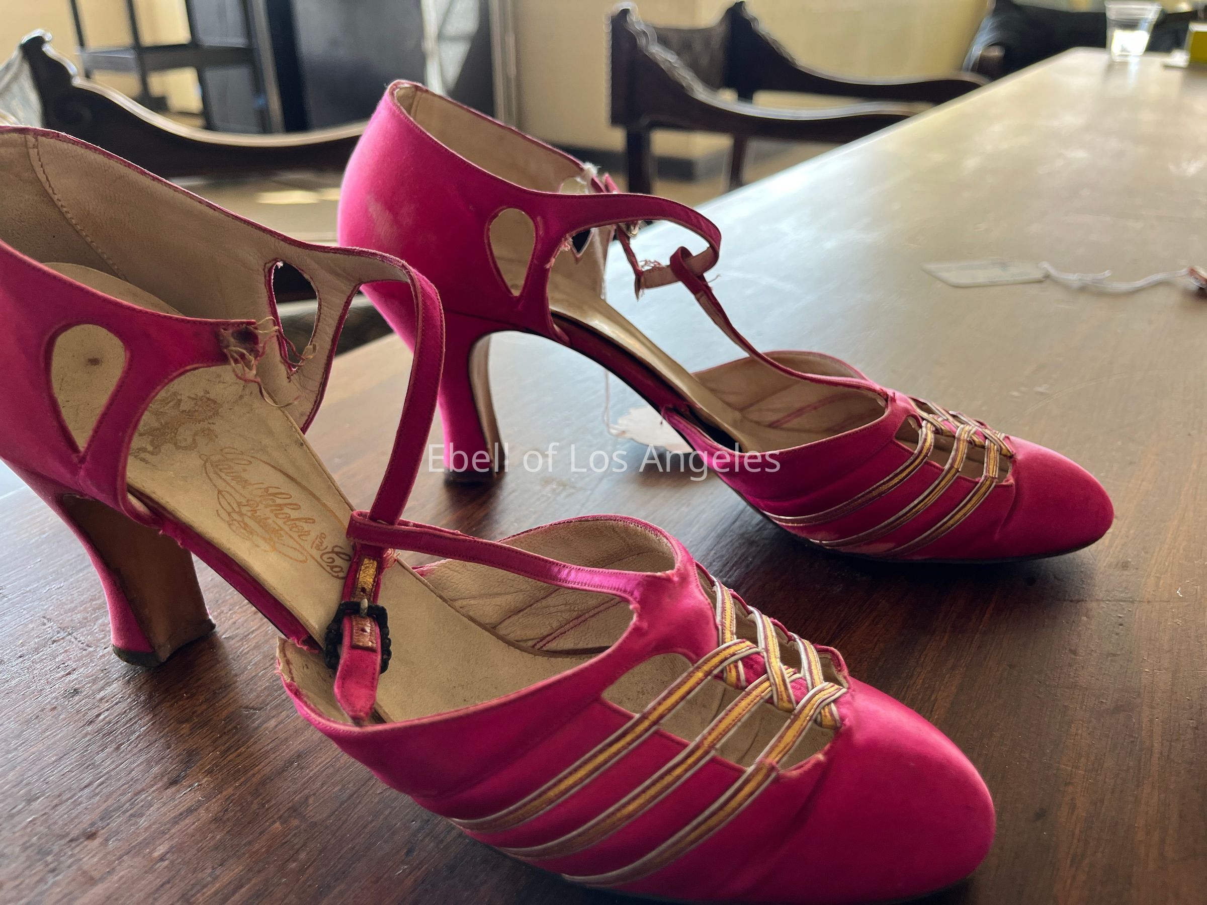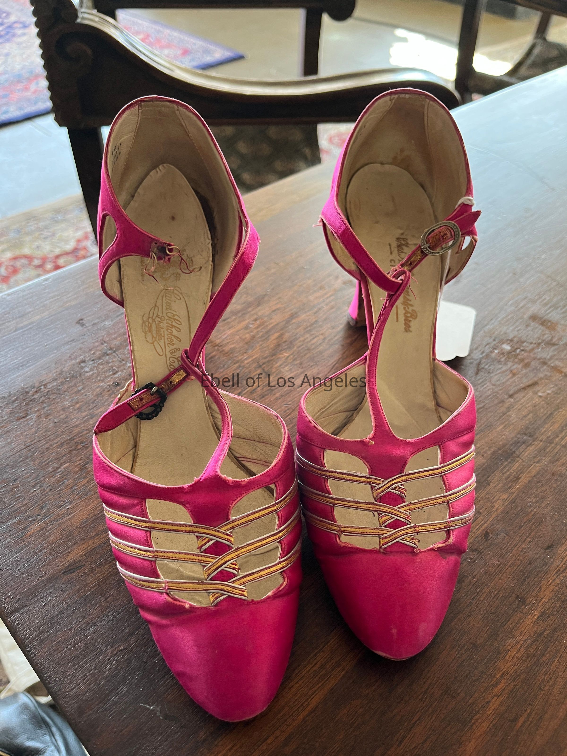 Satin T-Strap Heel with Cutouts at Toe: Shocking Pink