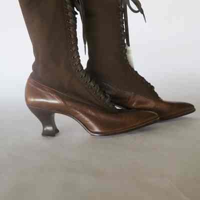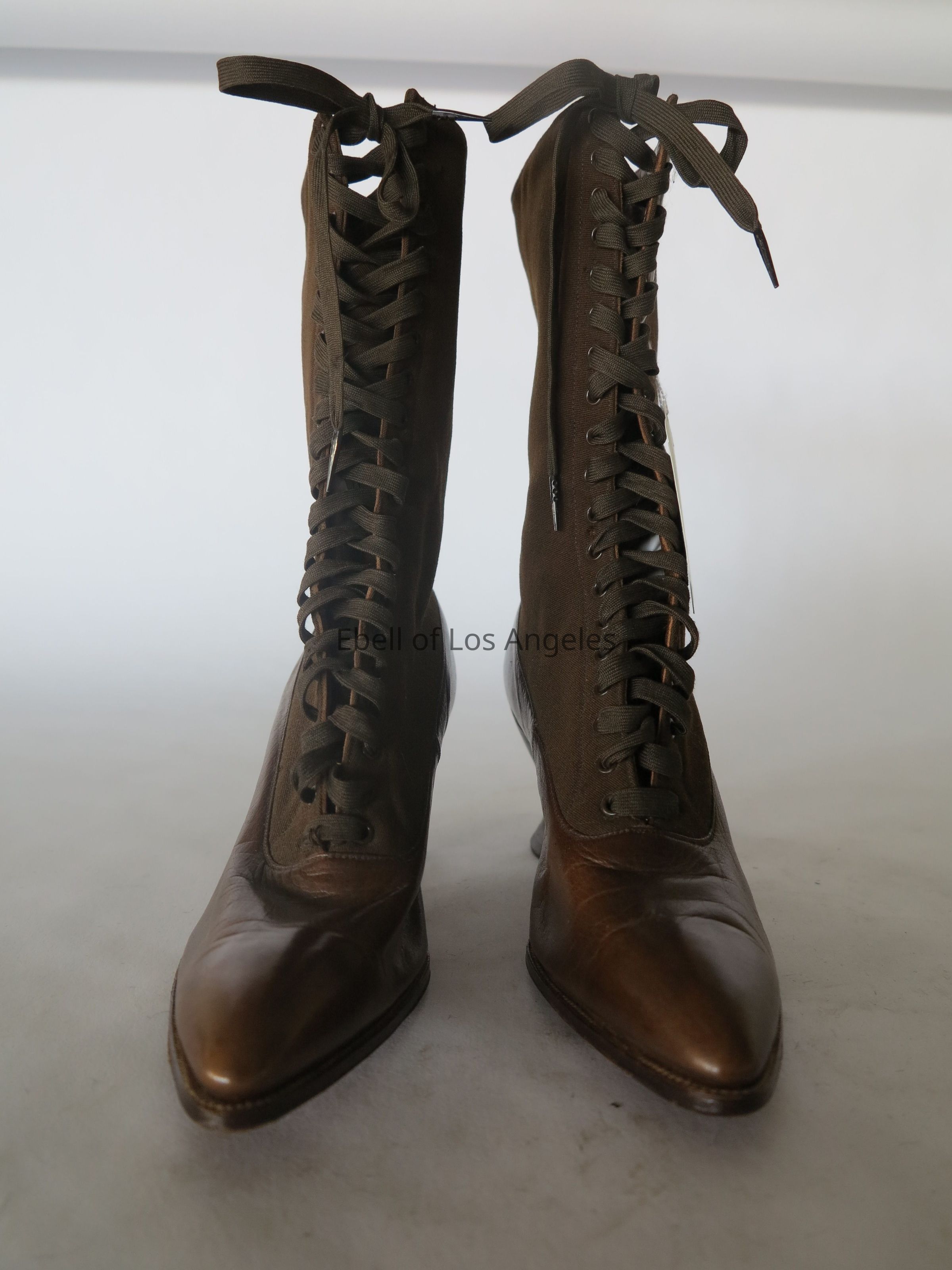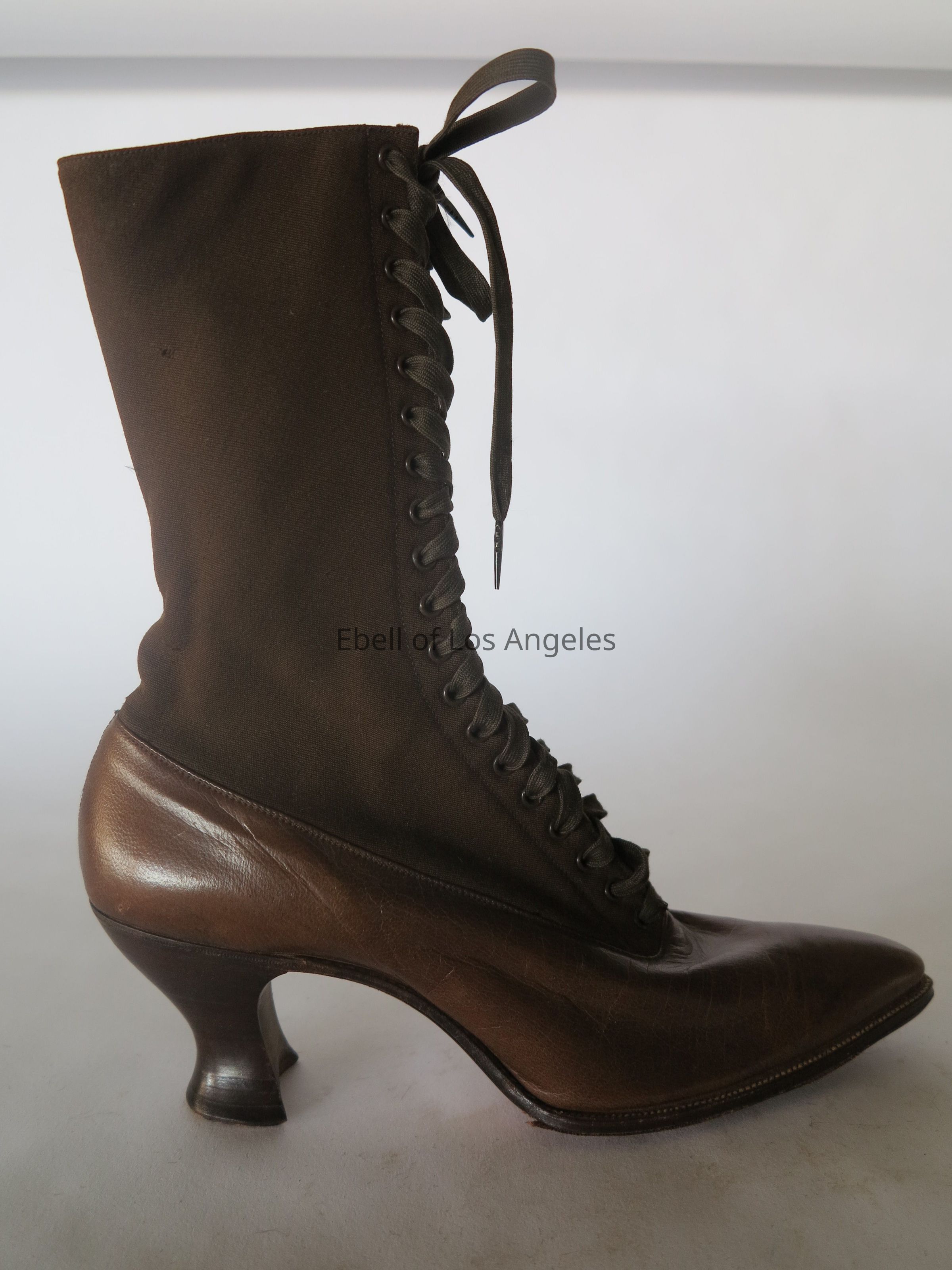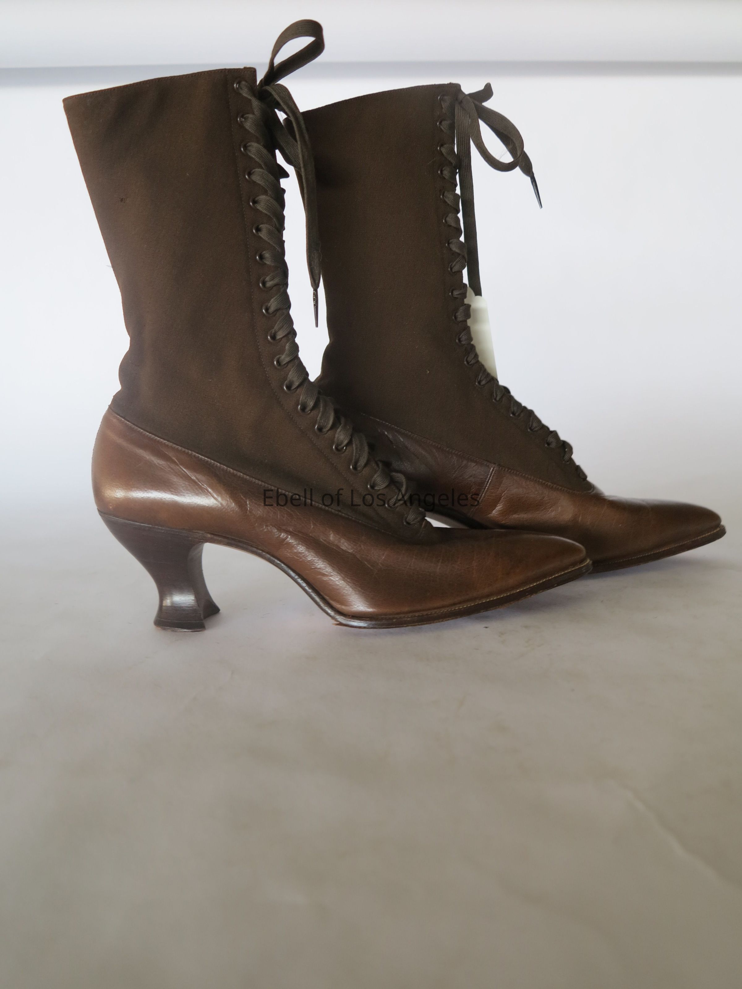 Boots: Brown Wool Upper/Leather Lower Lace-up HeeledEntry/Object ID