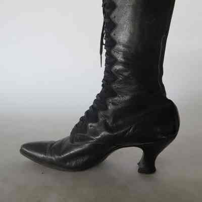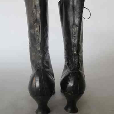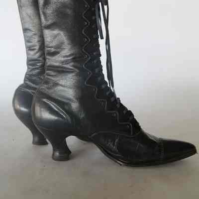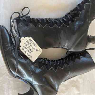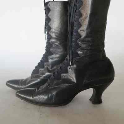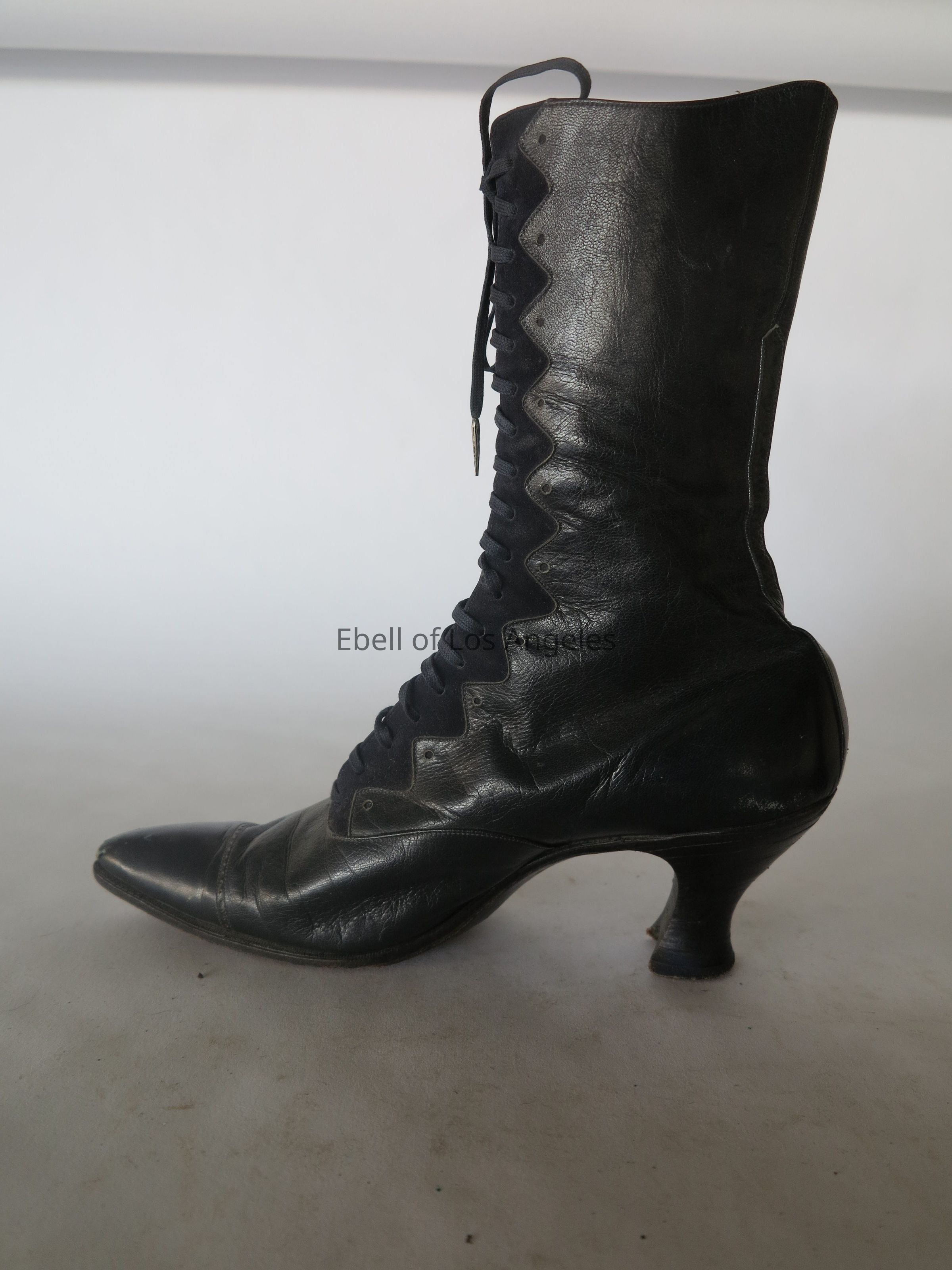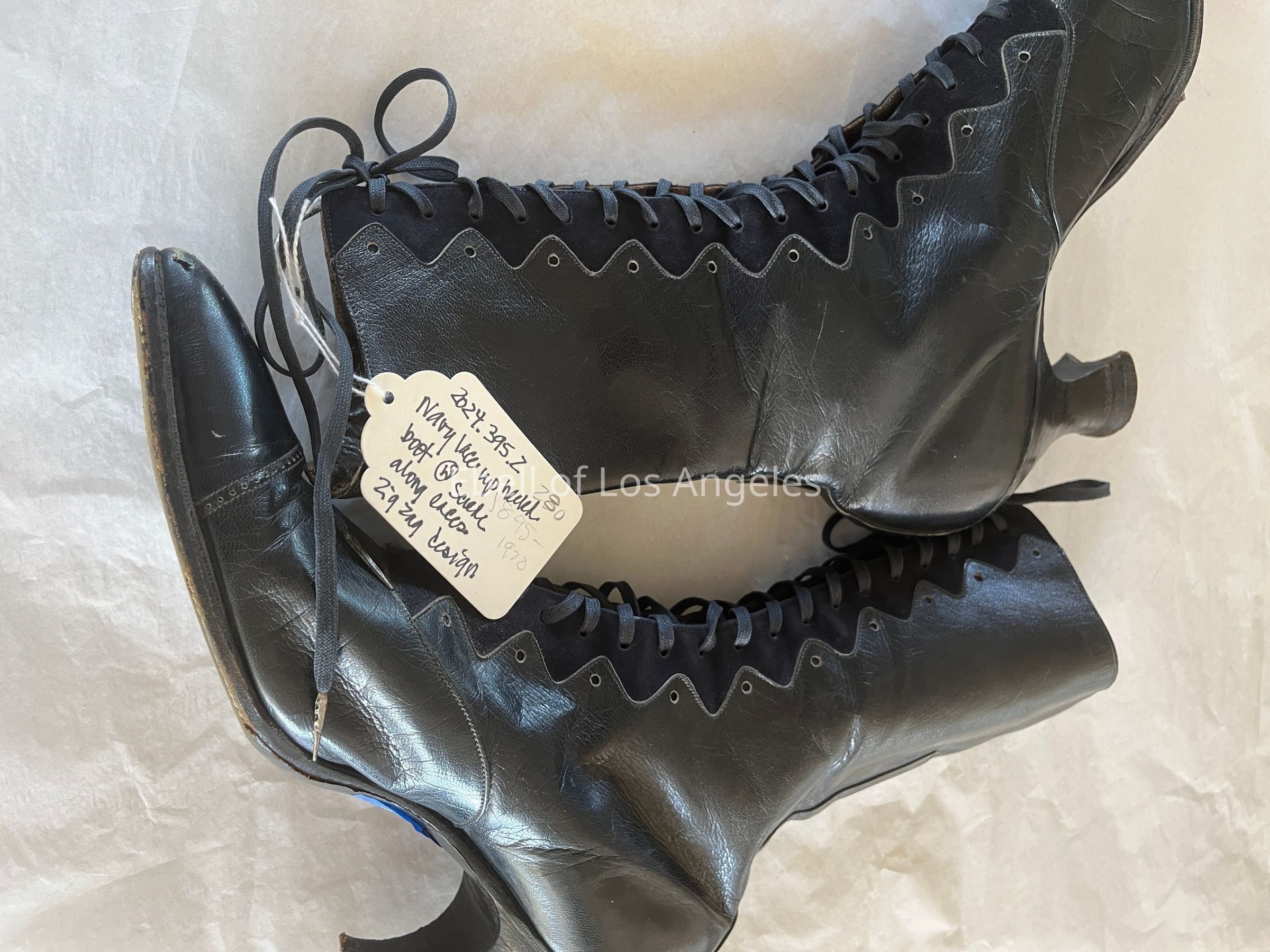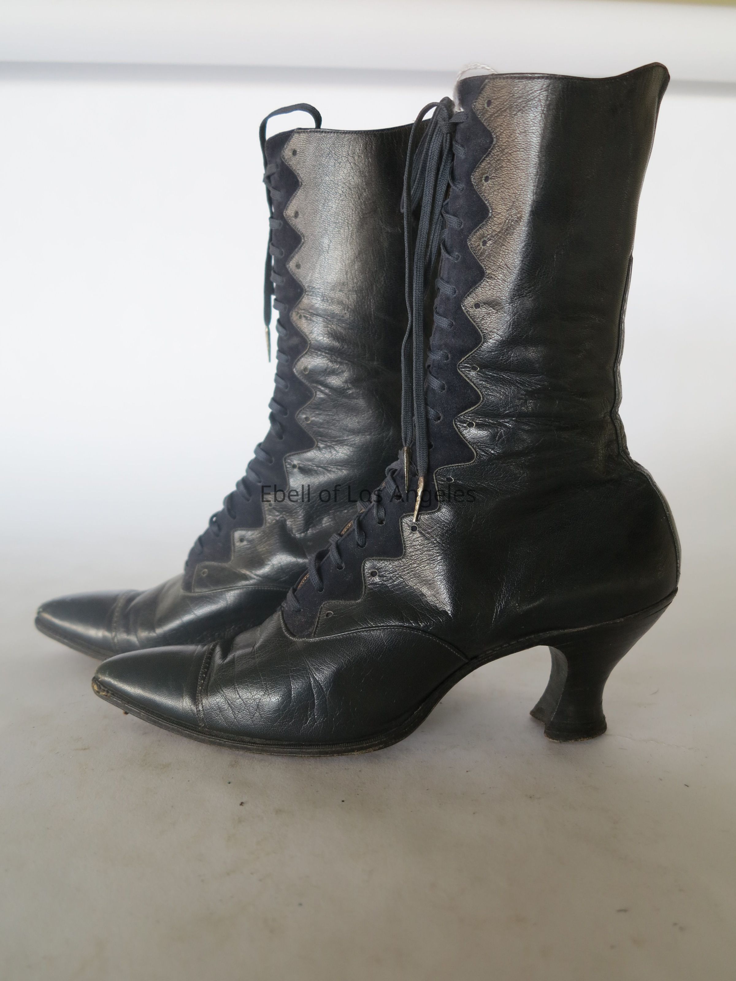 Boots: Navy Leather/ with Suede Detailing Cap Toe Lace up Heeled