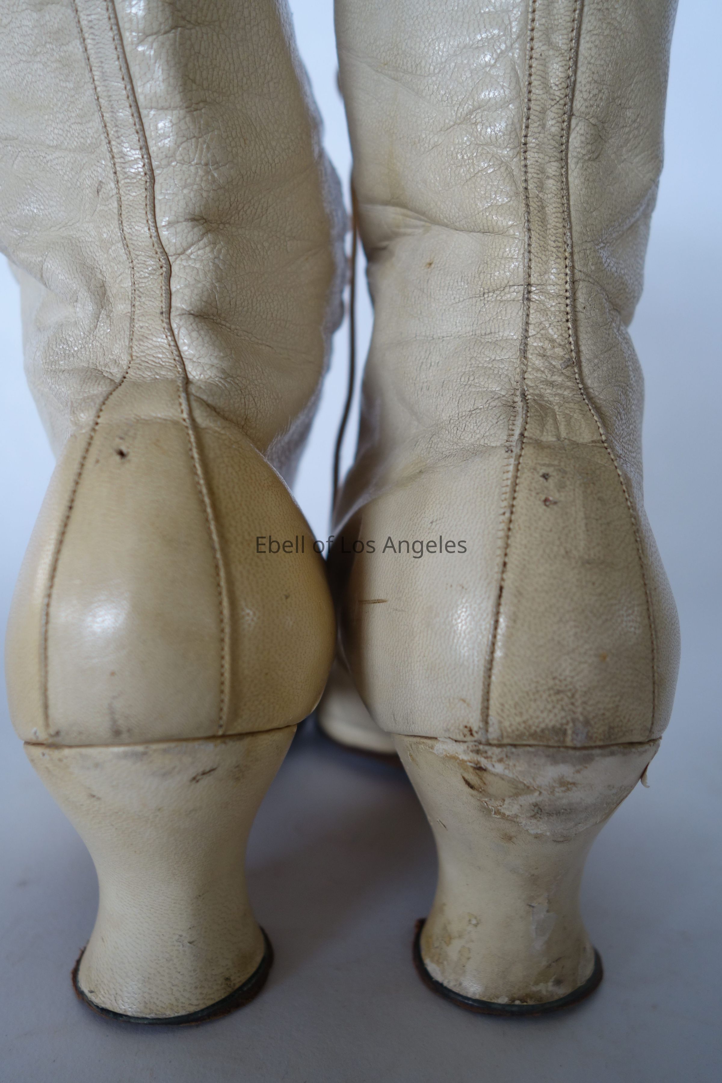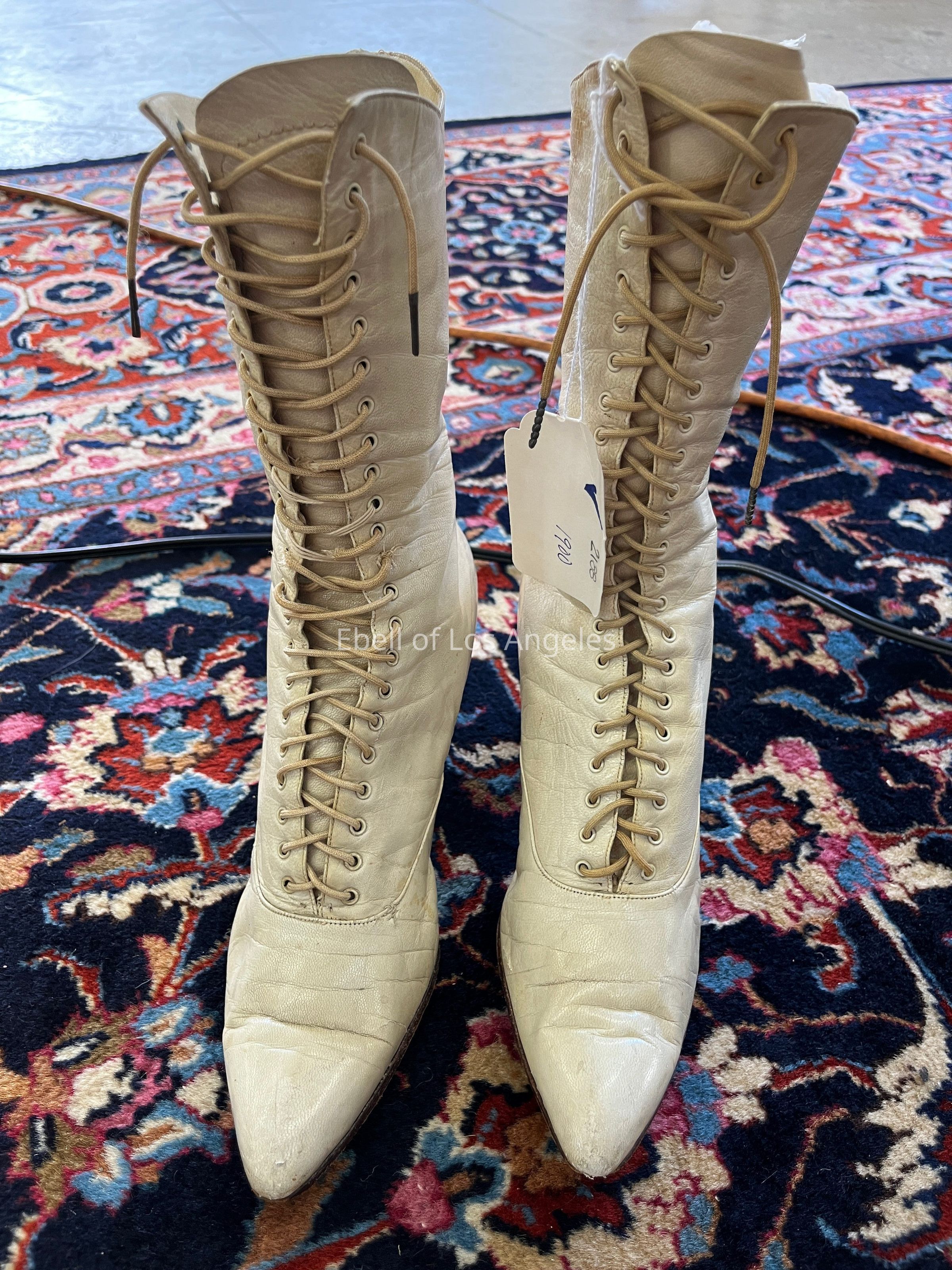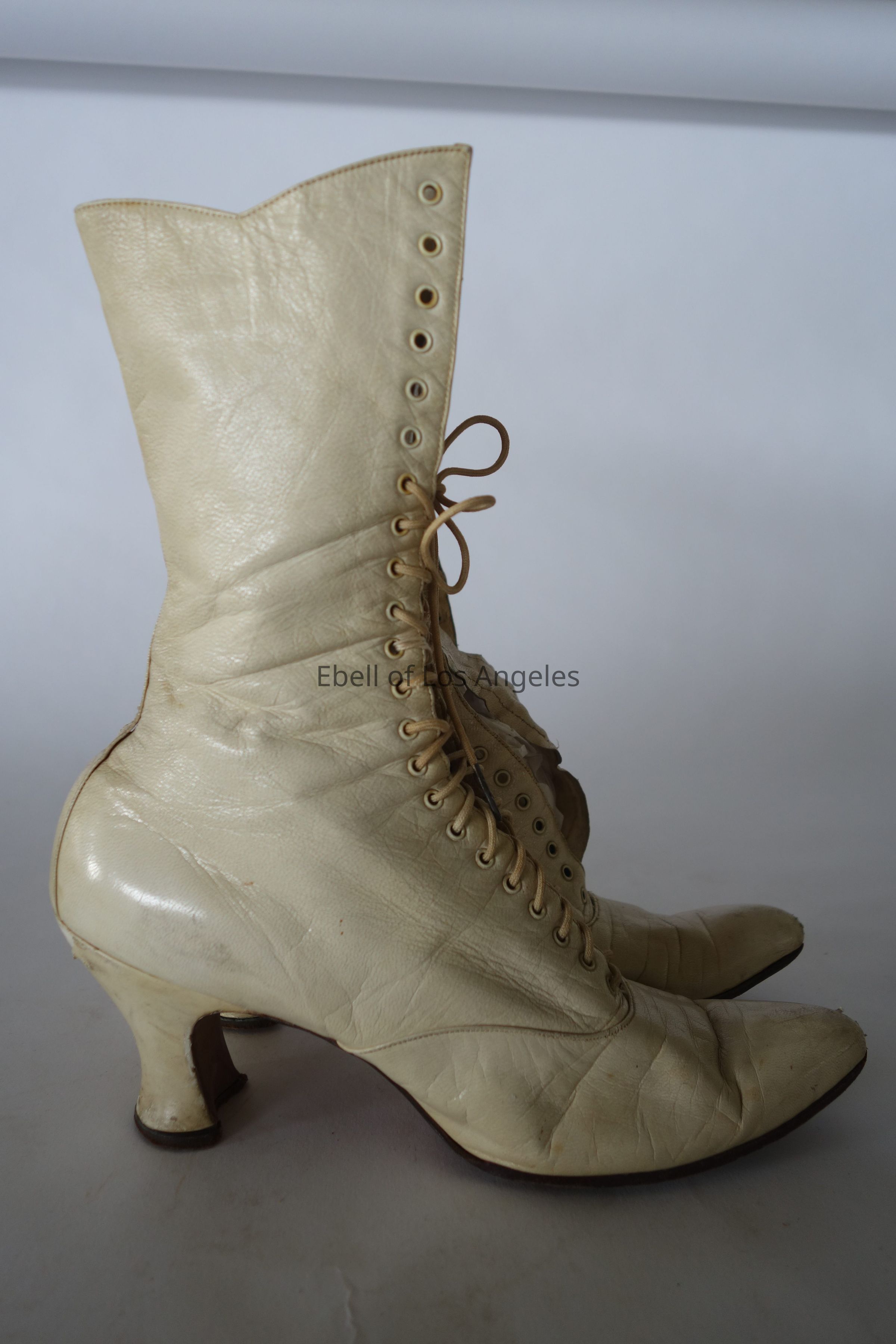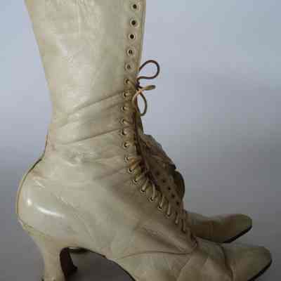 Lace Up Boots: off white, calf height, Louis heelEntry/Object ID