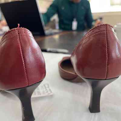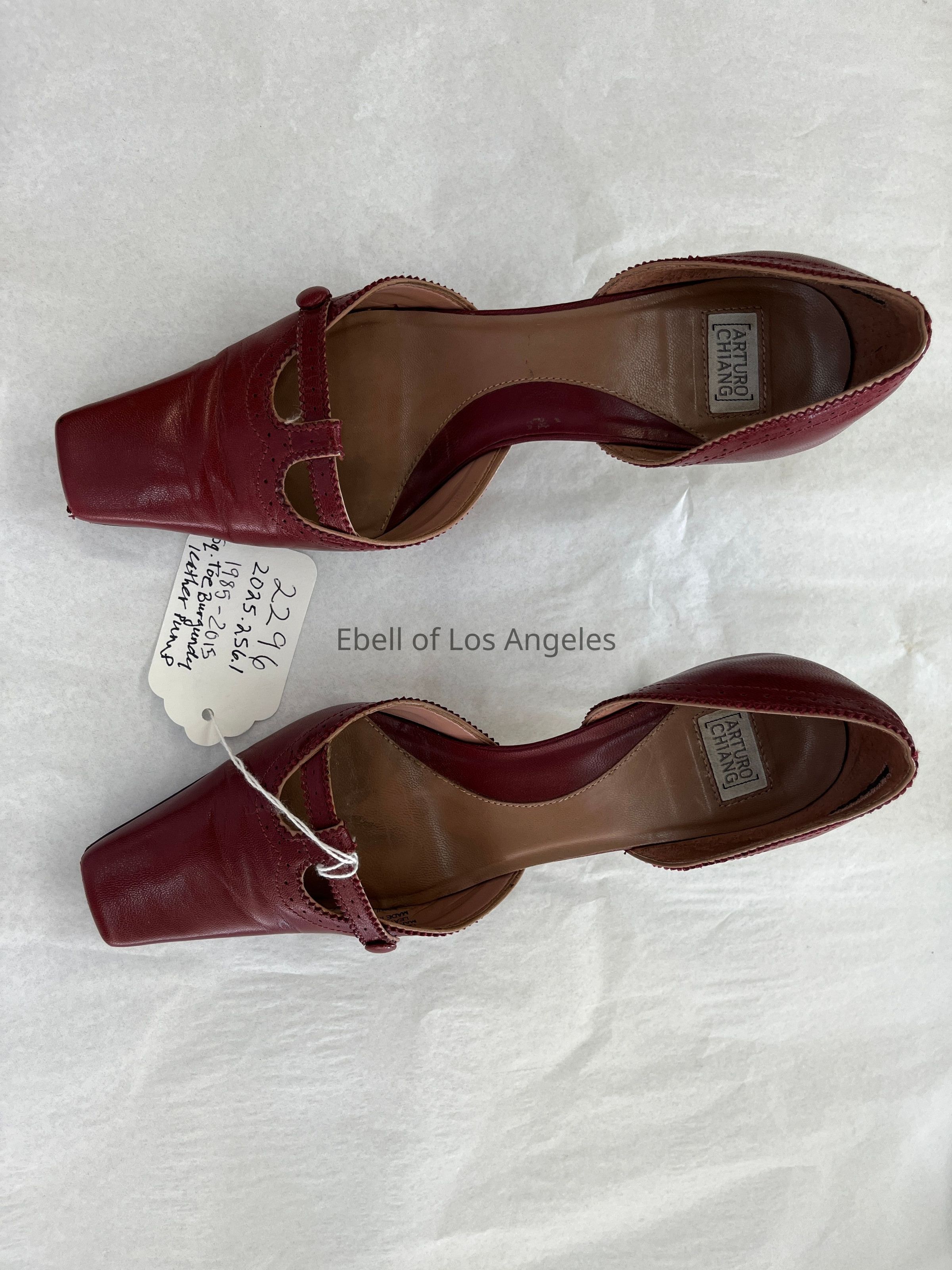Square Toe Burgundy Leather Pump with Pinking on EdgesEntry/Object ID