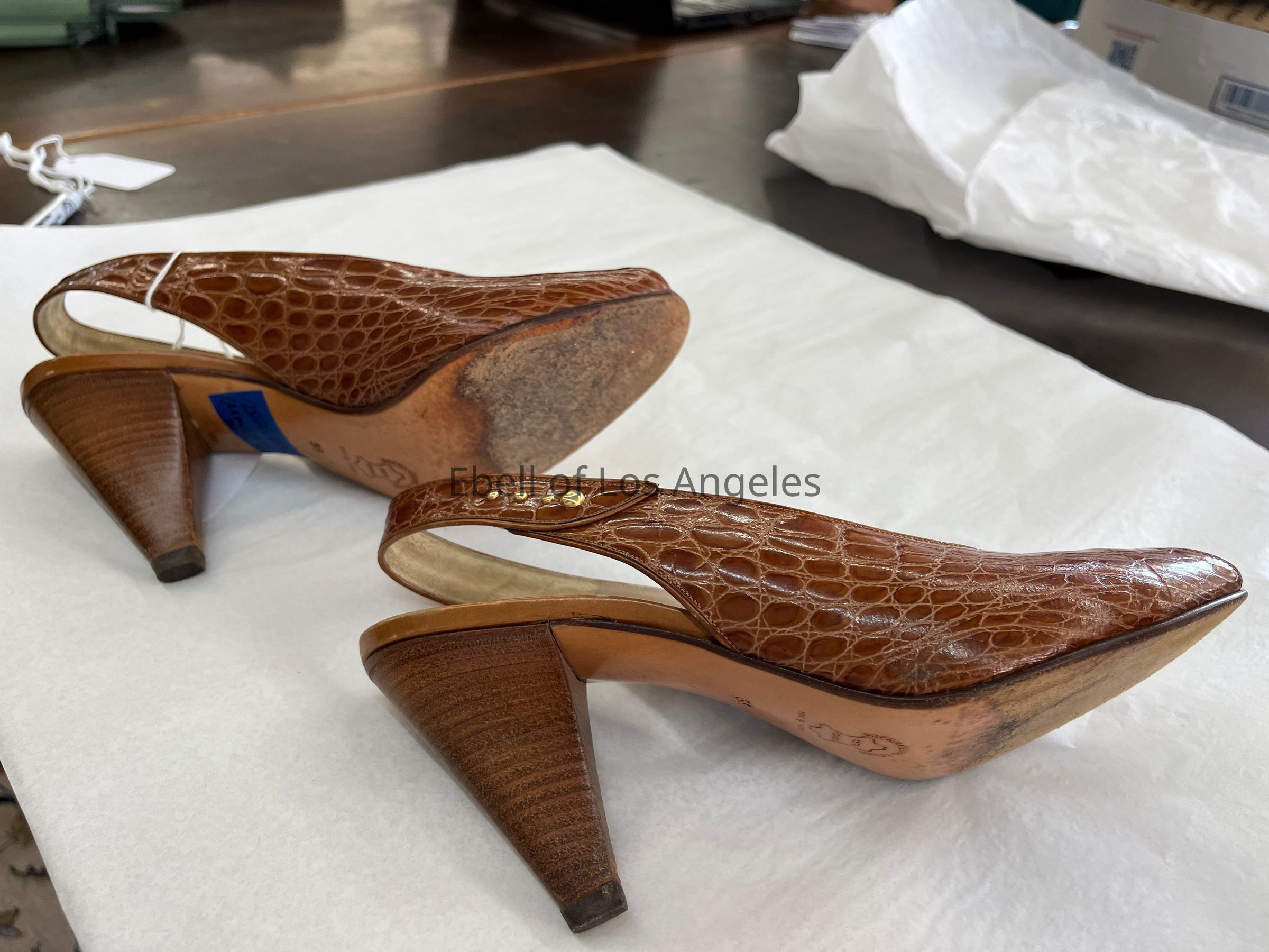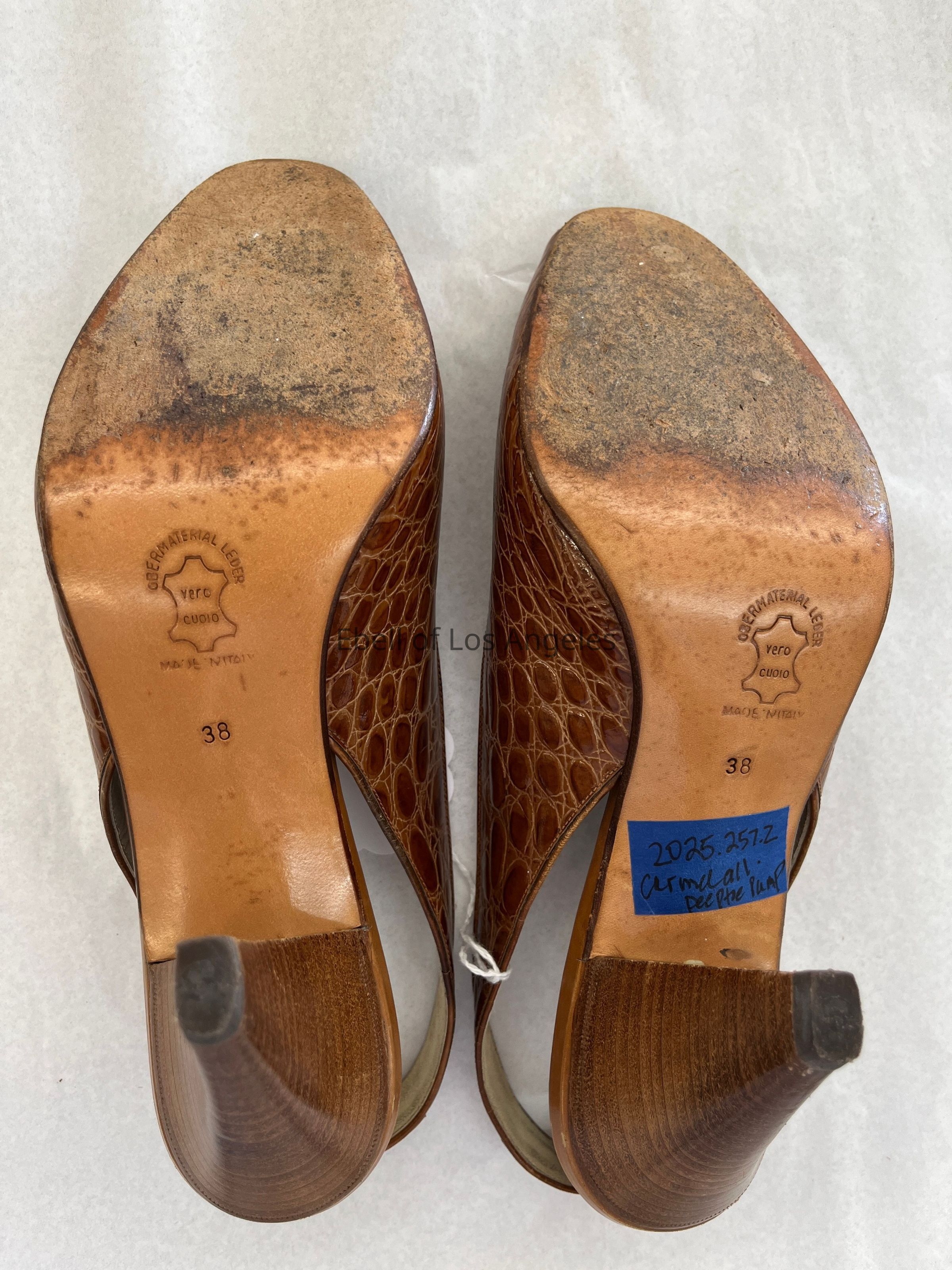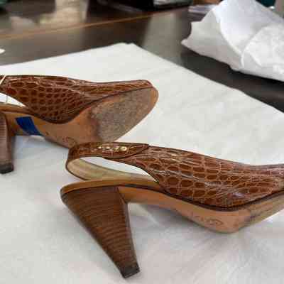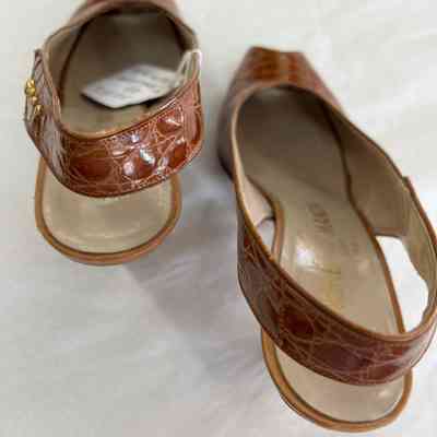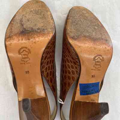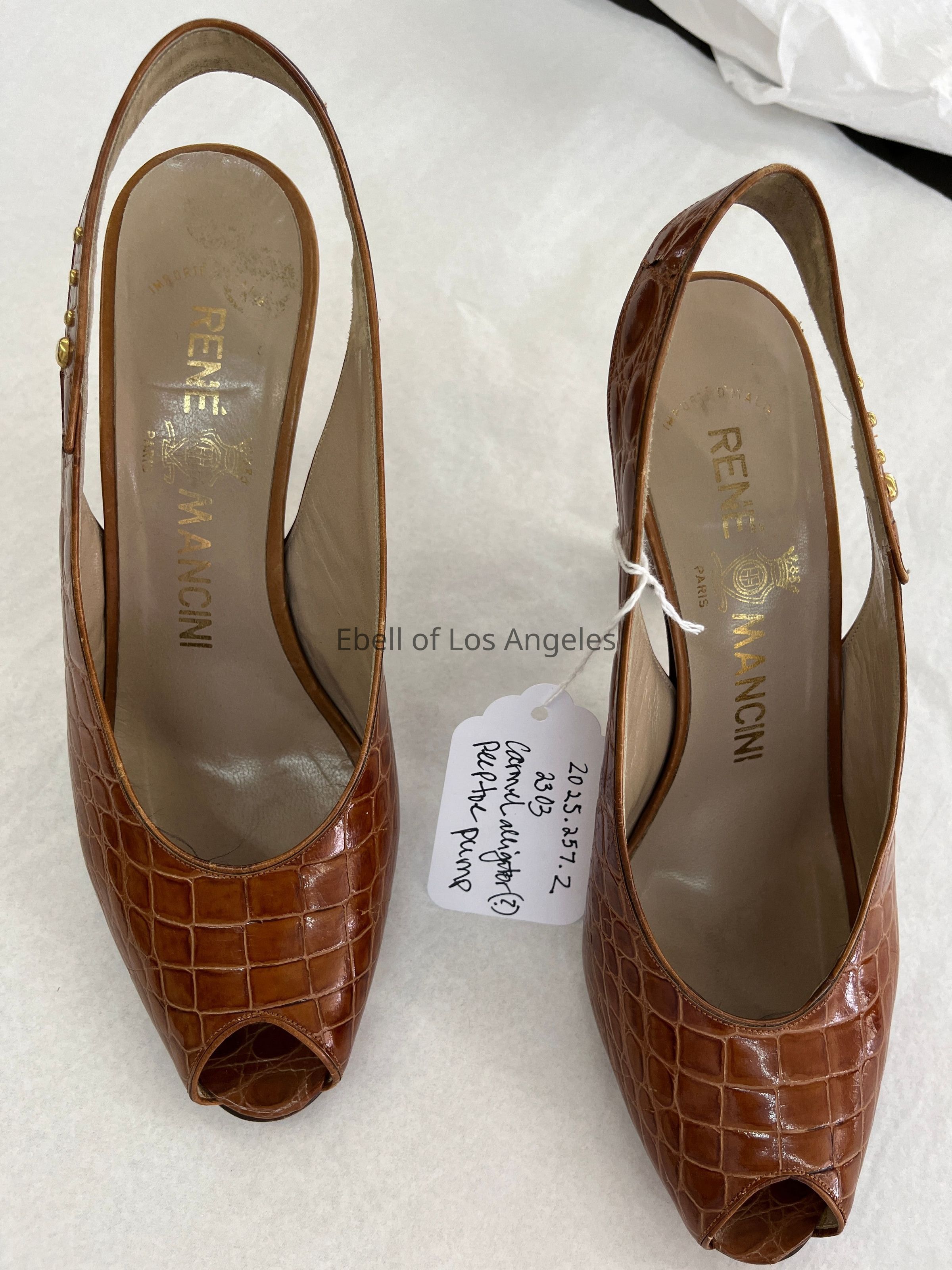 Alligator Sling Back Peep Toe Camel PumpCollection