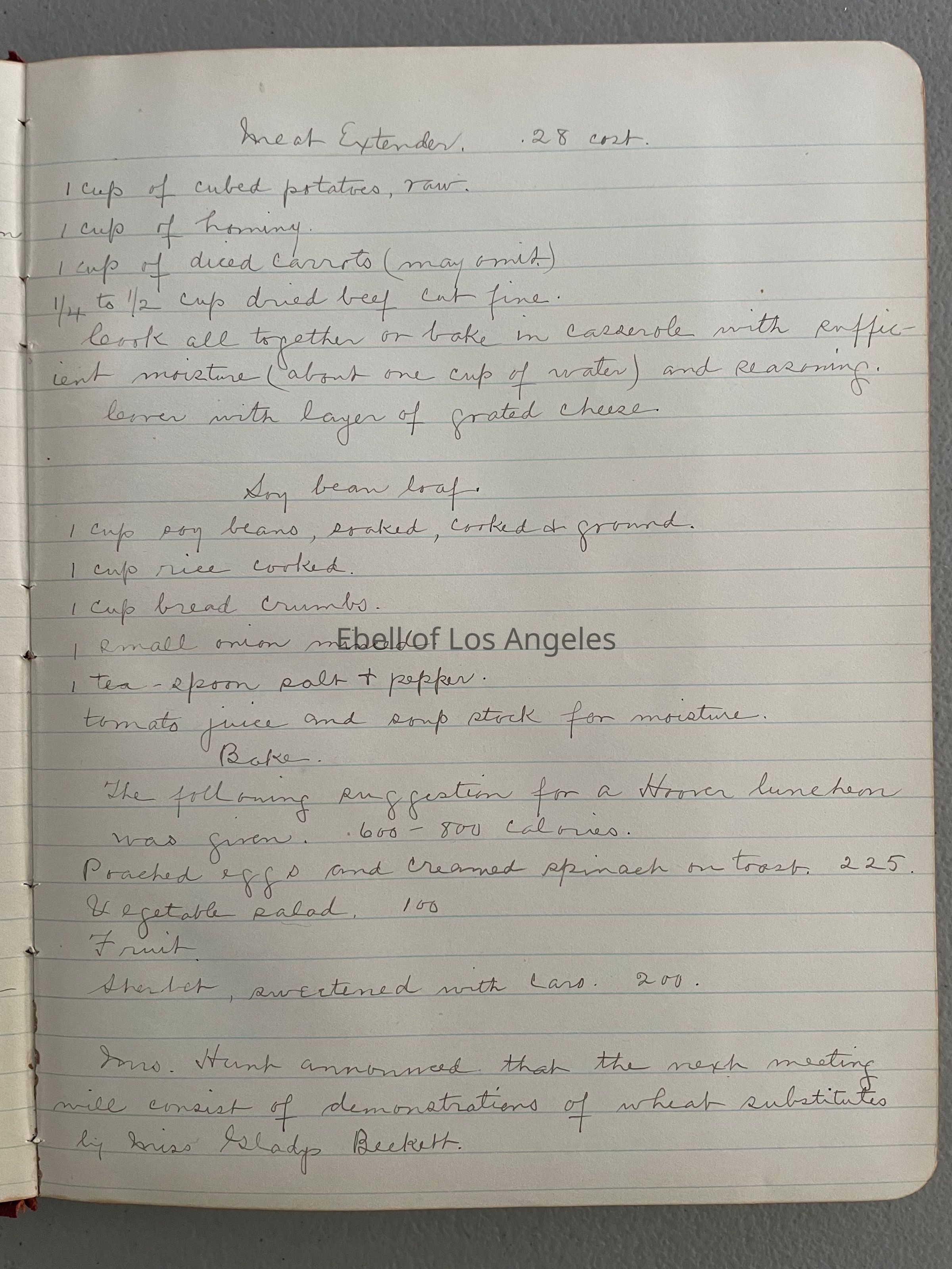 War Economics. Meeting minutes. 1 book. Includes recipe listsDate(s) of Creation