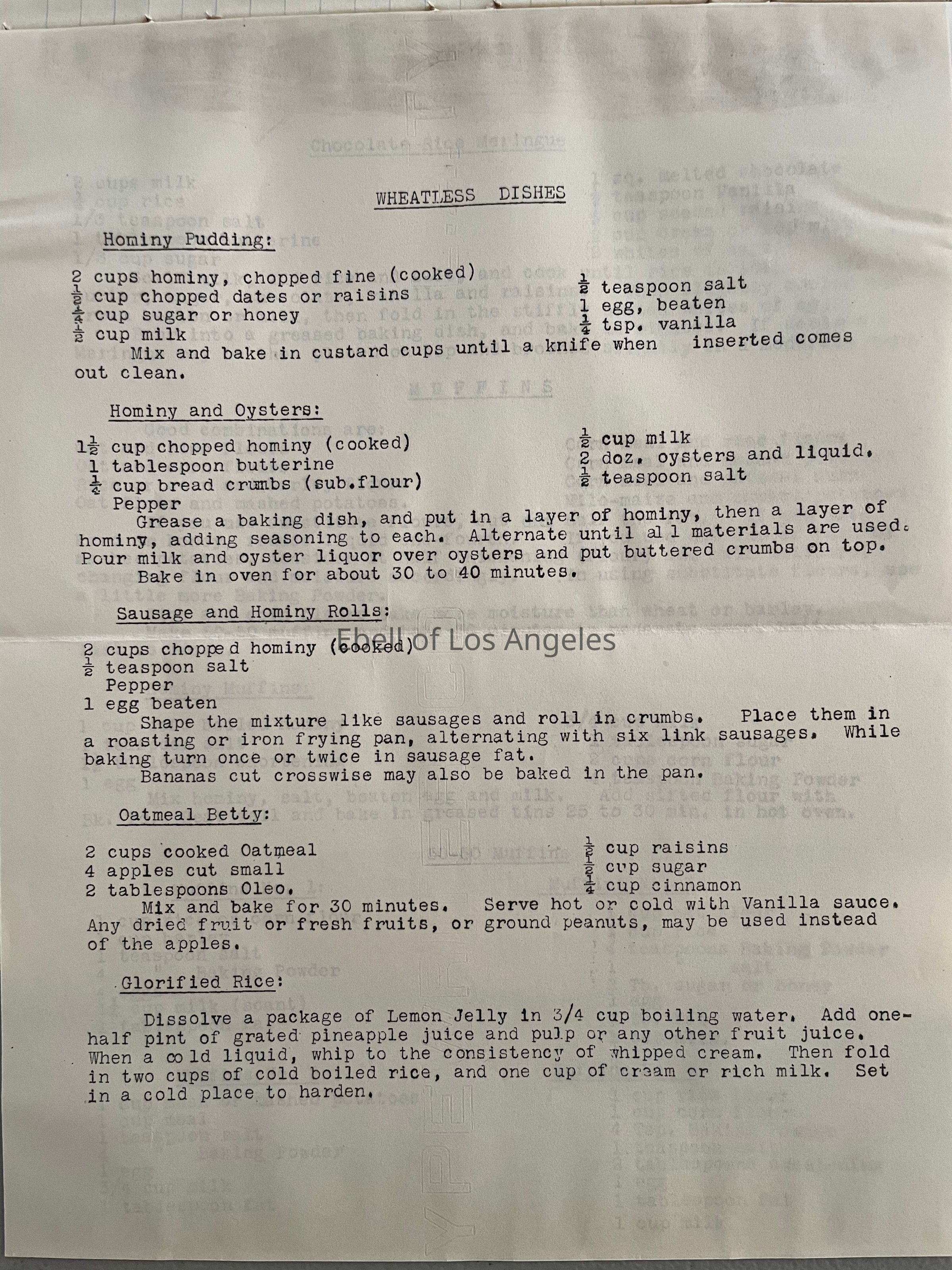 Meeting minutes from the War Economics department from 1918. Includes recipes.Context