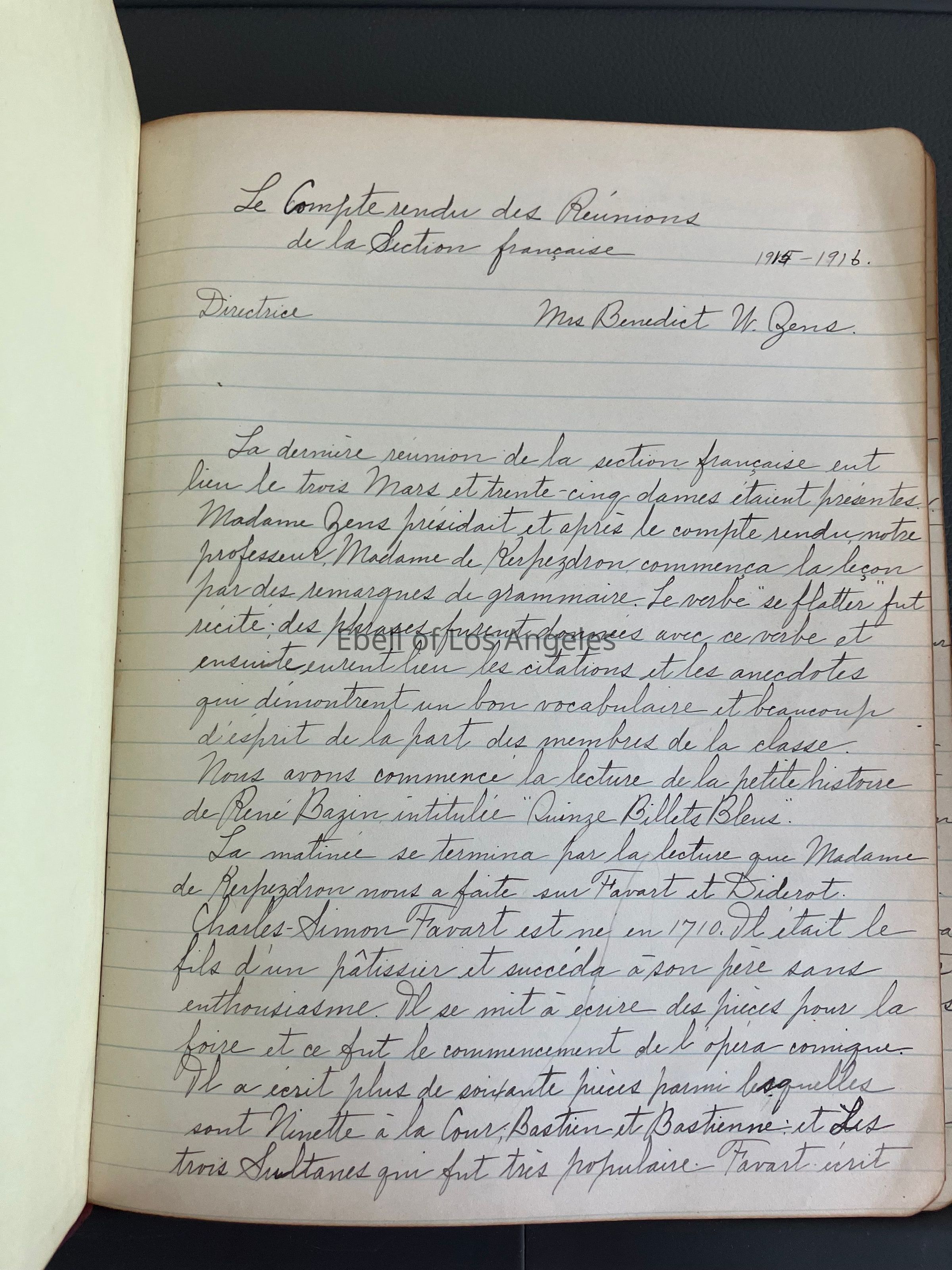 French. Meeting minutes. 1 bookDate(s) of Creation