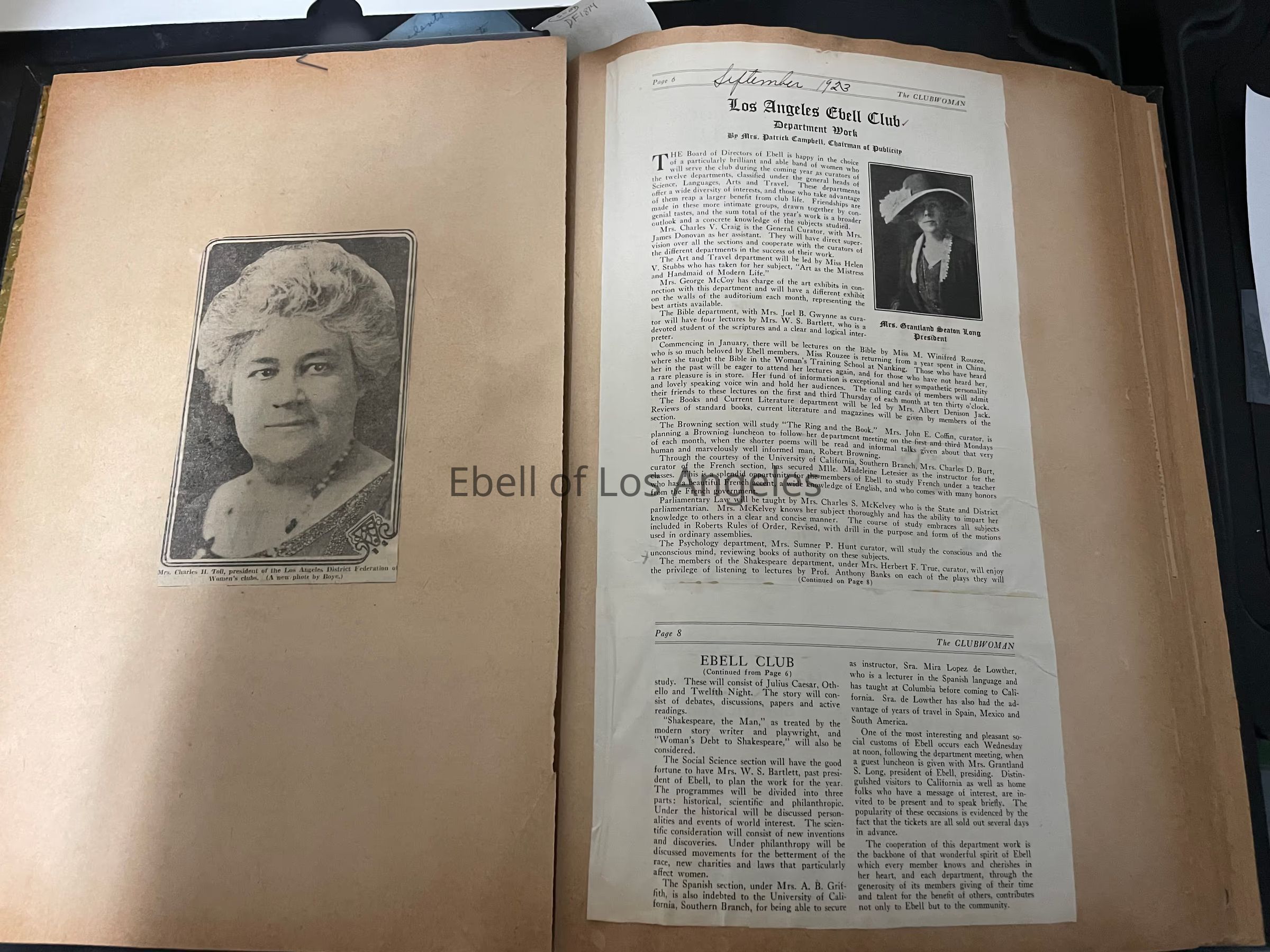 A scrapbook of newspaper clippings regarding the Ebell of Los Angeles and its members. The contents of the scrapbook cover the years 1923 to 1923.
