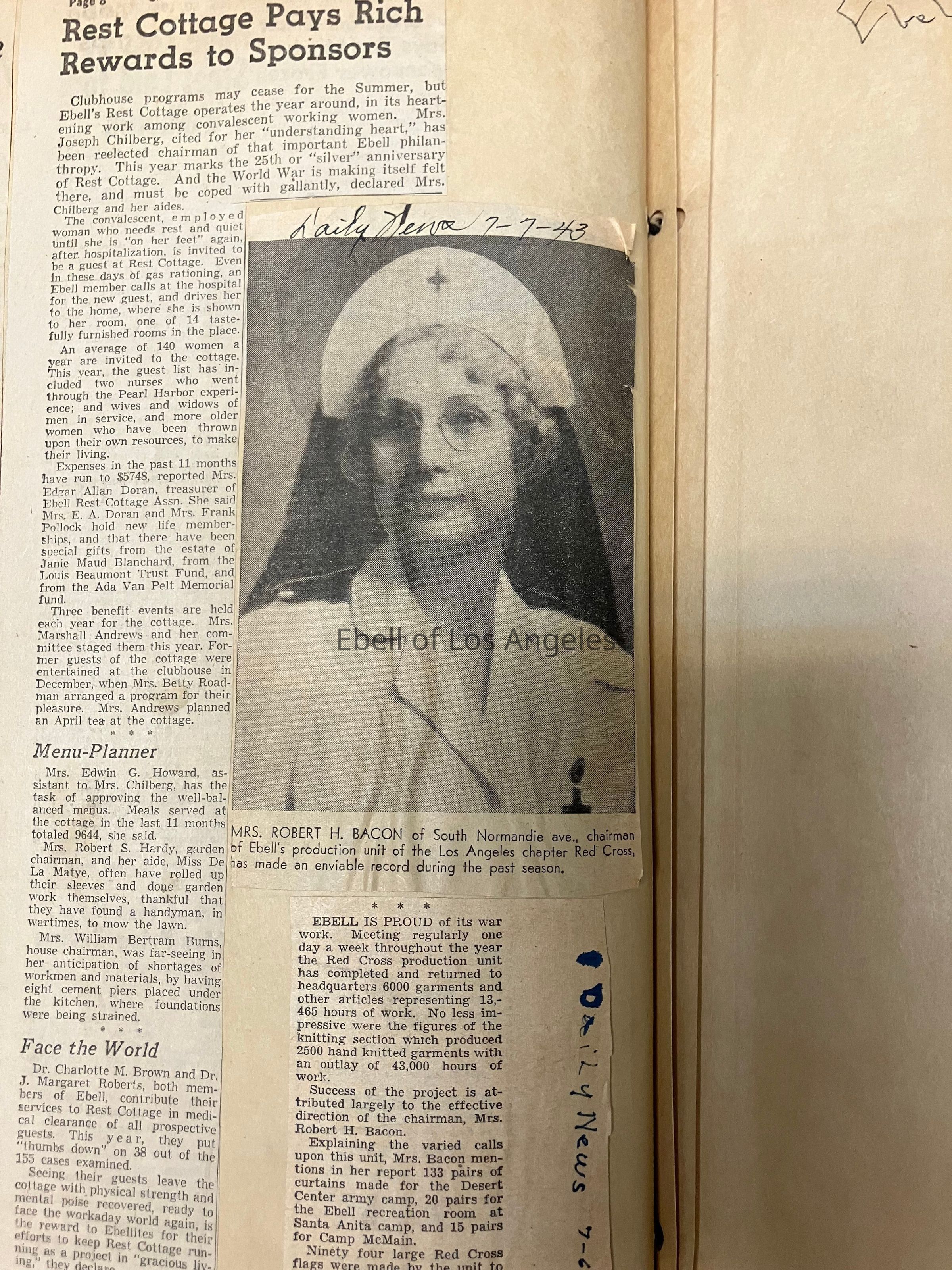 A press book with clippings from newspapers. Includes articles on Ebell’s wartime efforts.Context