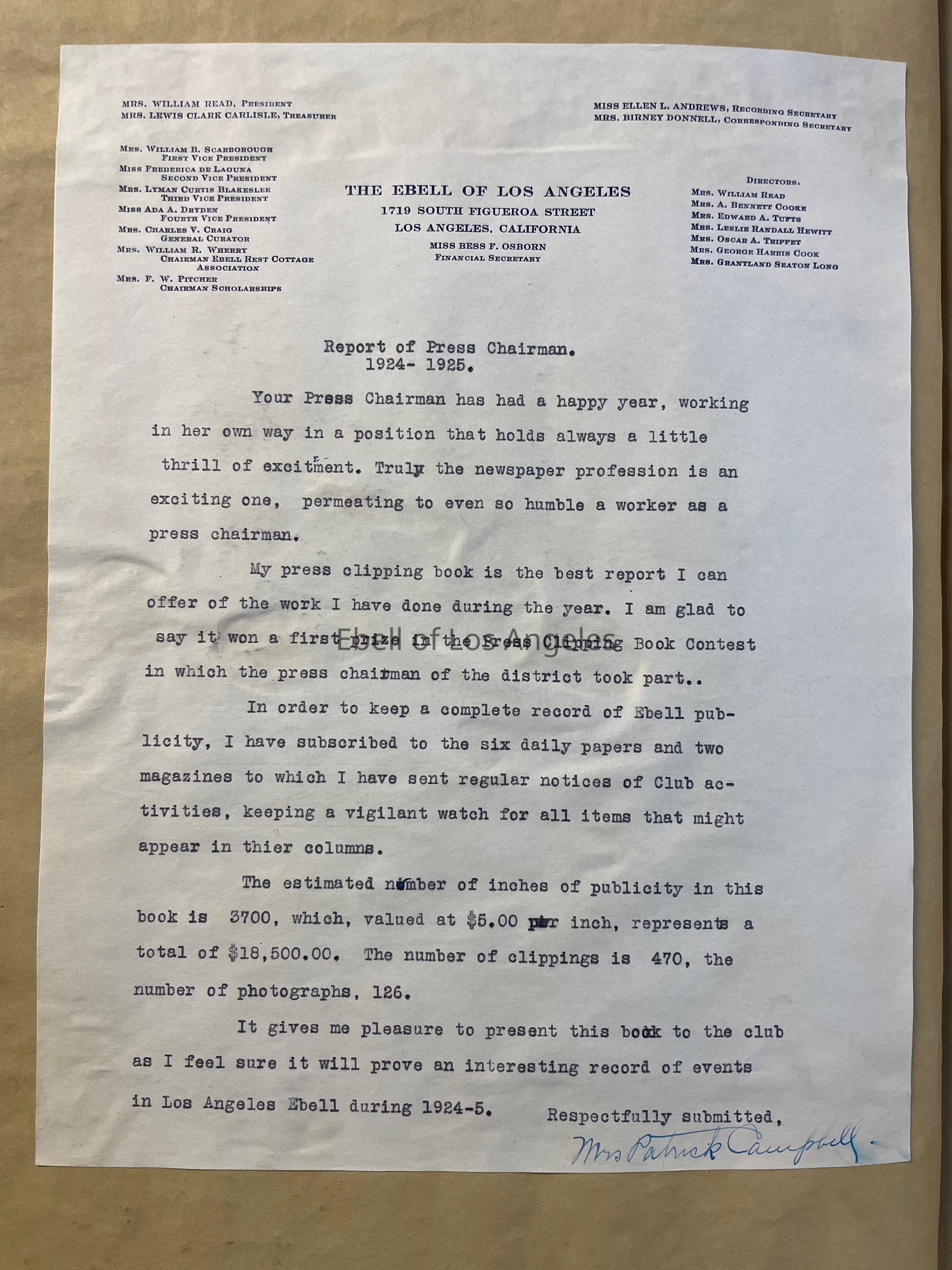 This volume was created by Mrs. Patrick Campbell, Press Chairman.Collection