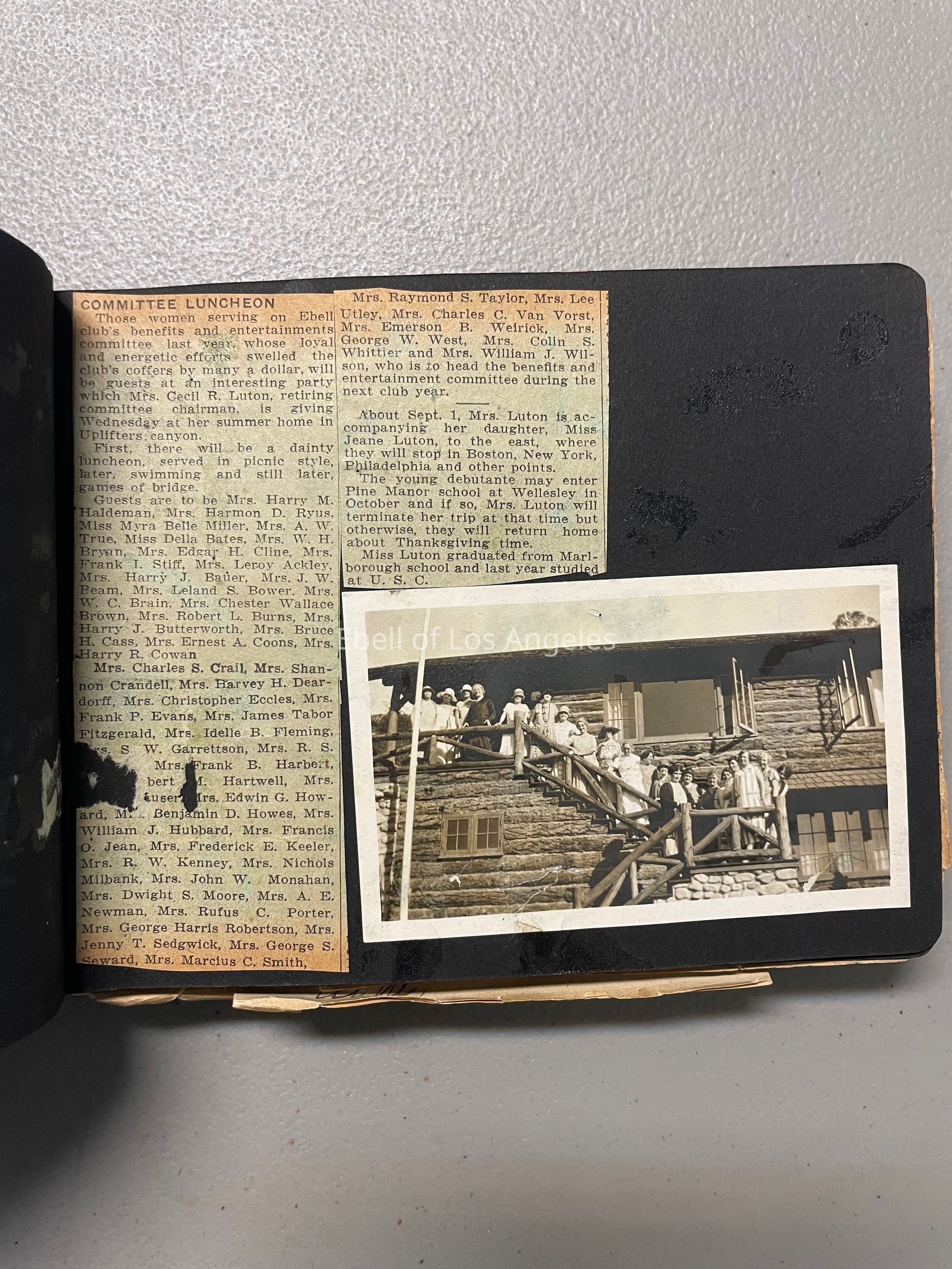 A scrapbook of newspaper clippings, correspondence to Mrs. Cecil R. Luton, photographs, Ebell bulletins, and ribbons. Bulk of contents from 1924. Includes materials on Uplifters Ranch.Collection
