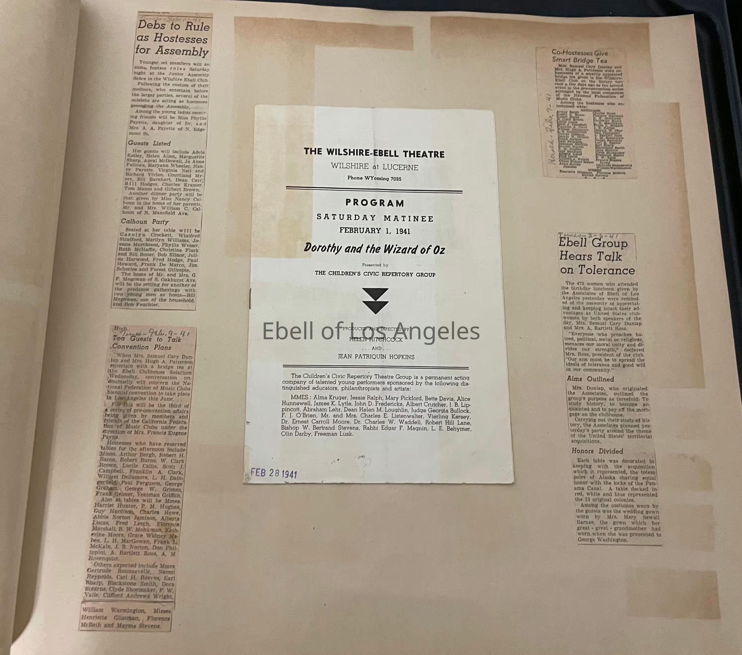 A press book of newspaper clippings and programs.Context