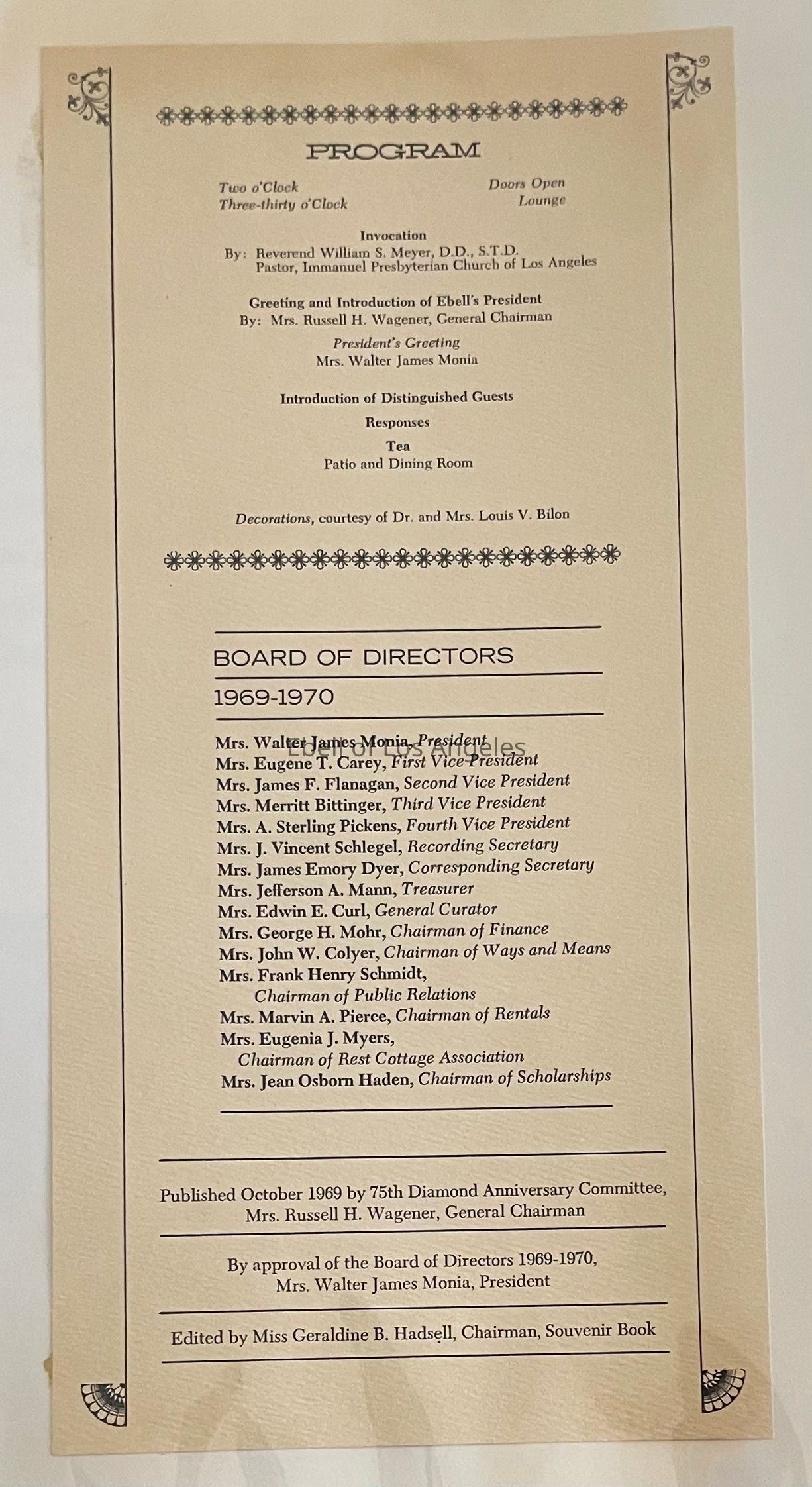 Ebell 75th Anniversary Scrapbook 1969Entry/Object ID