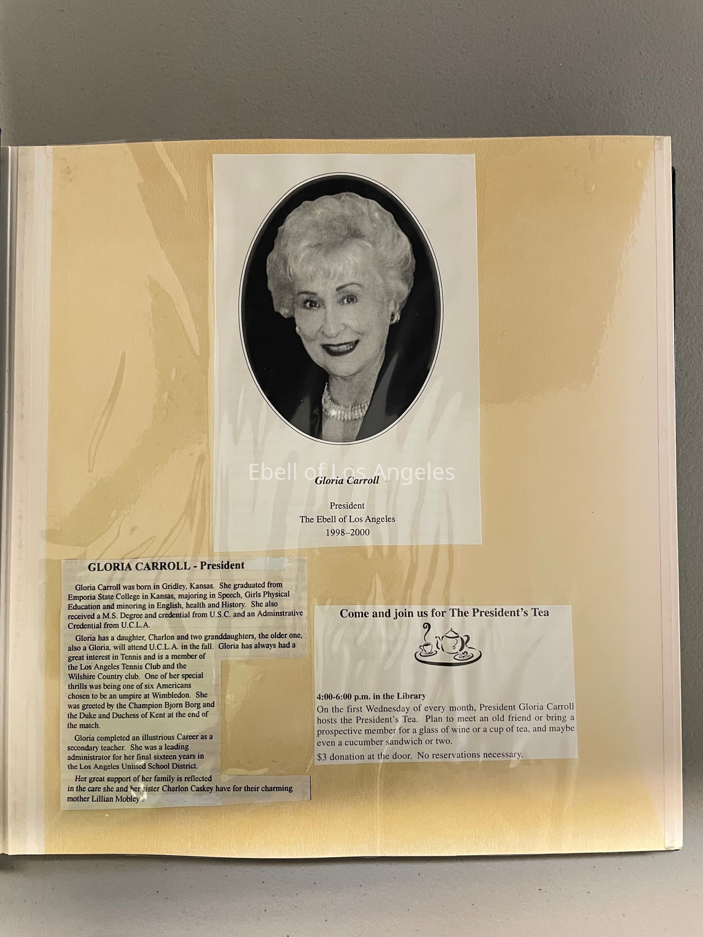Created by Erma Schmalzried during Gloria Carroll's presidency.Collection