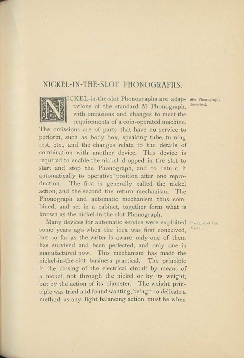 It was originally developed for use in early Edison Class M phonographs adapted for coin operation and was employed in particular in the so-called “Kansas” coin-slot machines.