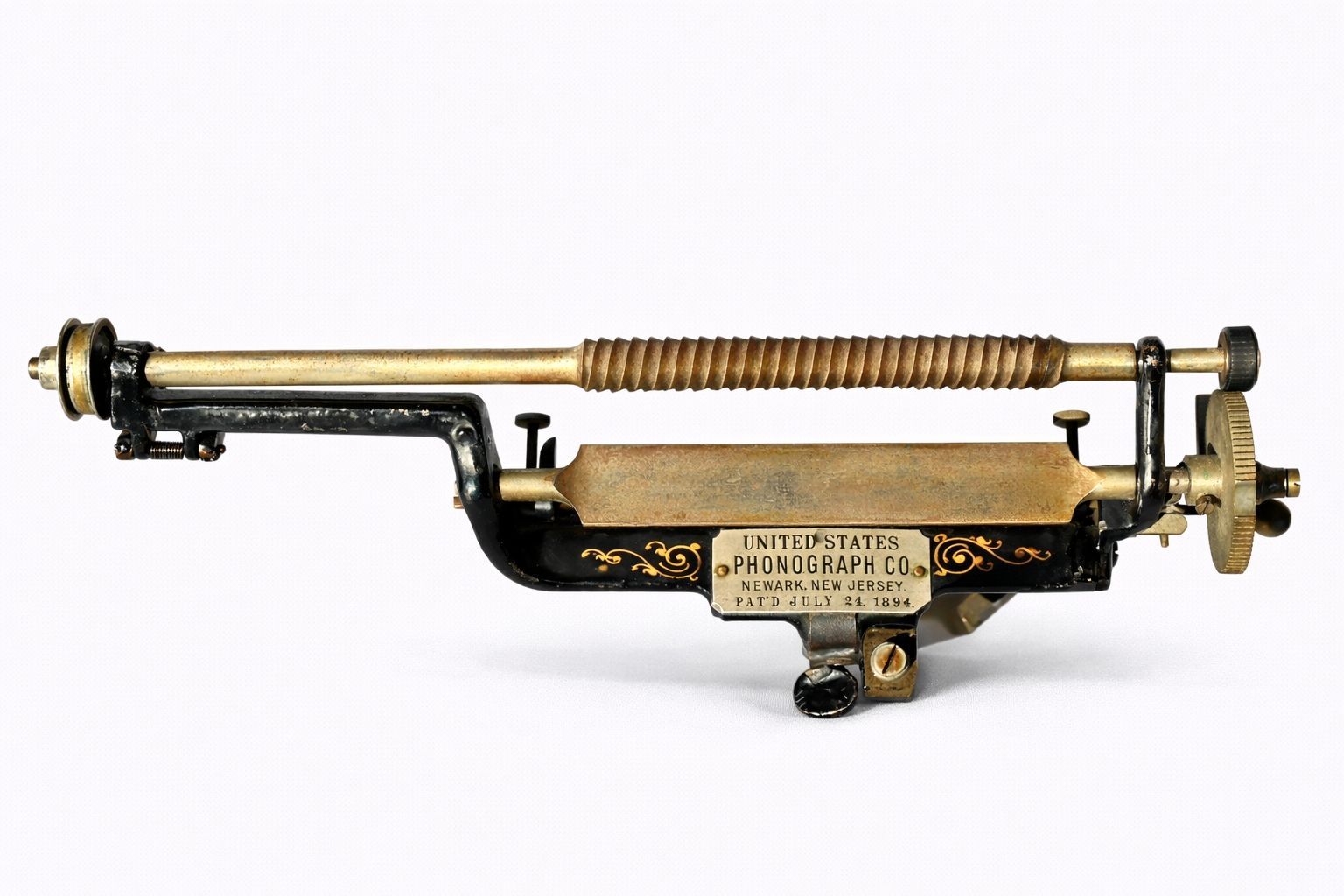 The mechanism was not developed by Thomas A. Edison himself, but by the American inventor George Tewkesbury, who was granted a patent for this return and cut-off system in 1894. Commercial distribution was handled by the United States Phonograph Company of Newark, New Jersey.