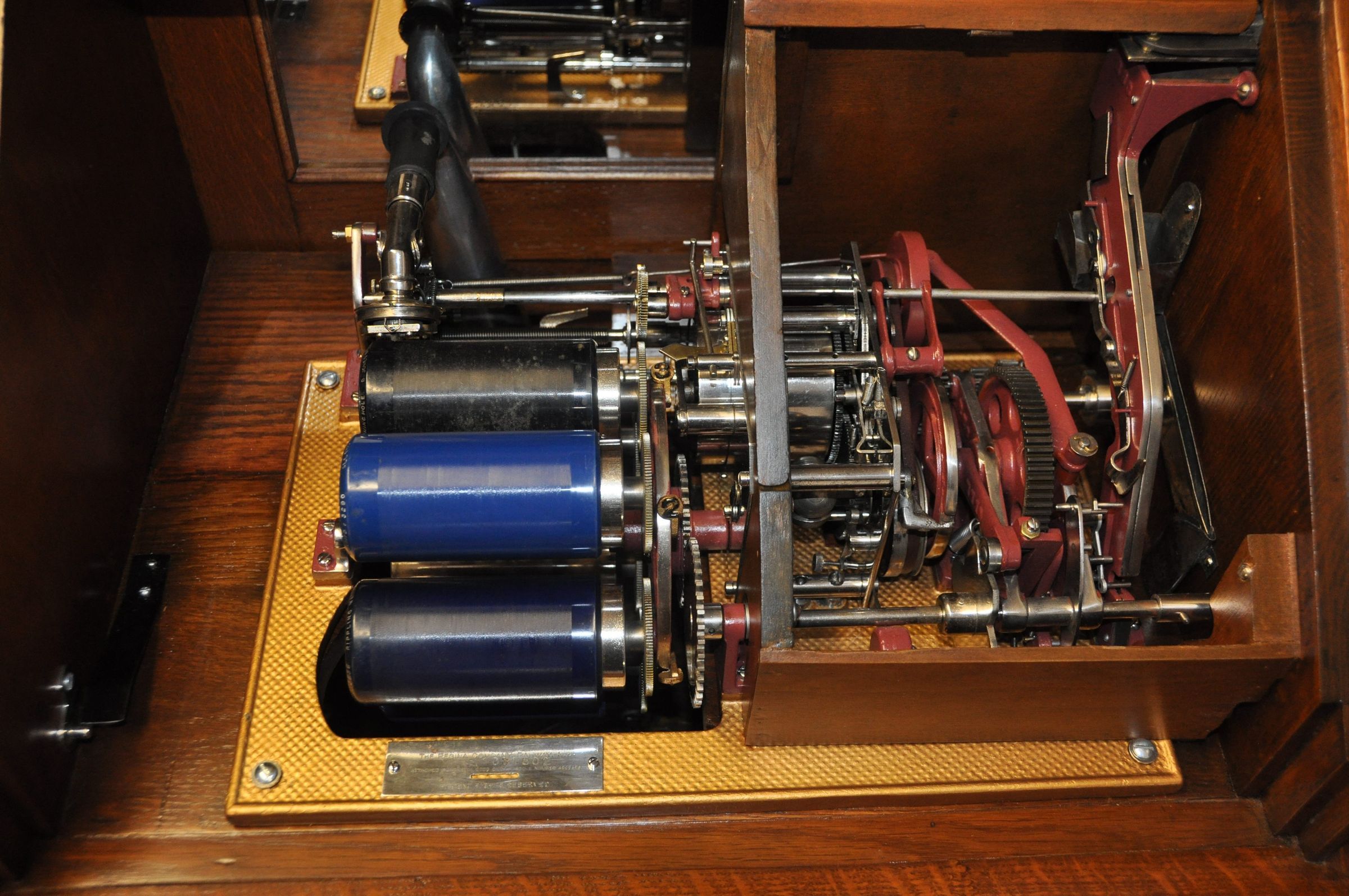 After inserting a coin, the user could choose one of the six stored recordings via a selection system. The mechanism would automatically move the chosen cylinder into the playing position, engage the reproducer carriage, and play the recording through the large, built‑in wooden horn.